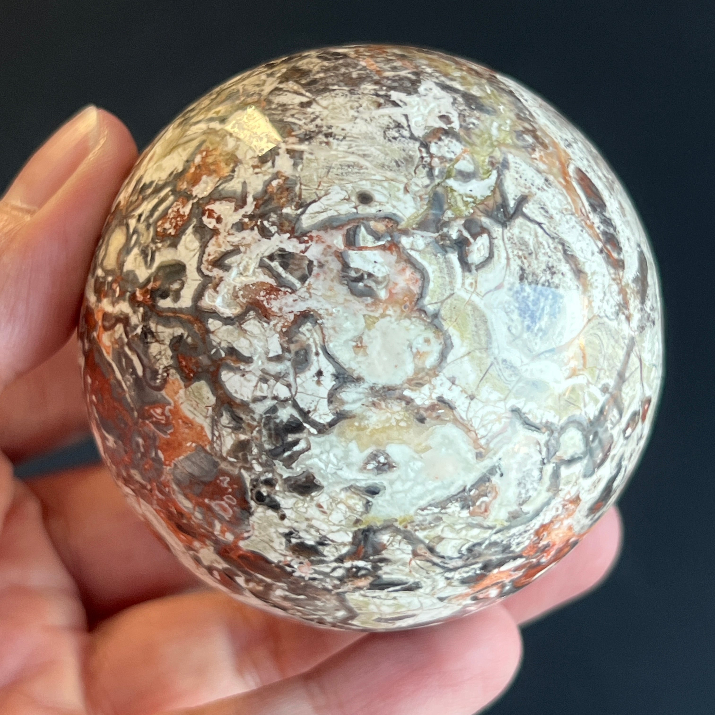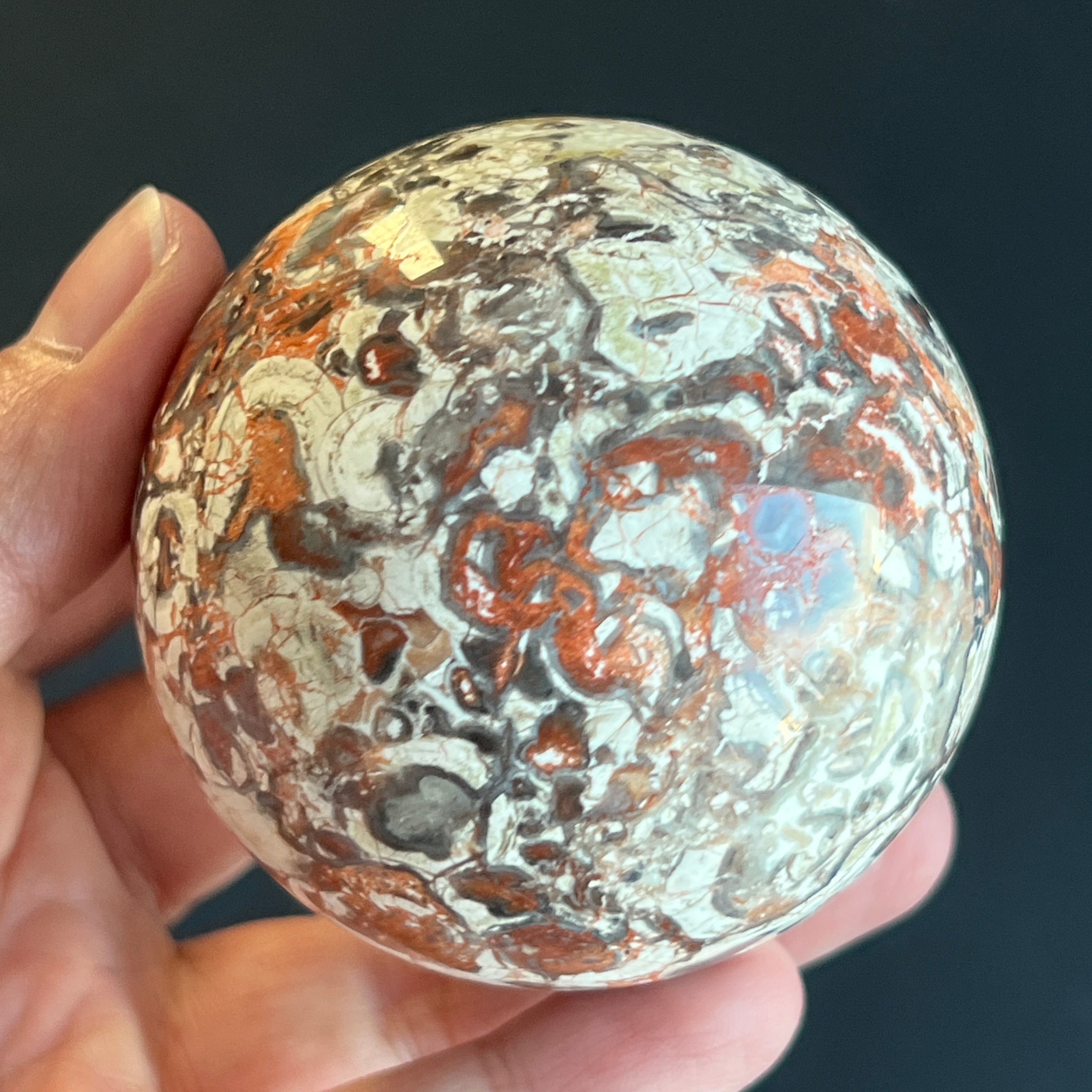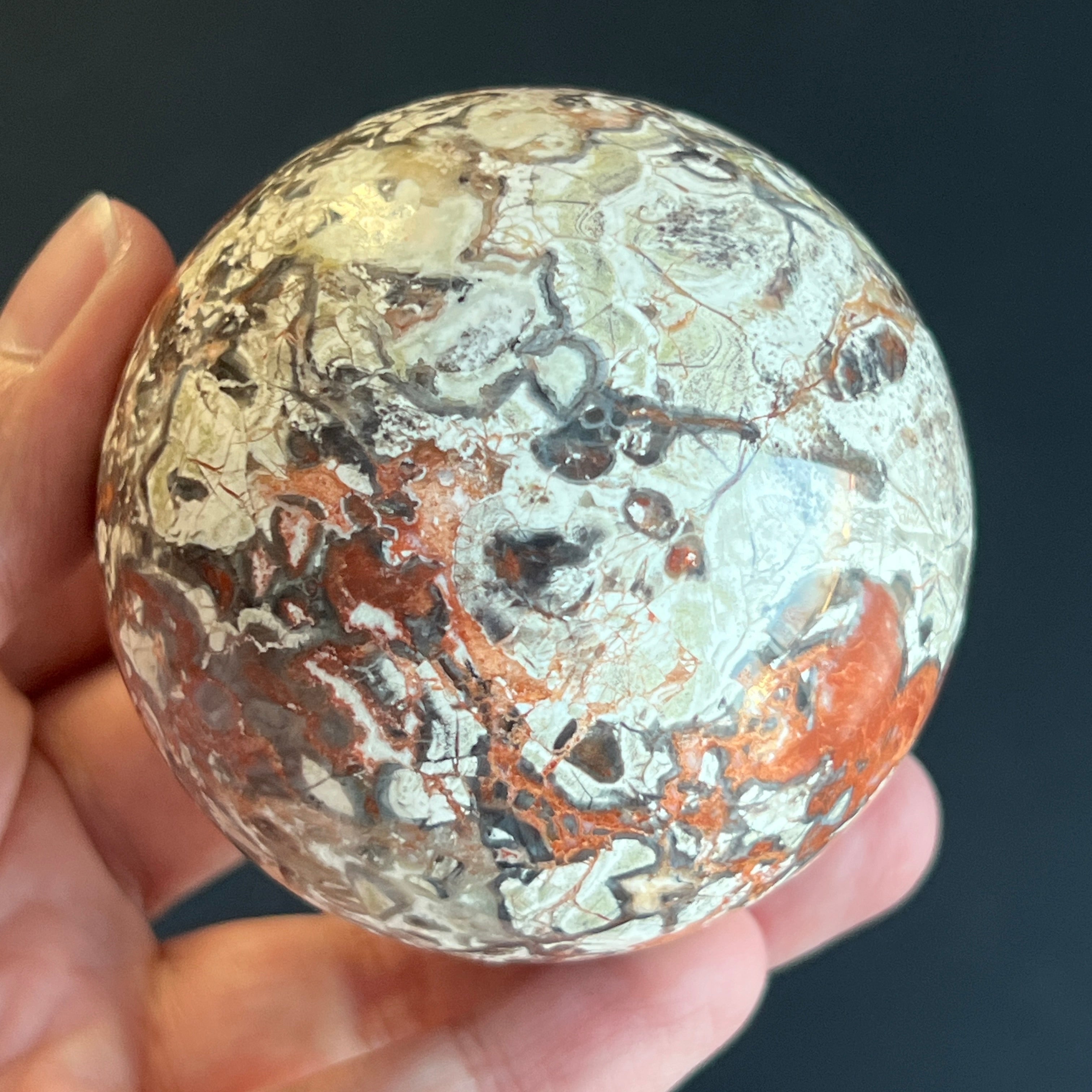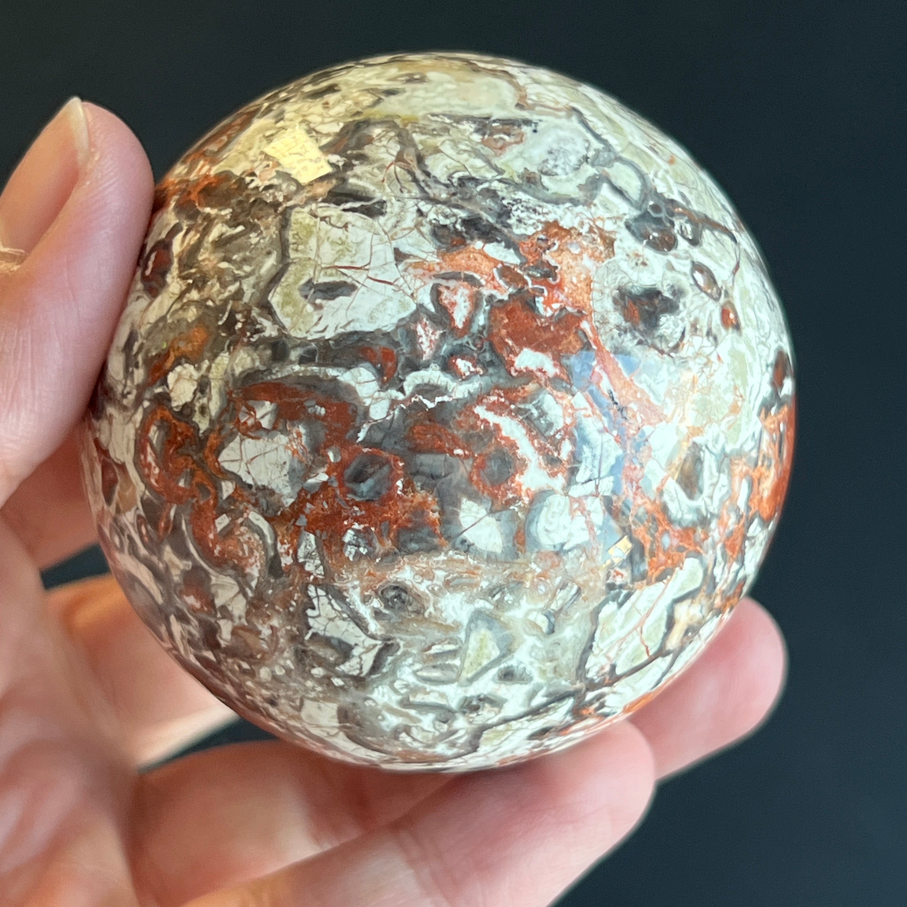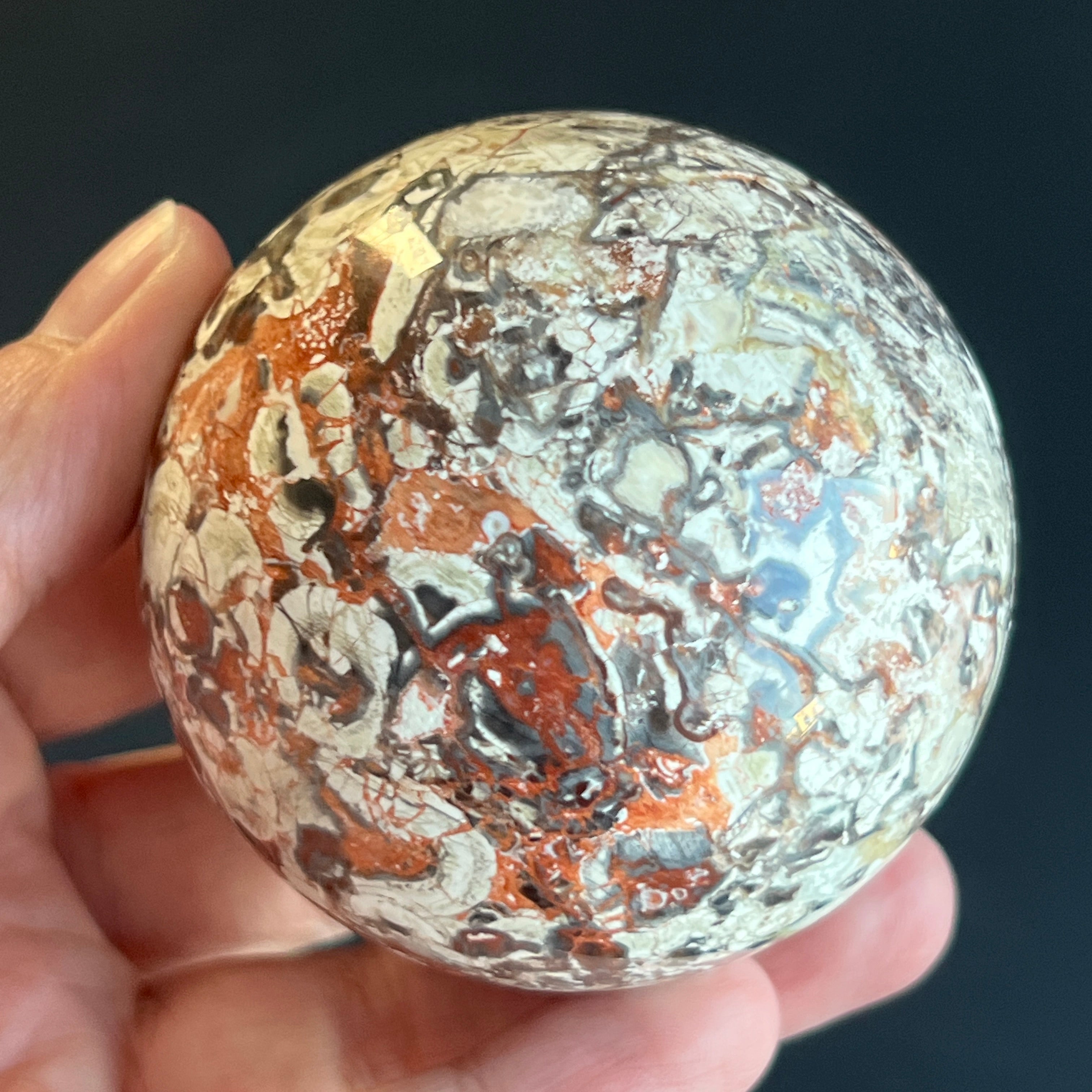 • Piatra: jasp roșu Breccia natural – sferă șlefuită integral