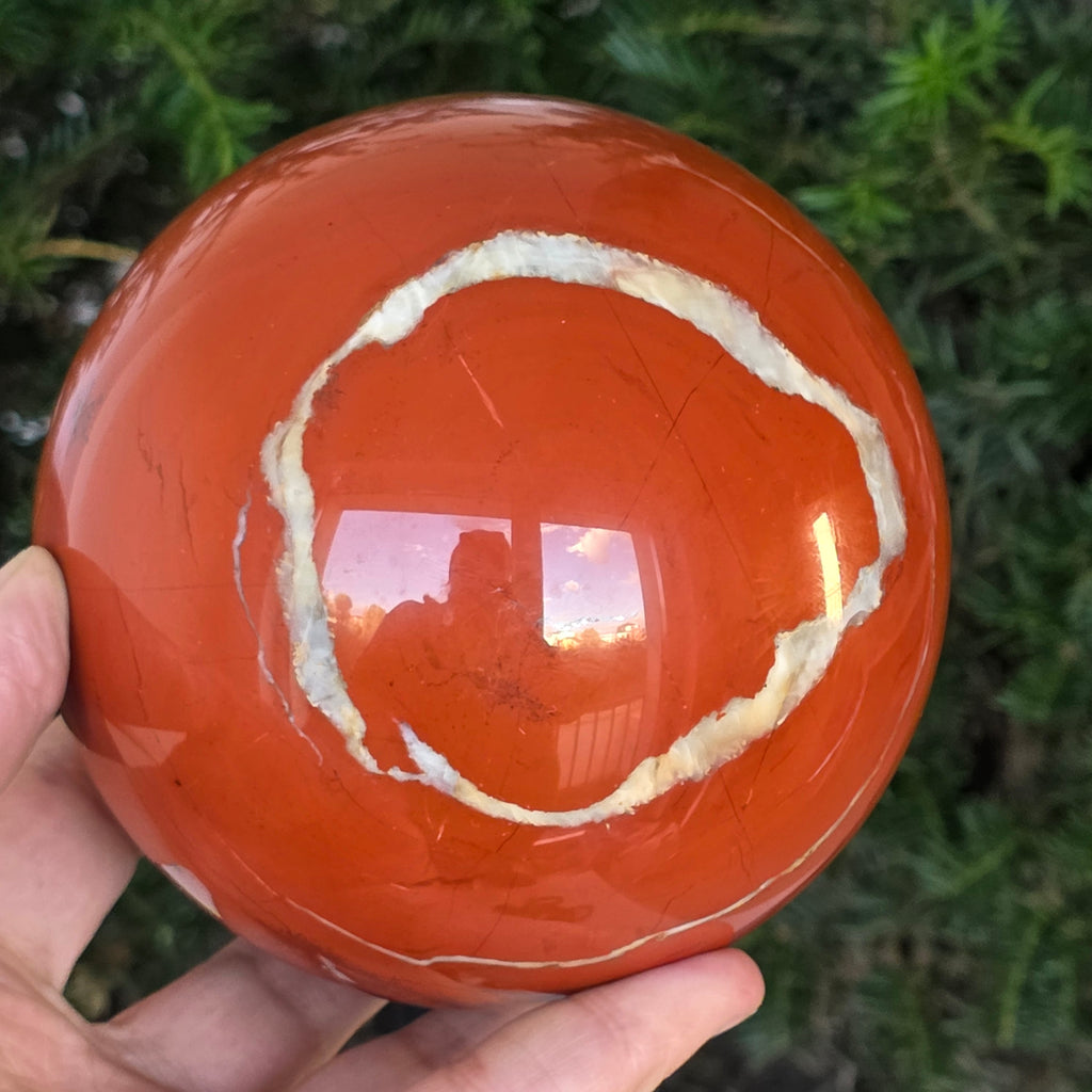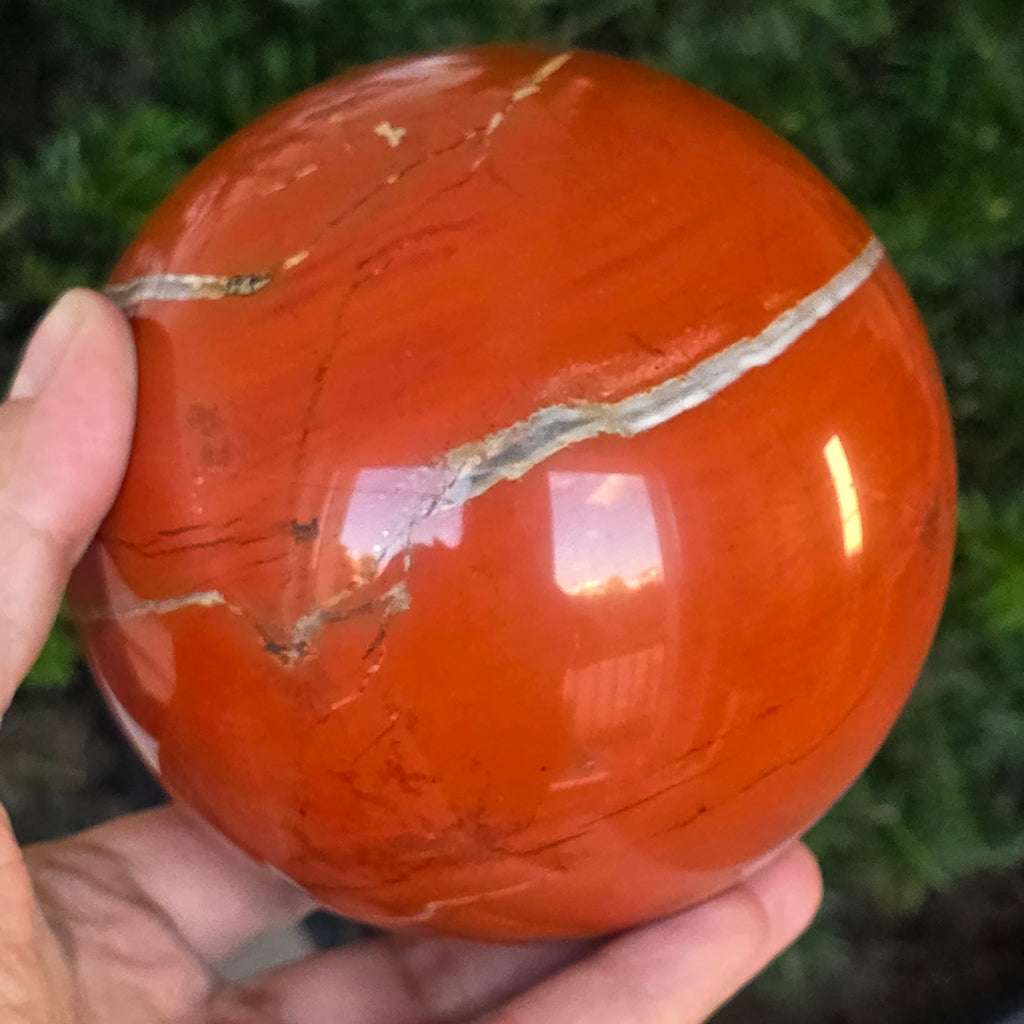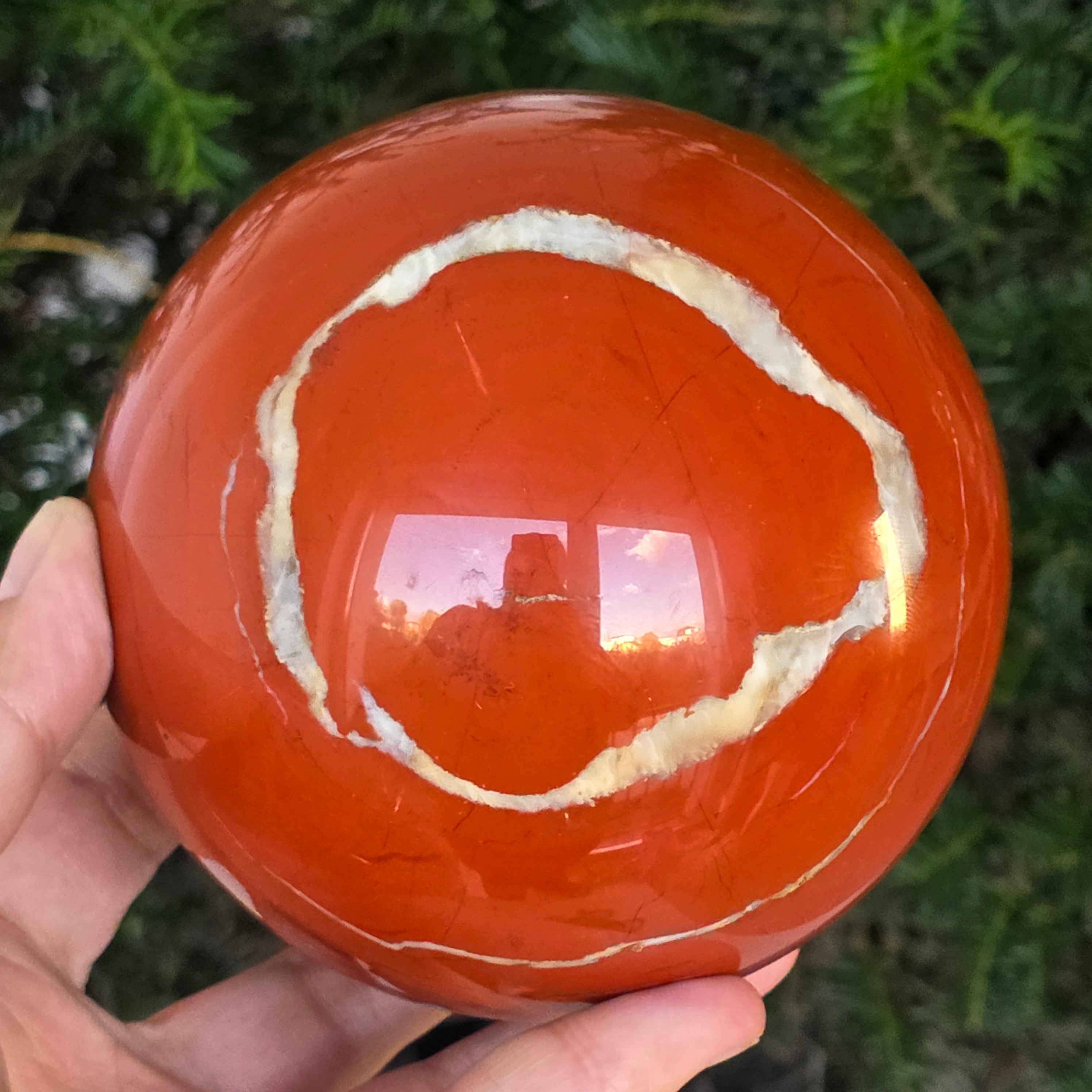 Modelată din adâncurile Pământului, această sferă din jasp roșu emană o energie caldă, stabilă și profund ancorată. Piatra, cunoscută din cele mai vechi timpuri drept „piatra vitalității”, poartă culorile sângelui și ale focului interior – simbol al forței de viață, curajului și perseverenței.