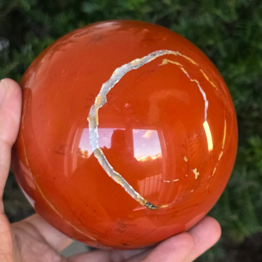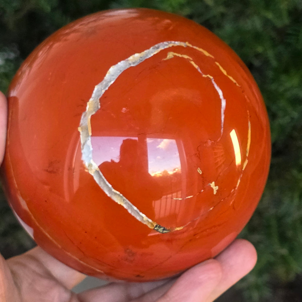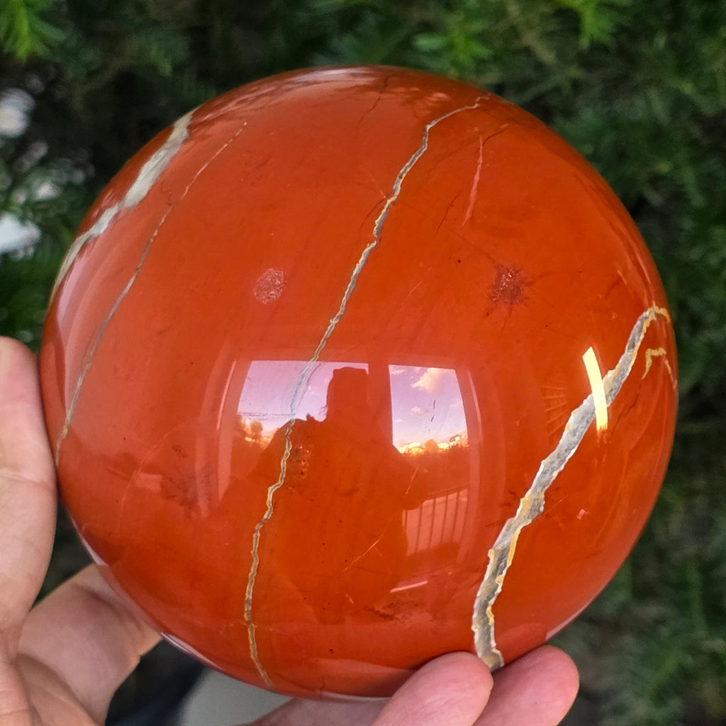 Modelată din adâncurile Pământului, această sferă din jasp roșu emană o energie caldă, stabilă și profund ancorată. Piatra, cunoscută din cele mai vechi timpuri drept „piatra vitalității”, poartă culorile sângelui și ale focului interior – simbol al forței de viață, curajului și perseverenței.