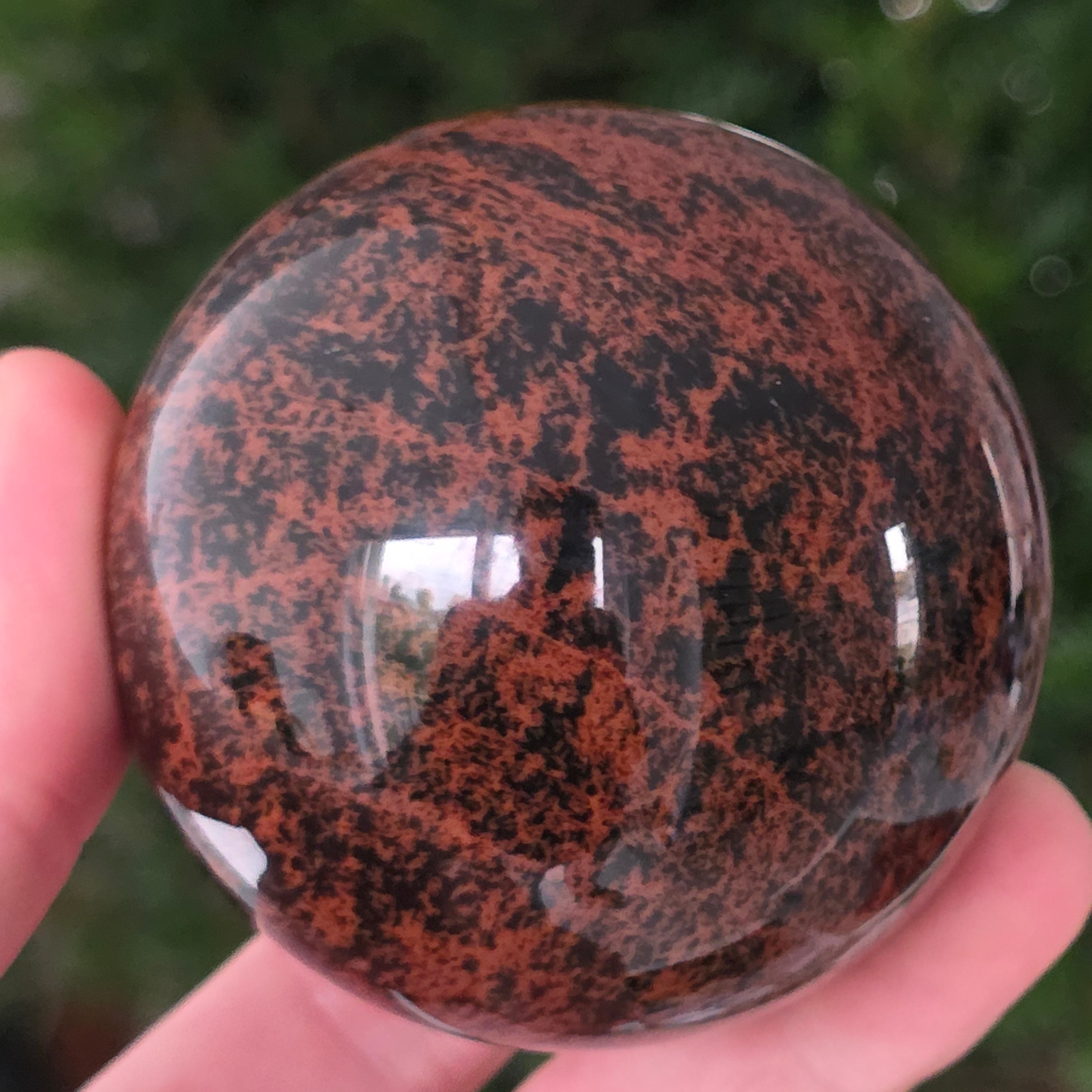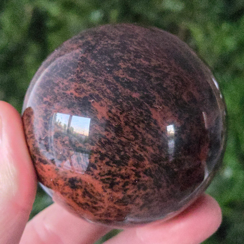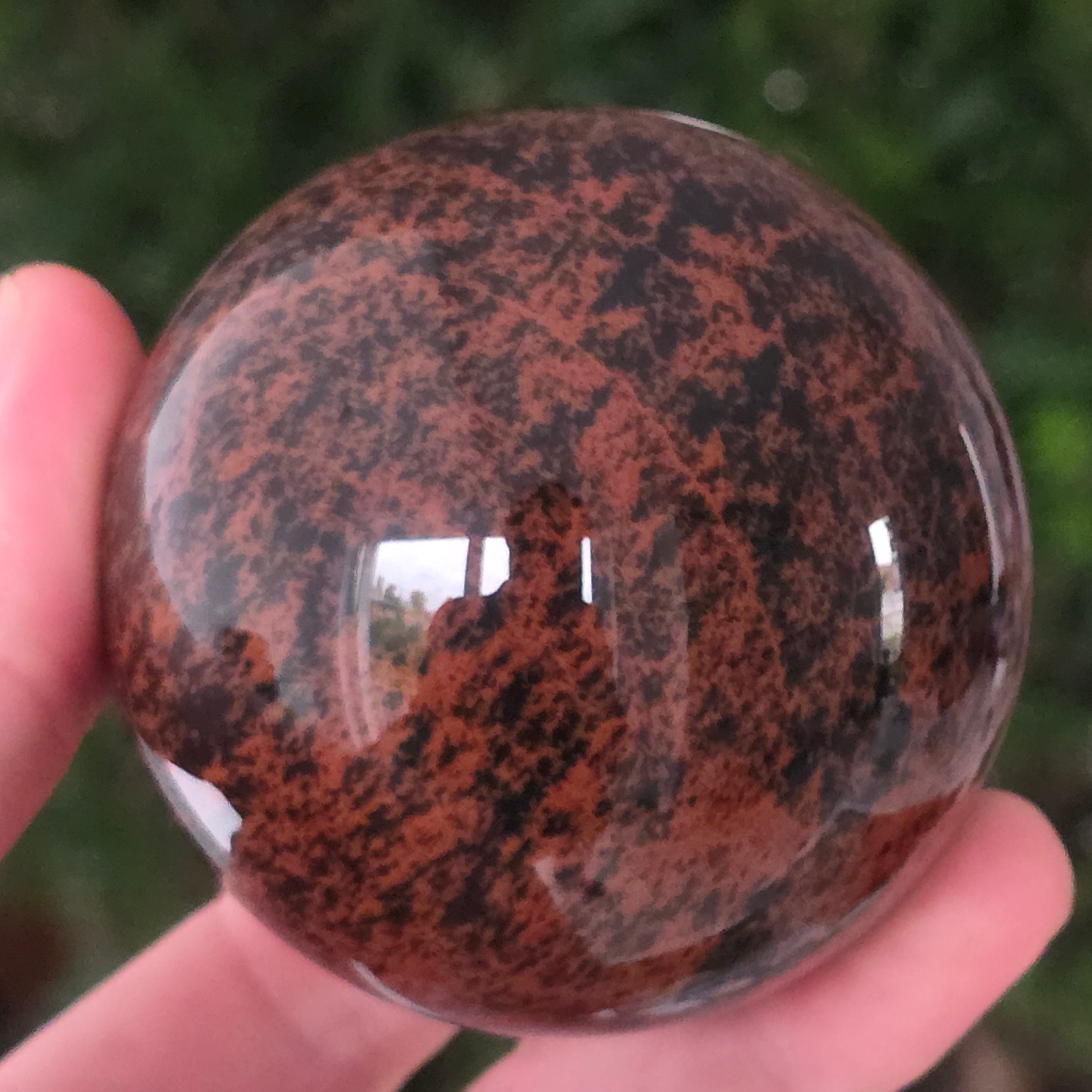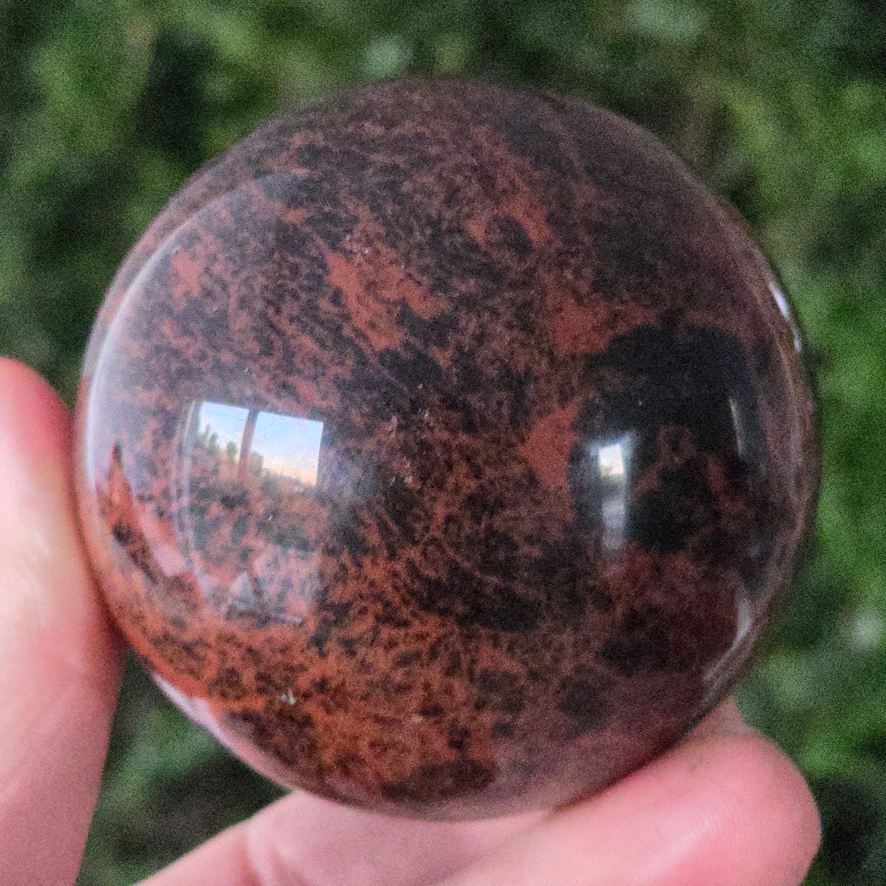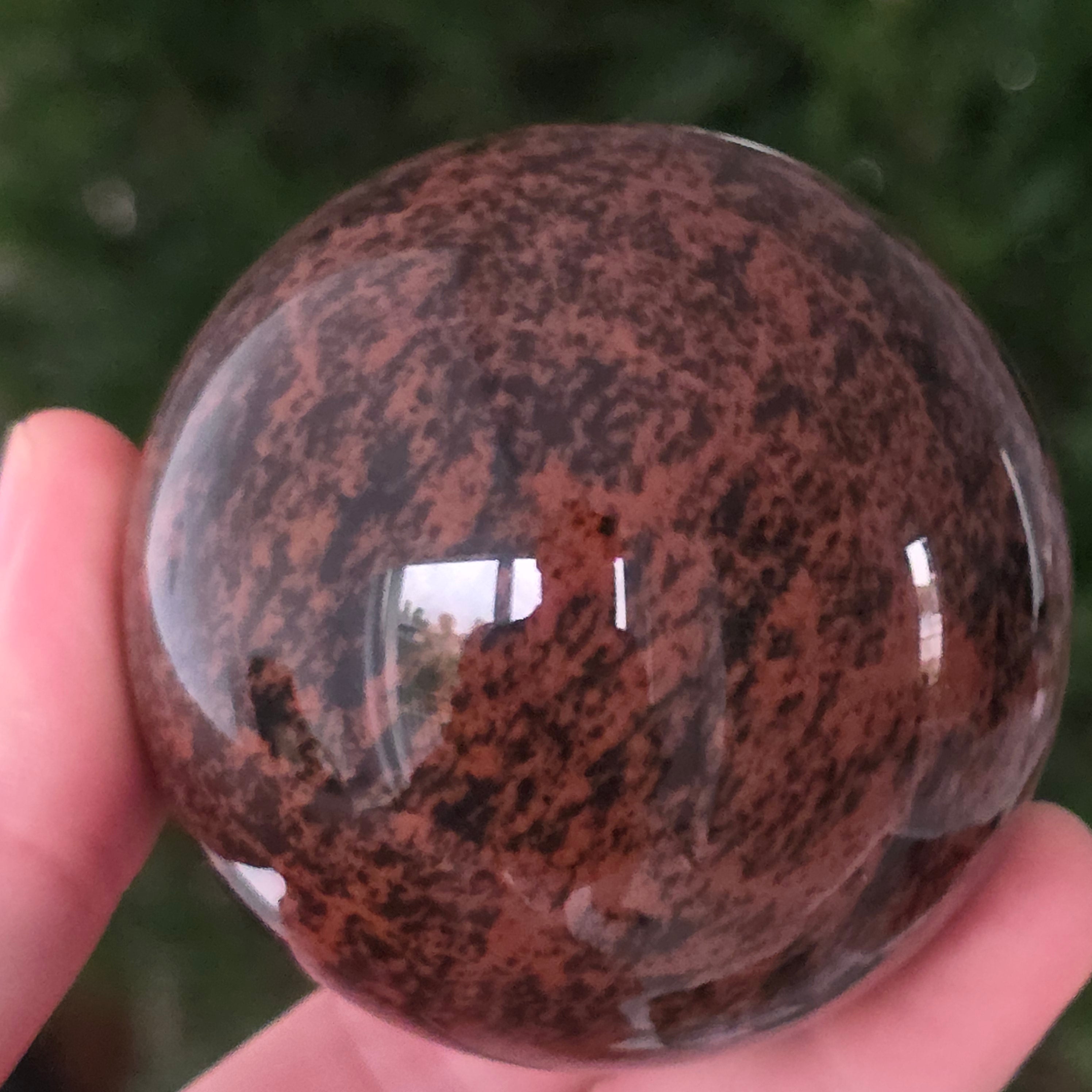 Lasă-te inspirat de forța liniștită a Pământului prin această sferă din obsidian mahon.