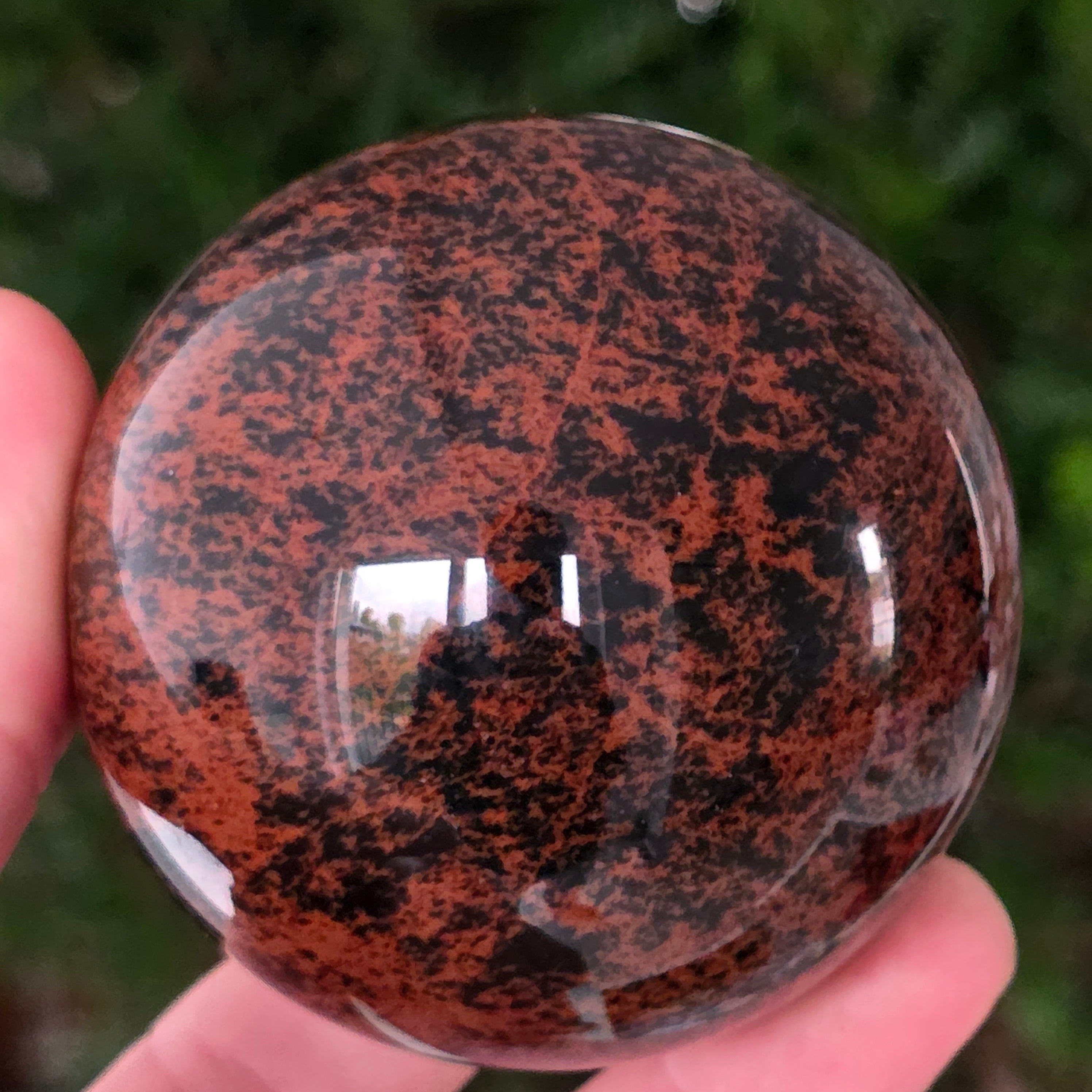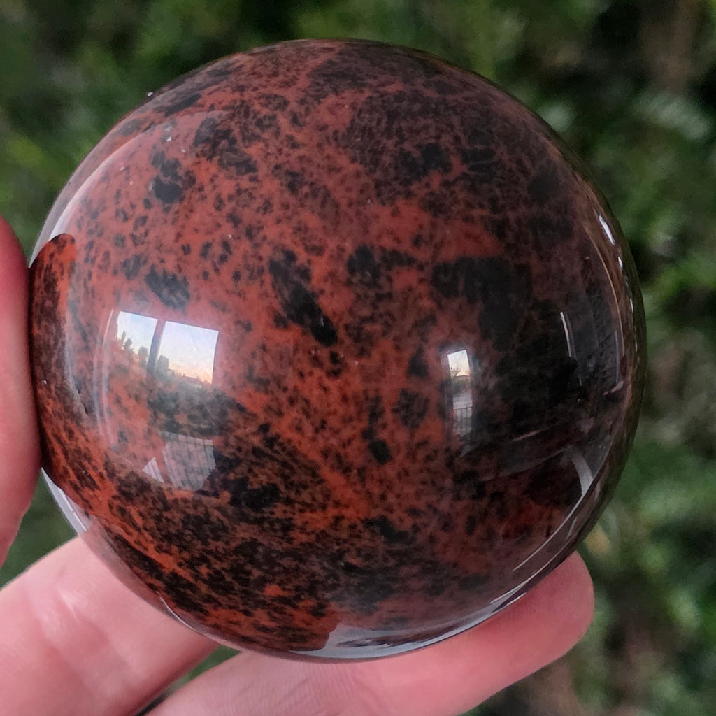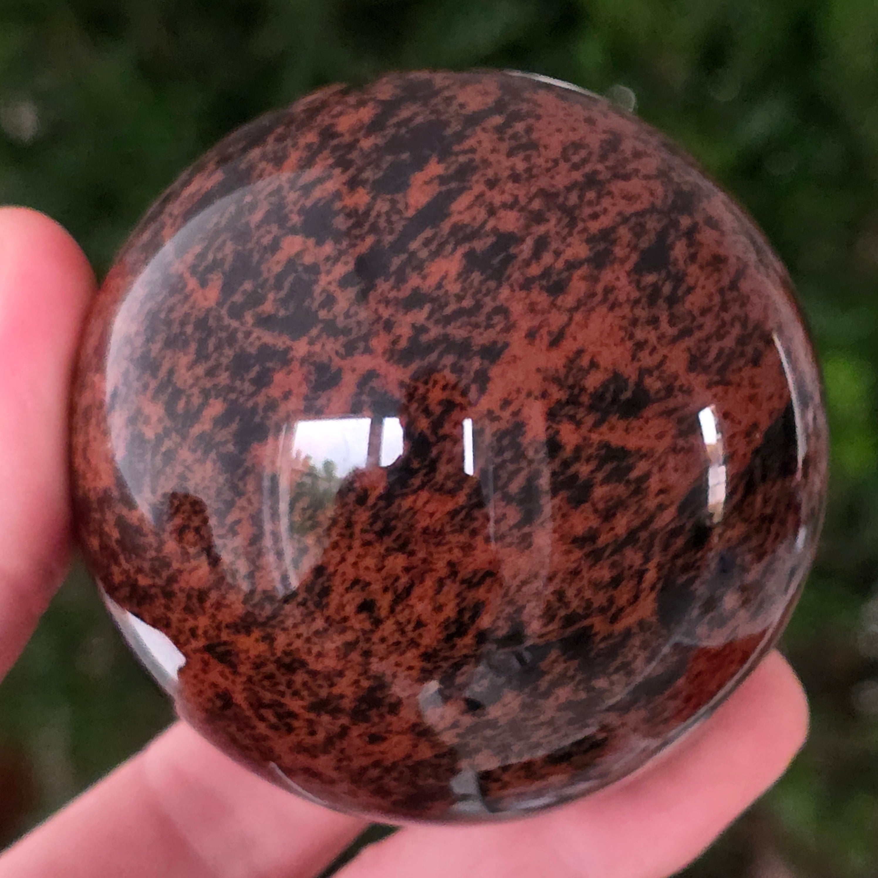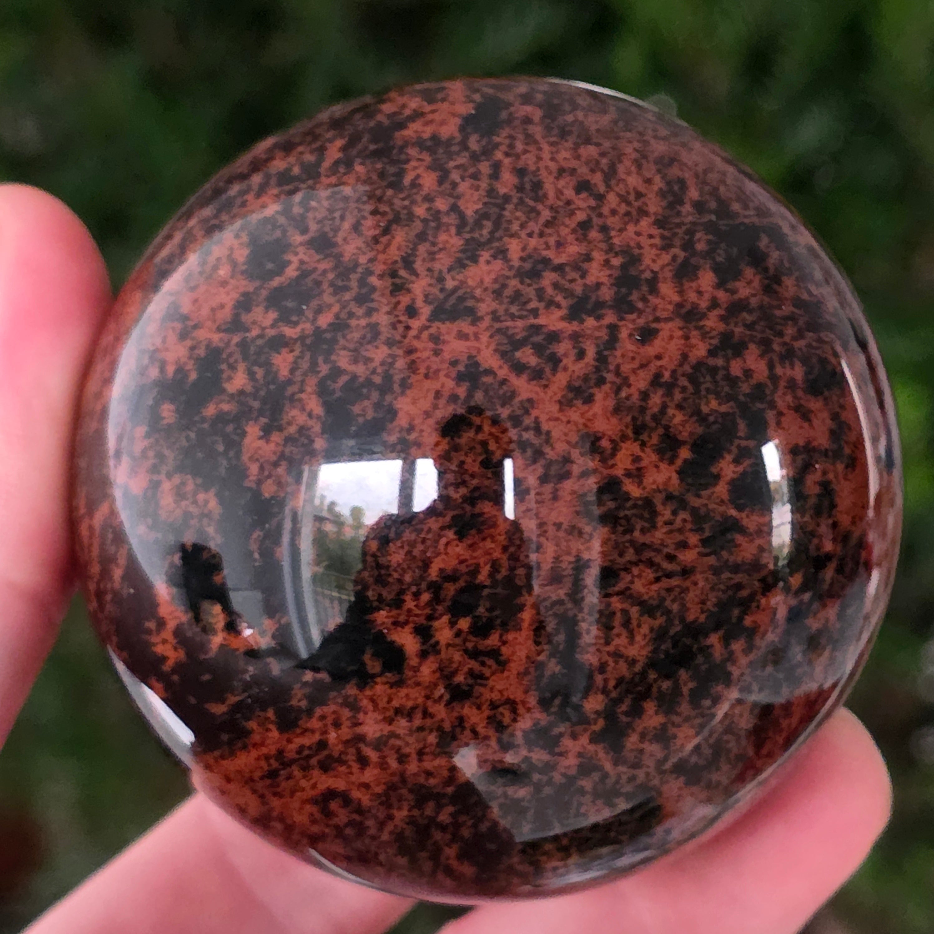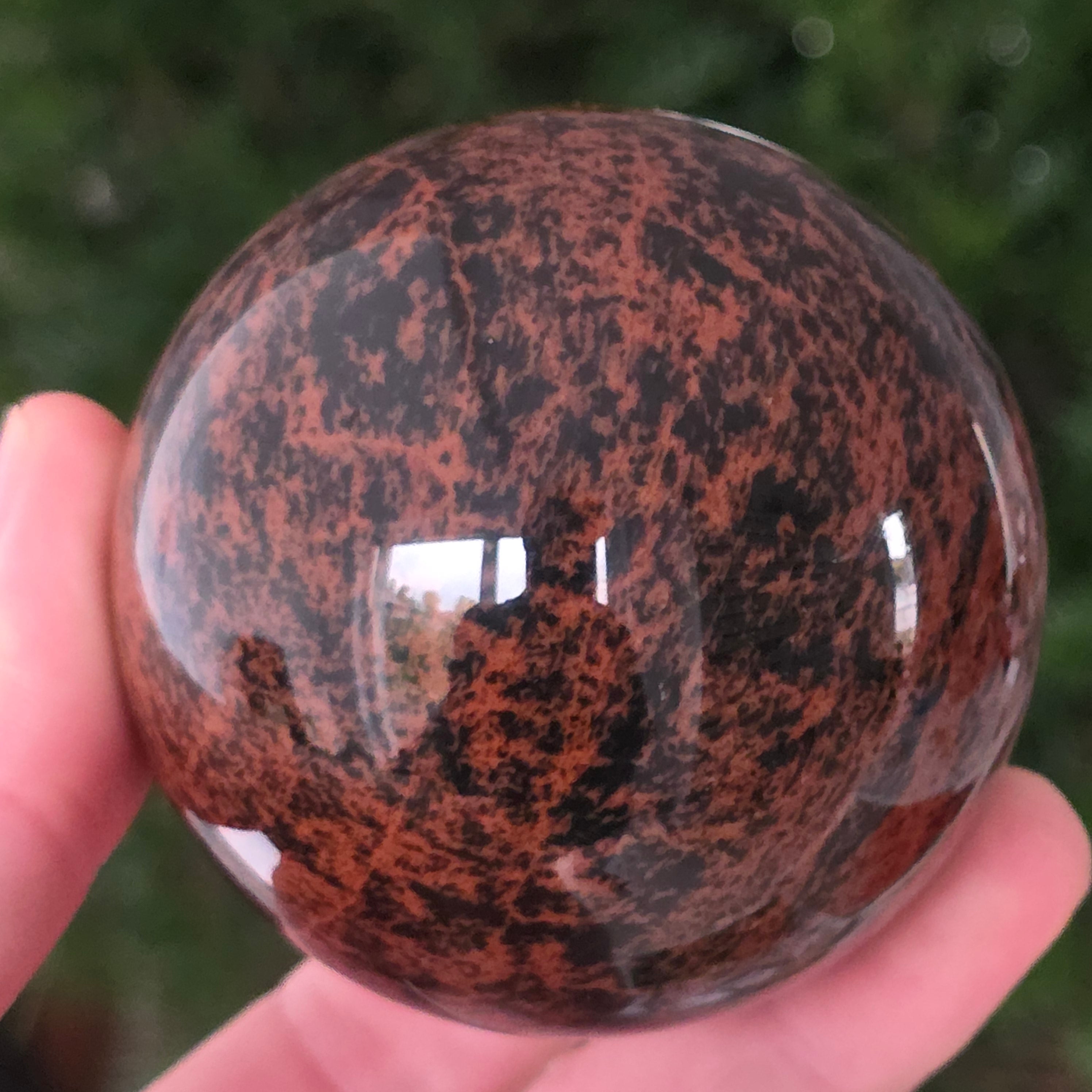 Lasă-te inspirat de forța liniștită a Pământului prin această sferă din obsidian mahon.