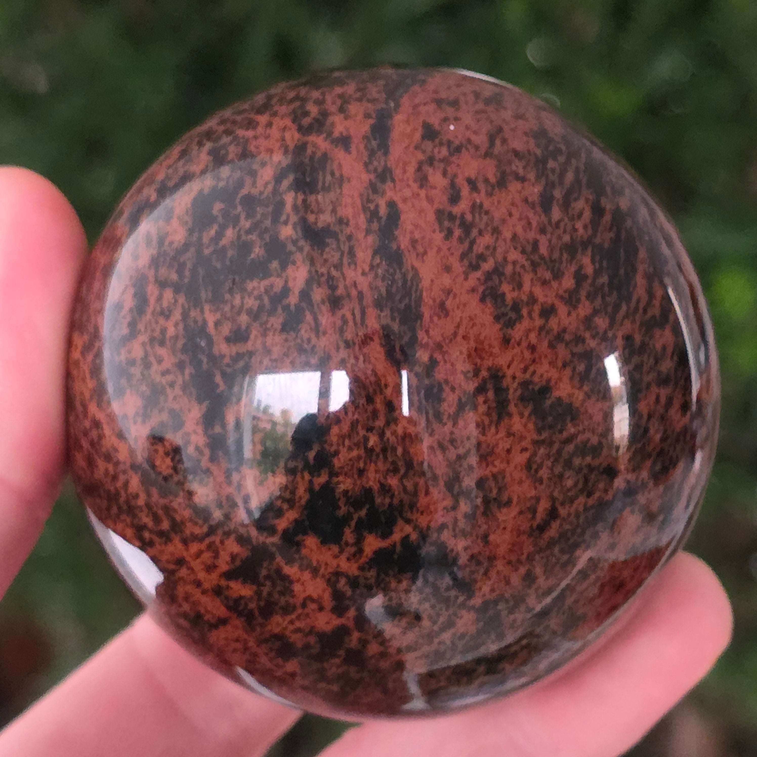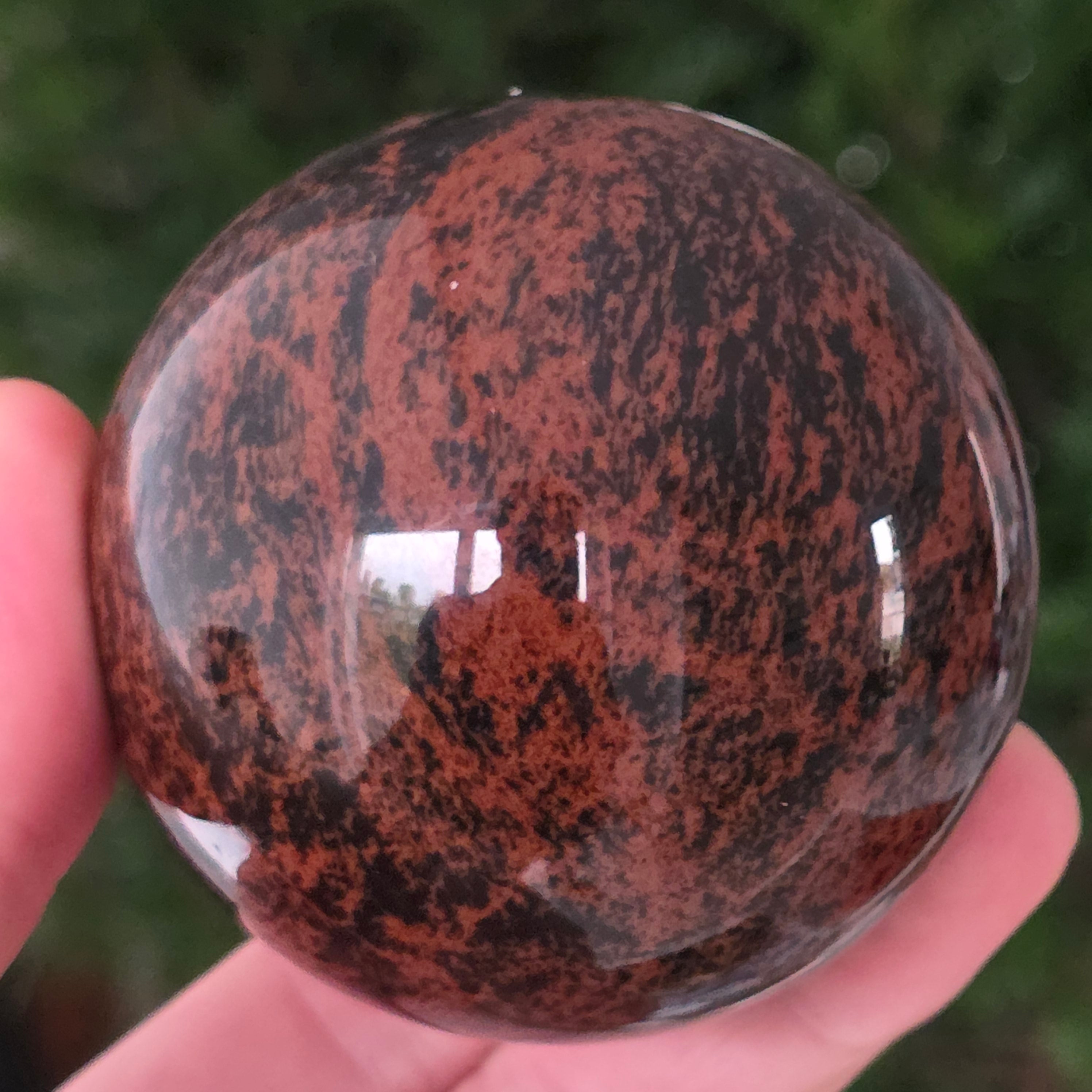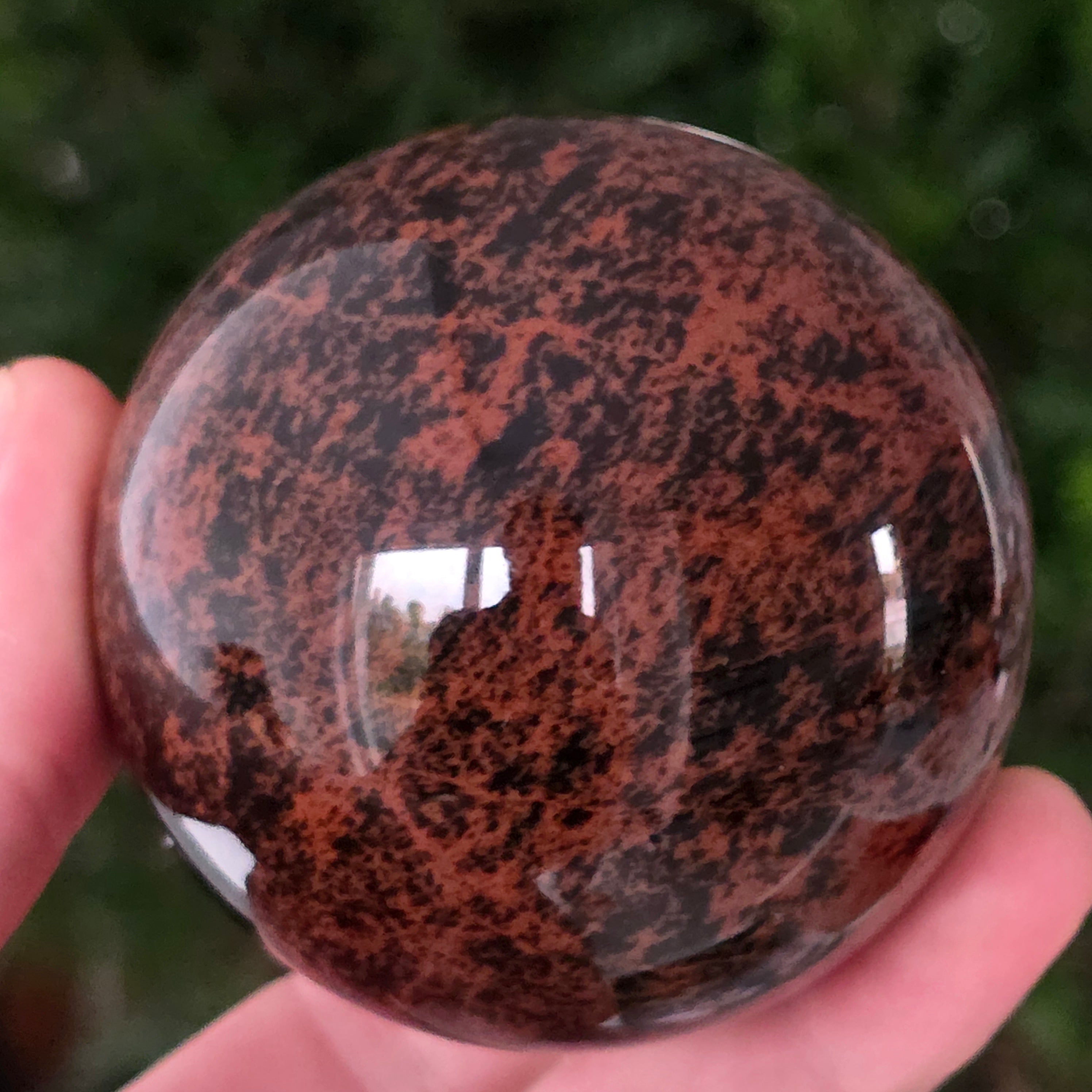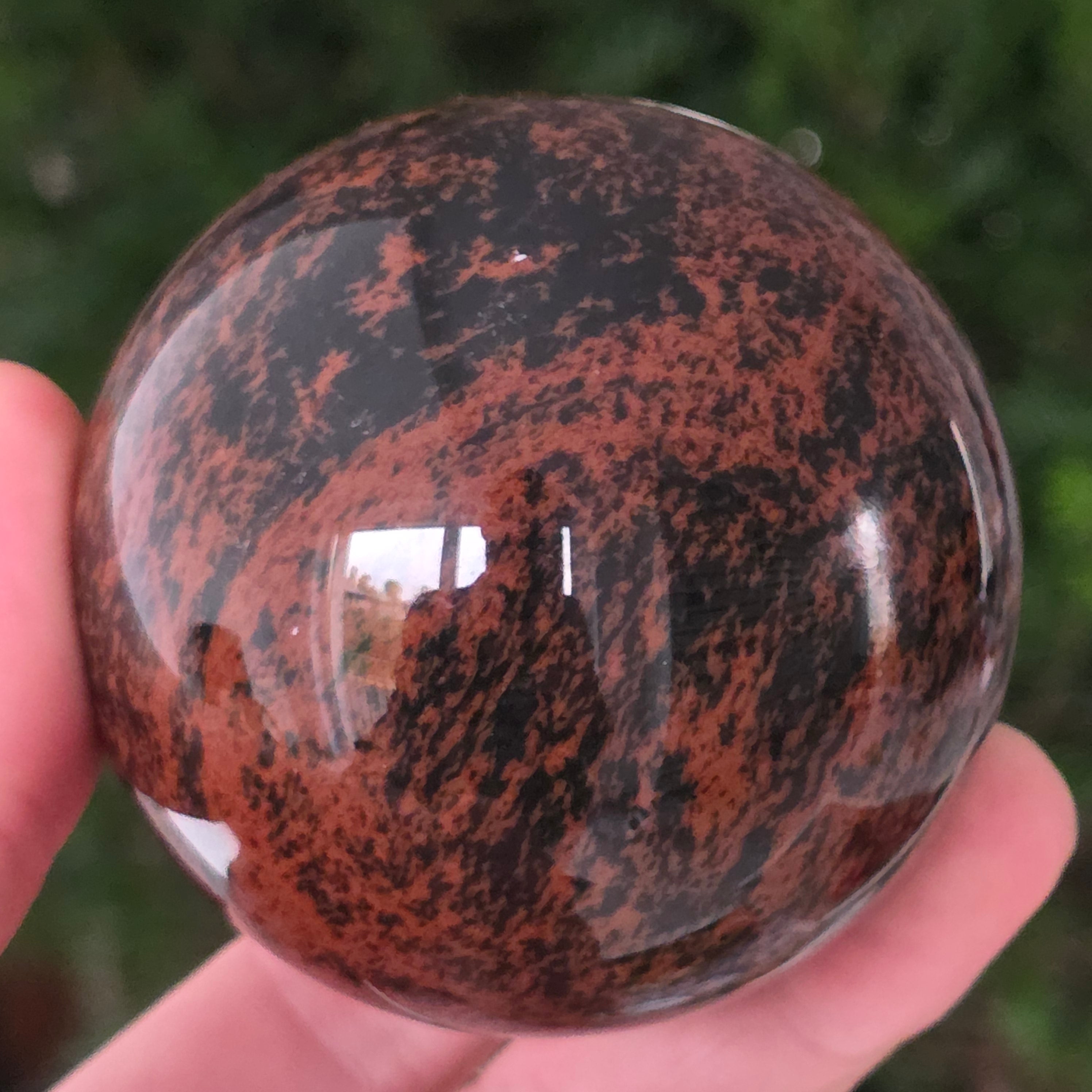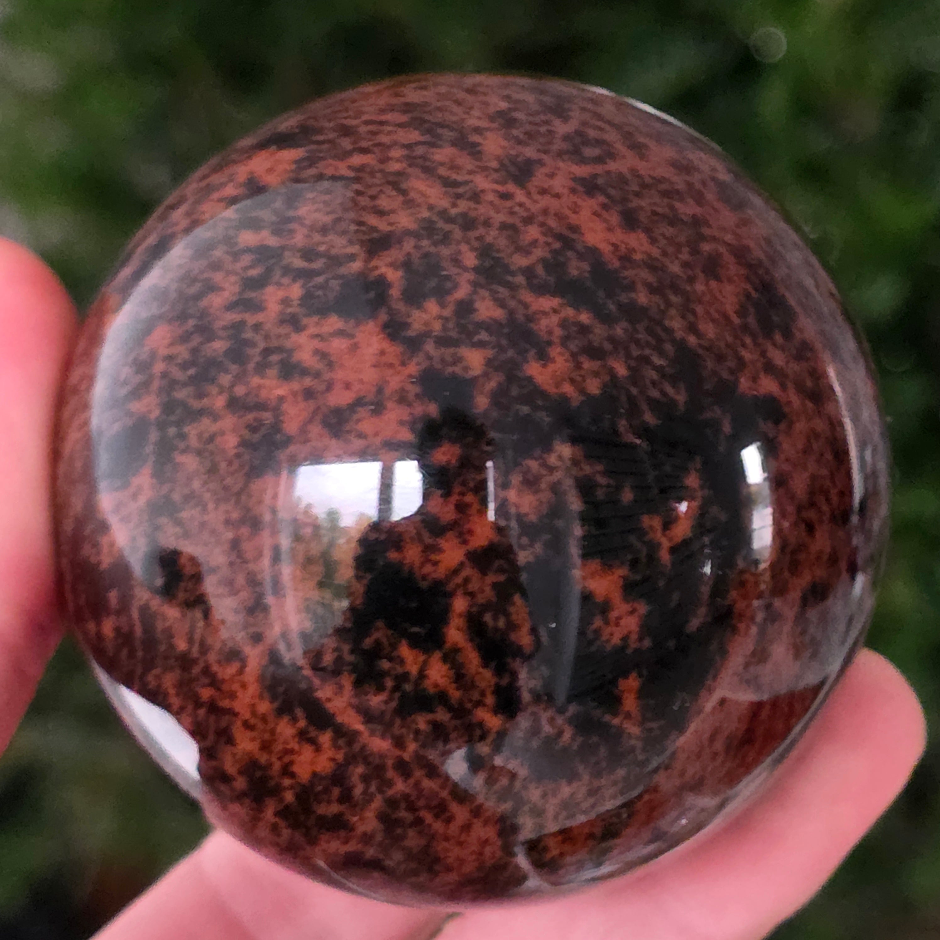 Lasă-te inspirat de forța liniștită a Pământului prin această sferă din obsidian mahon.