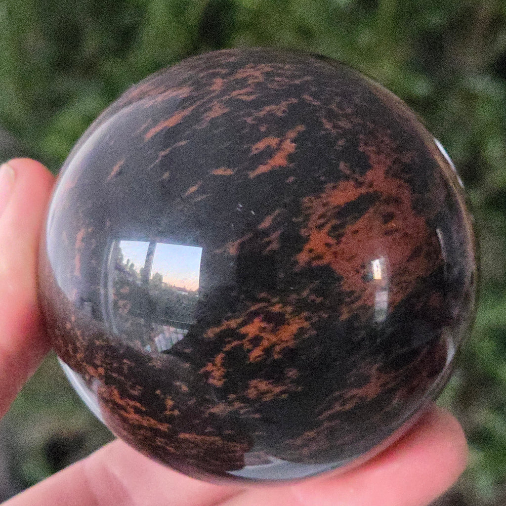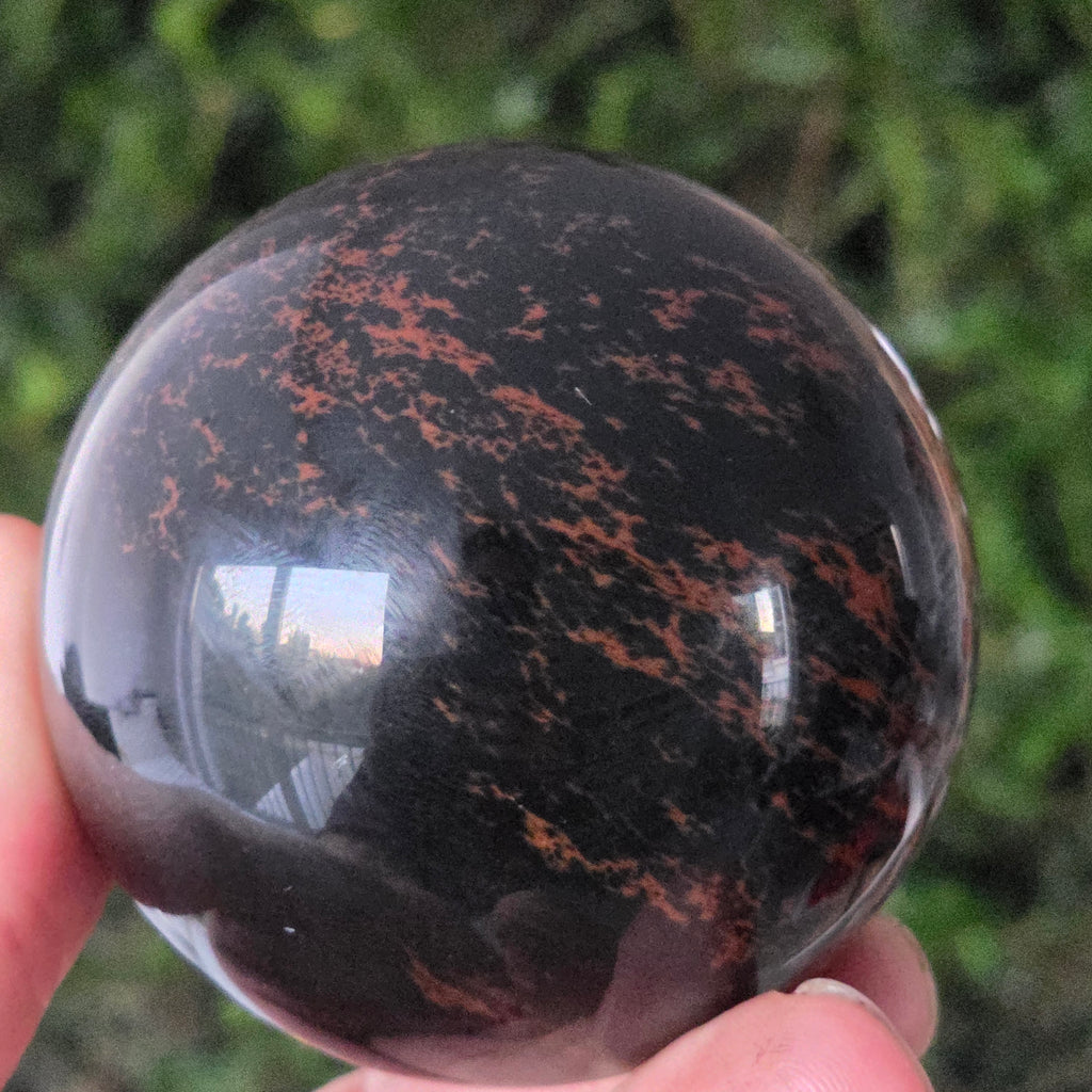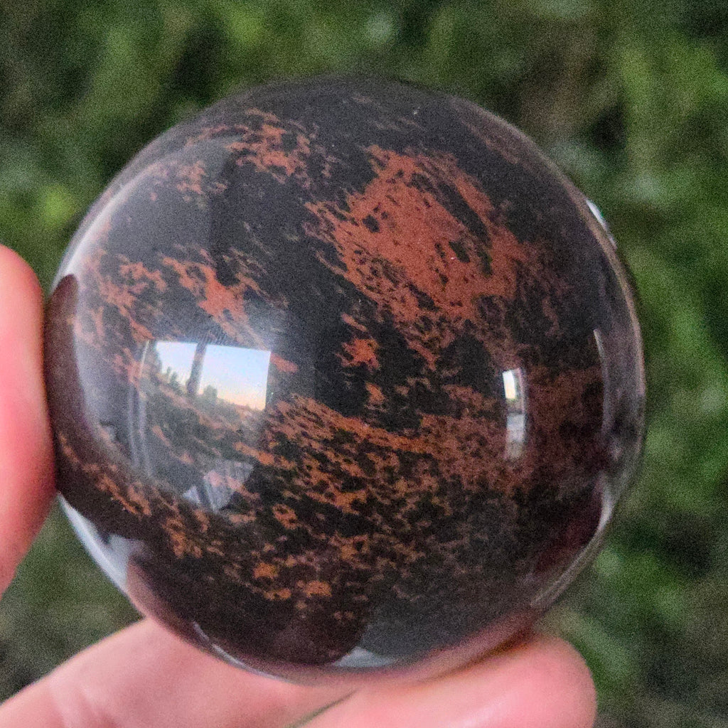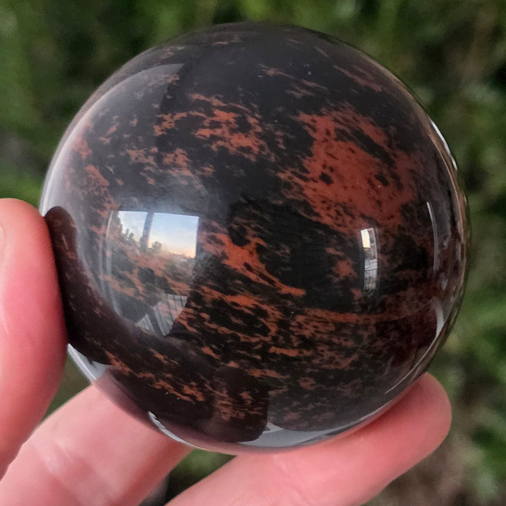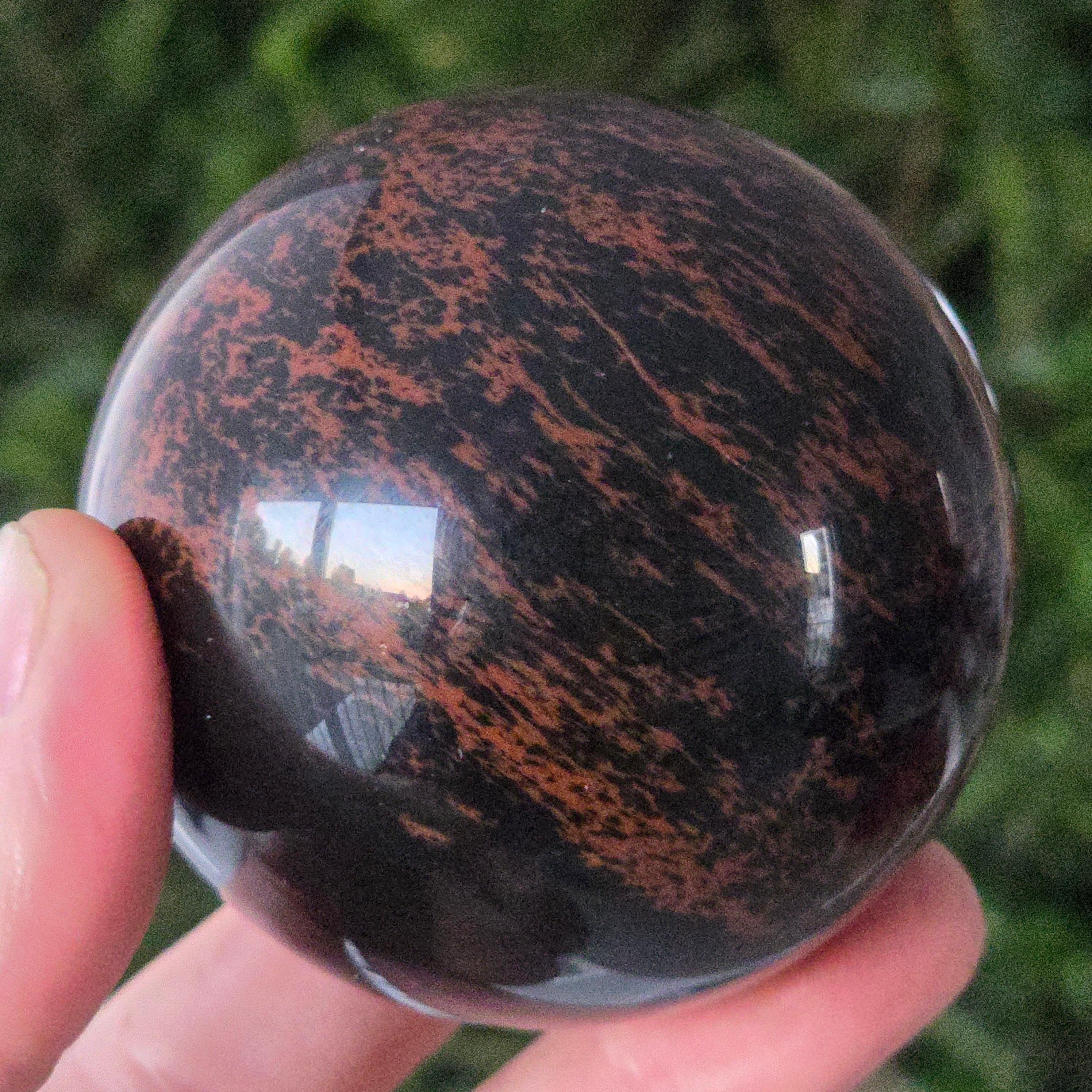 Lasă-te inspirat de forța liniștită a Pământului prin această sferă din obsidian mahon.