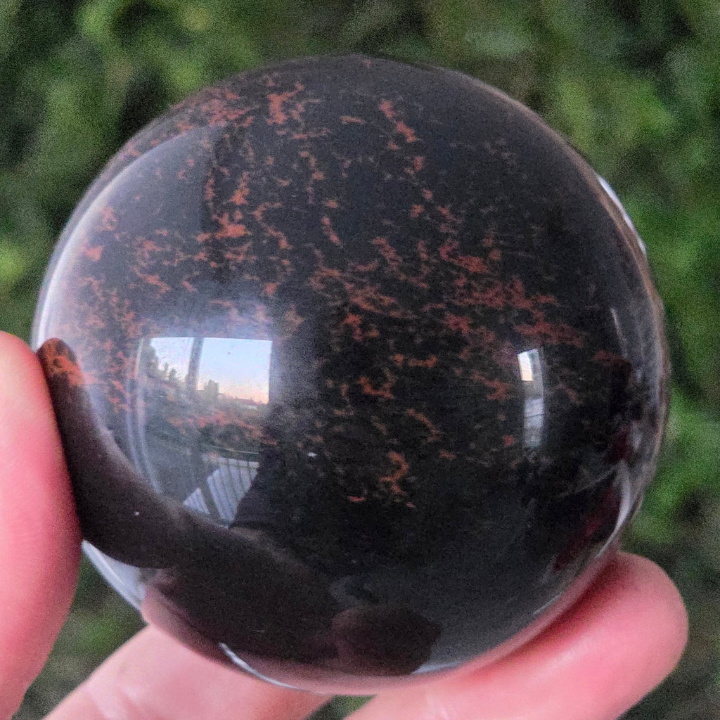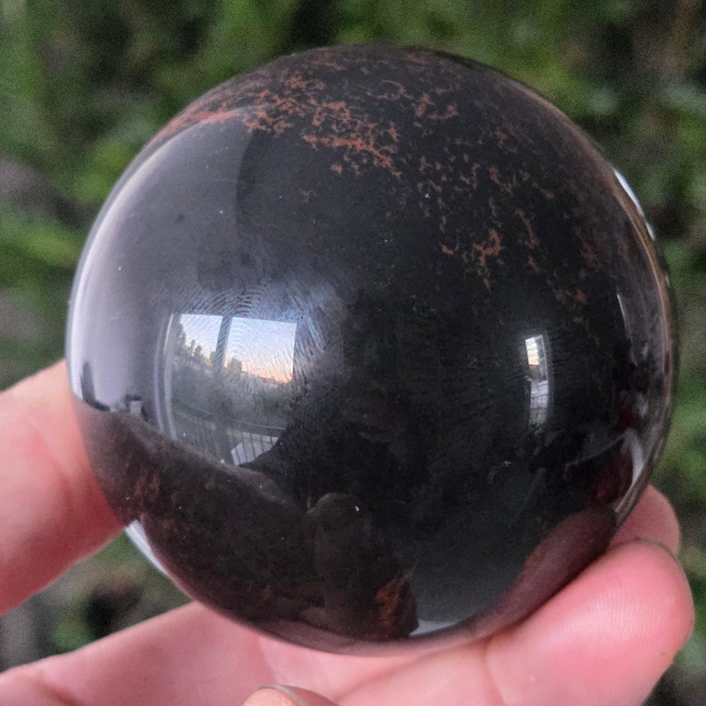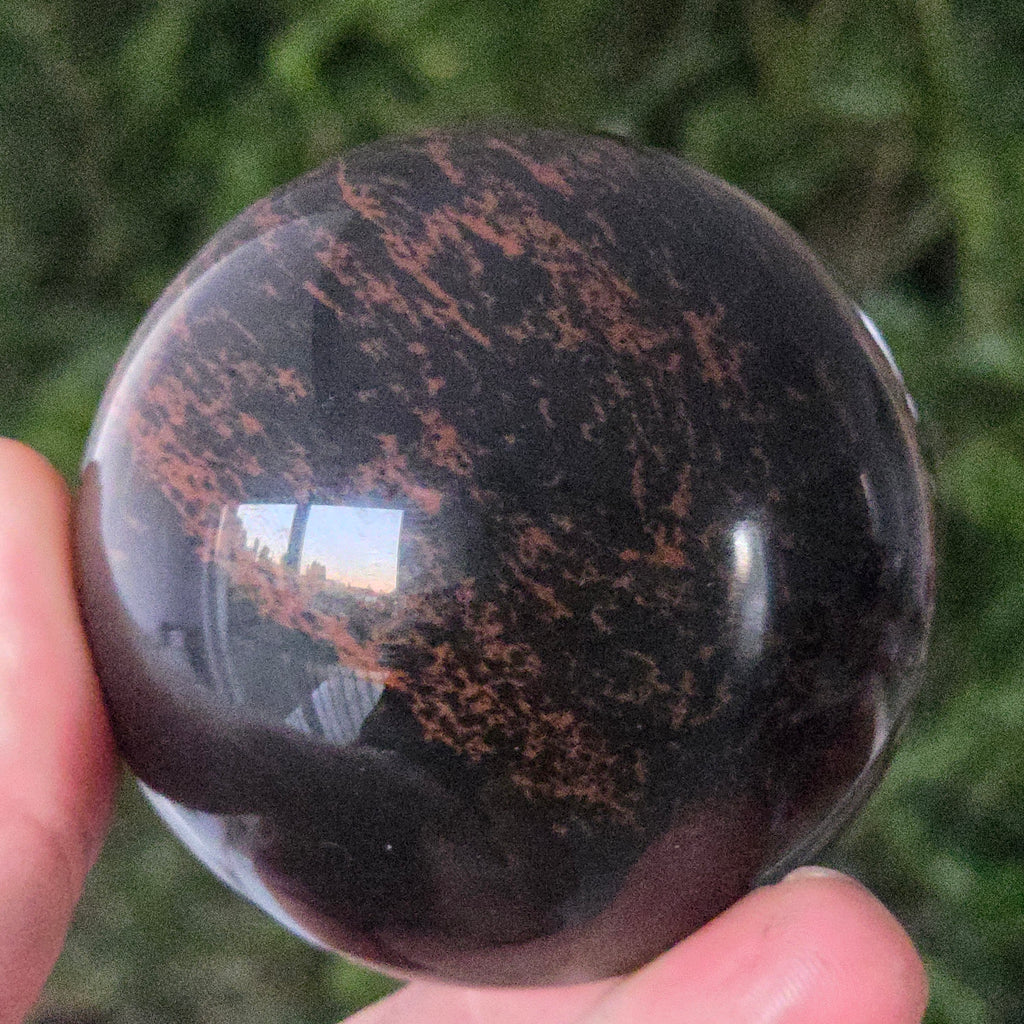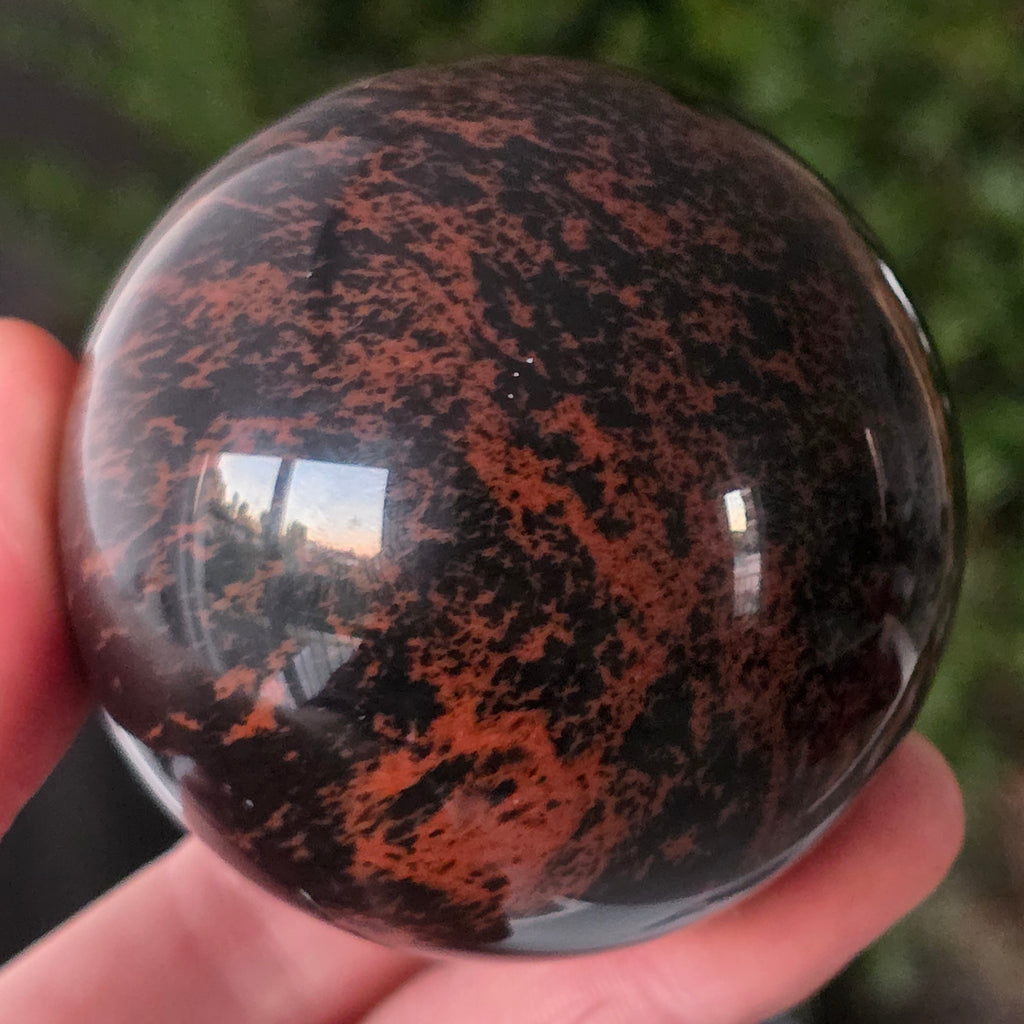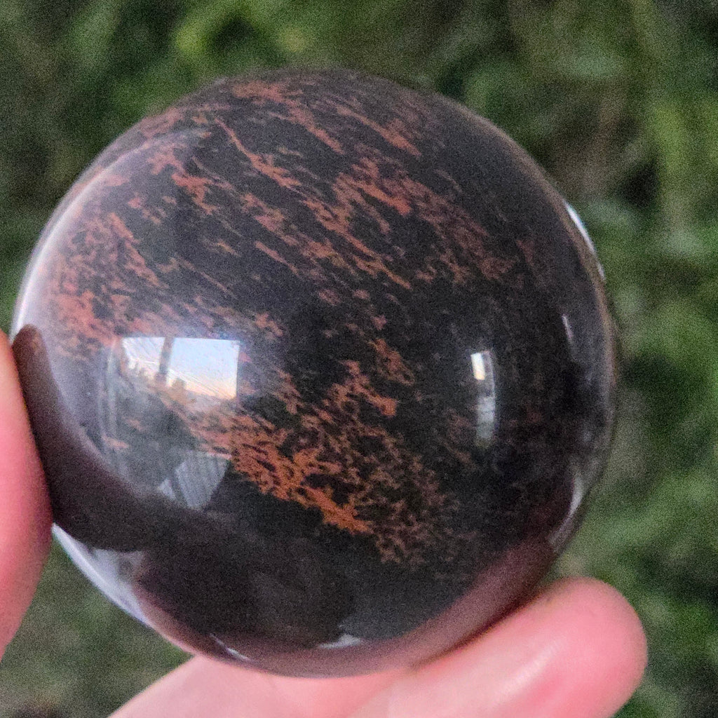 Lasă-te inspirat de forța liniștită a Pământului prin această sferă din obsidian mahon.