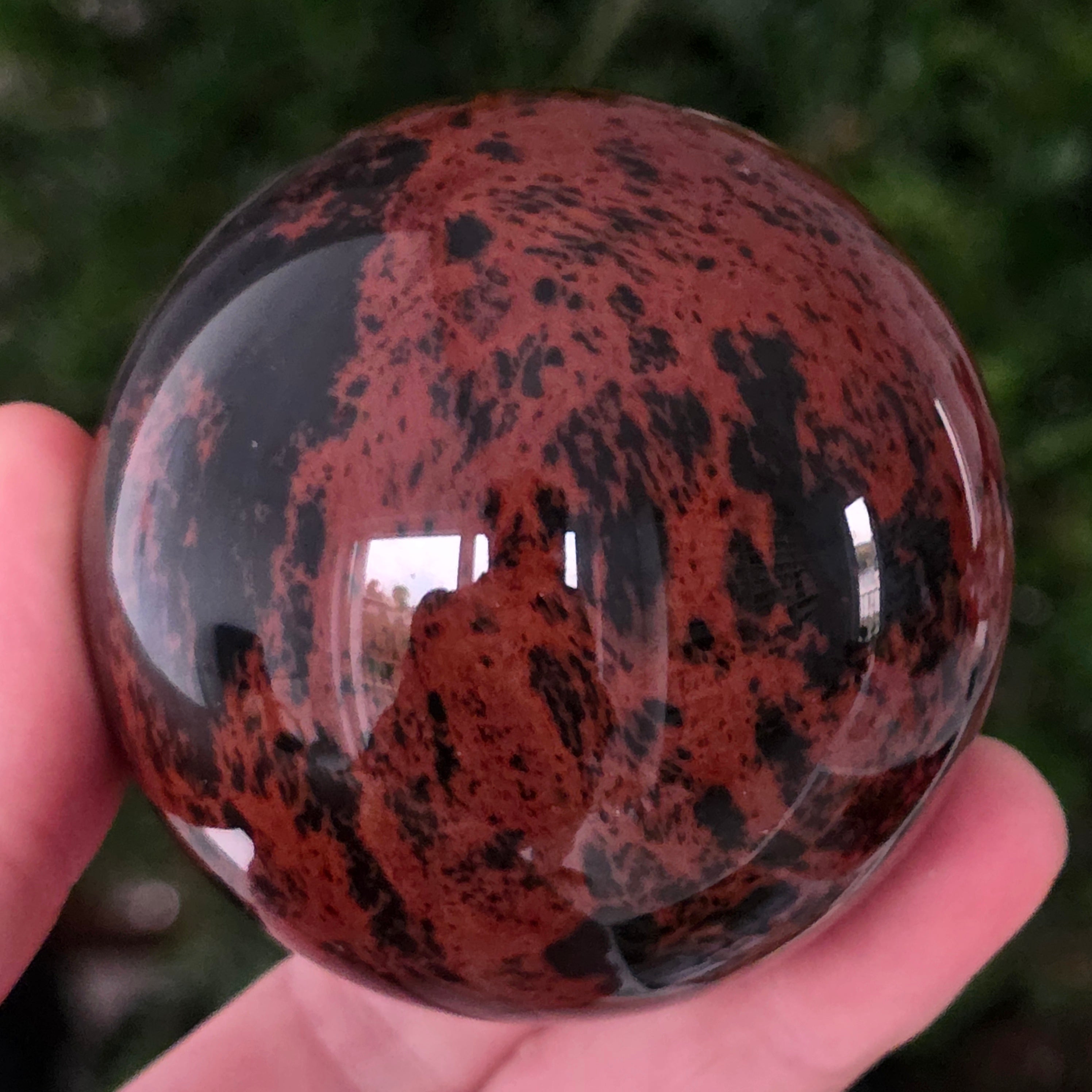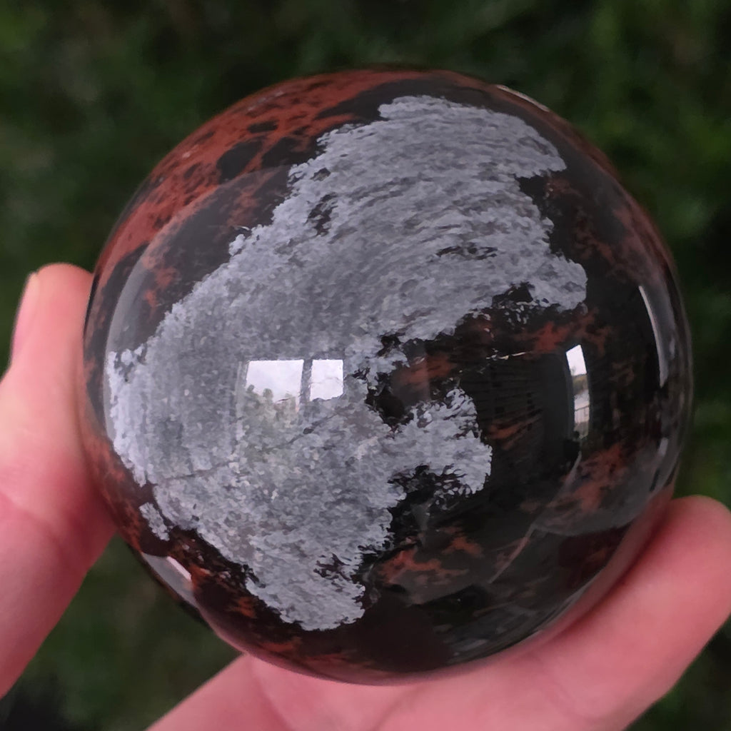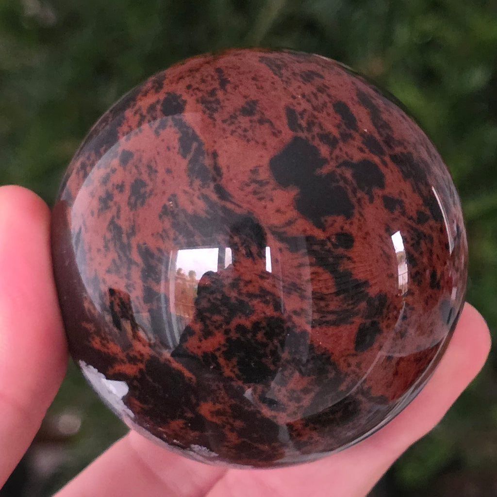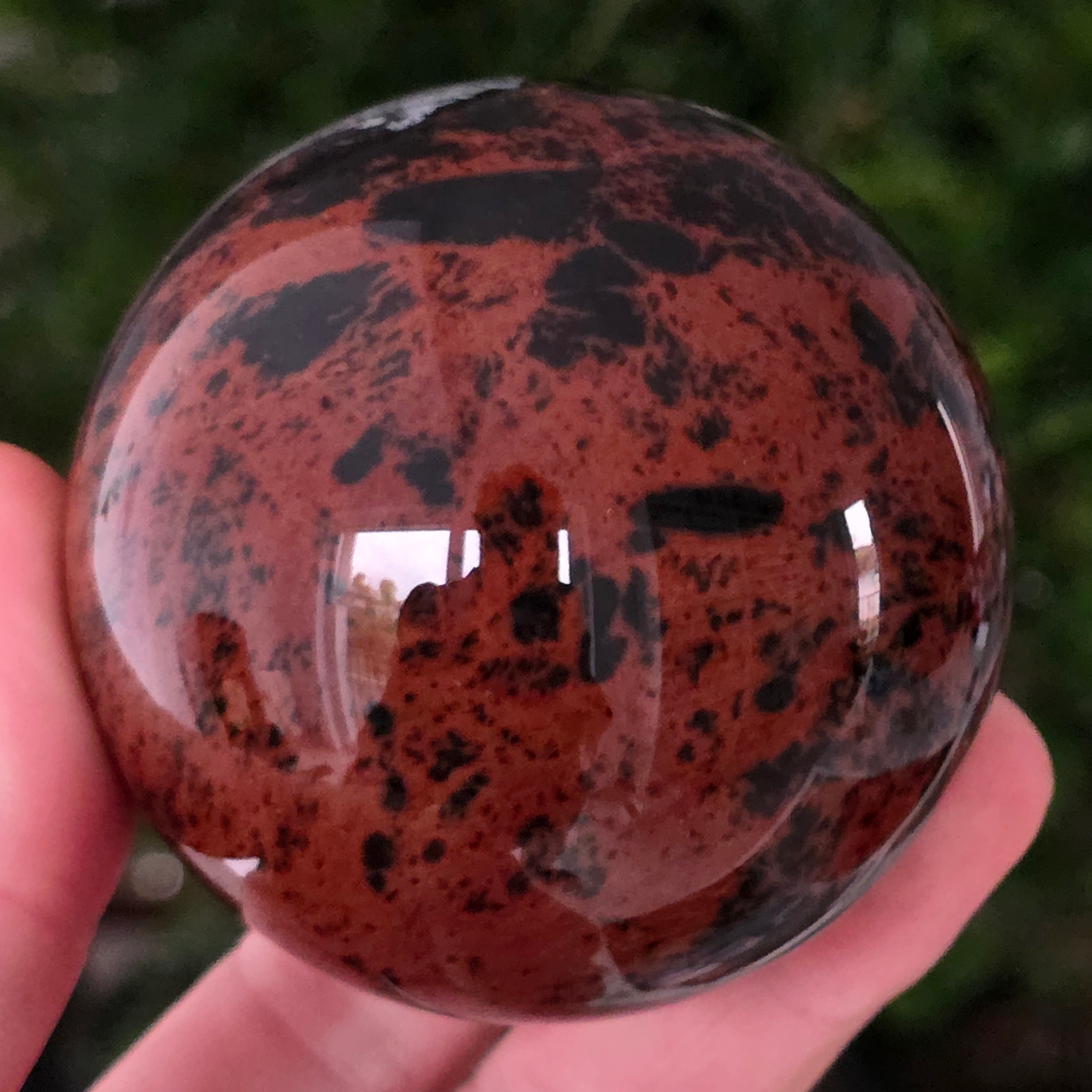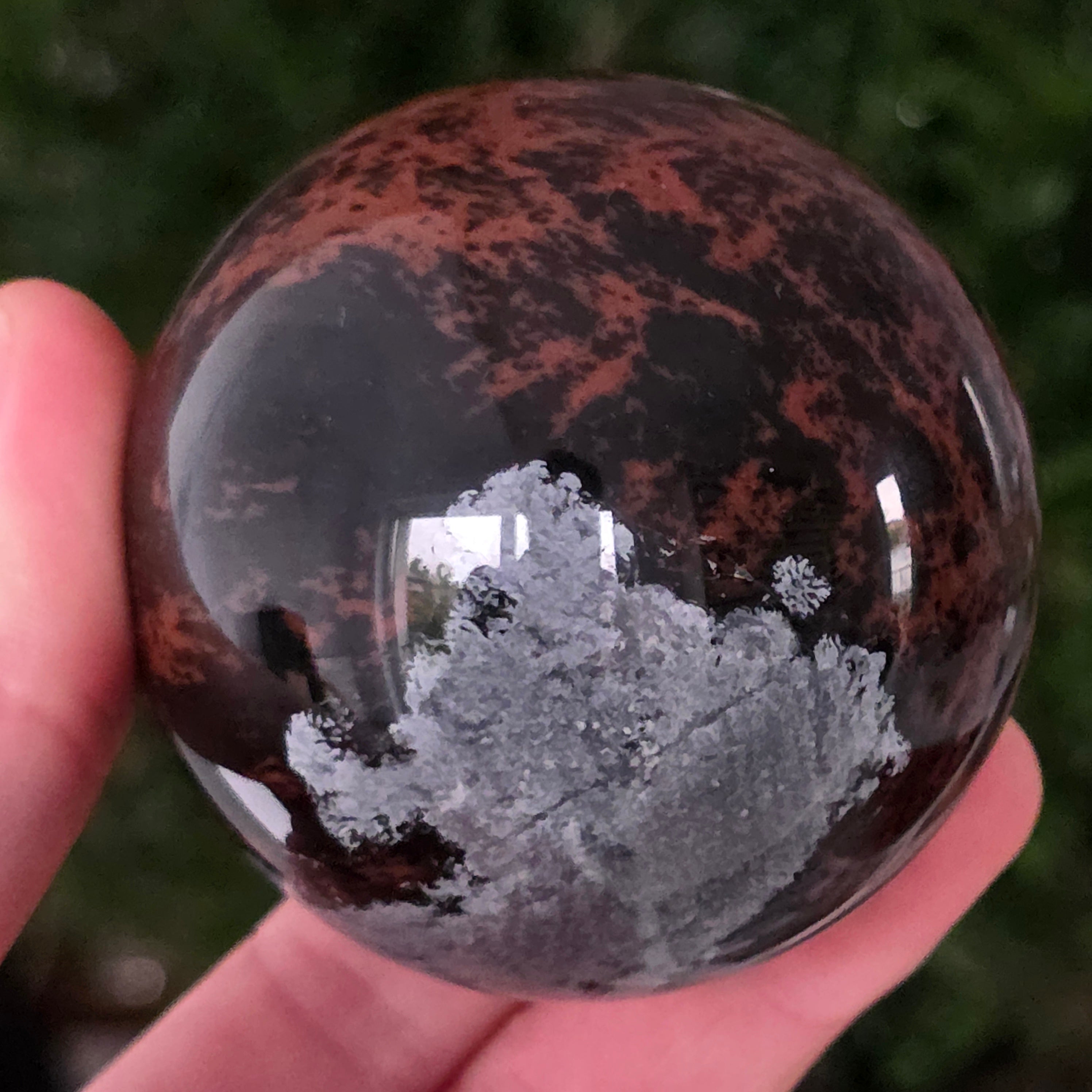 Lasă-te inspirat de forța liniștită a Pământului prin această sferă din obsidian mahon.