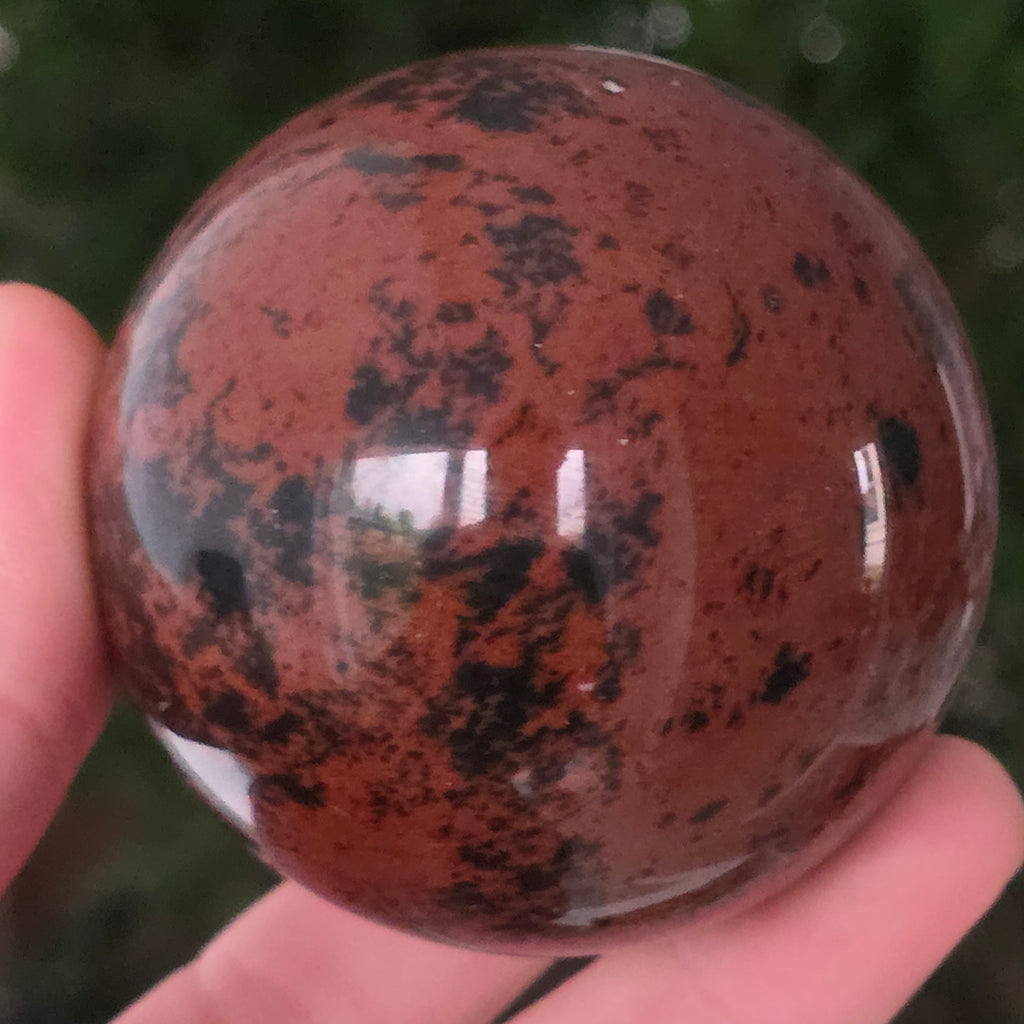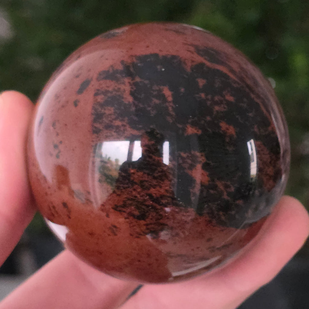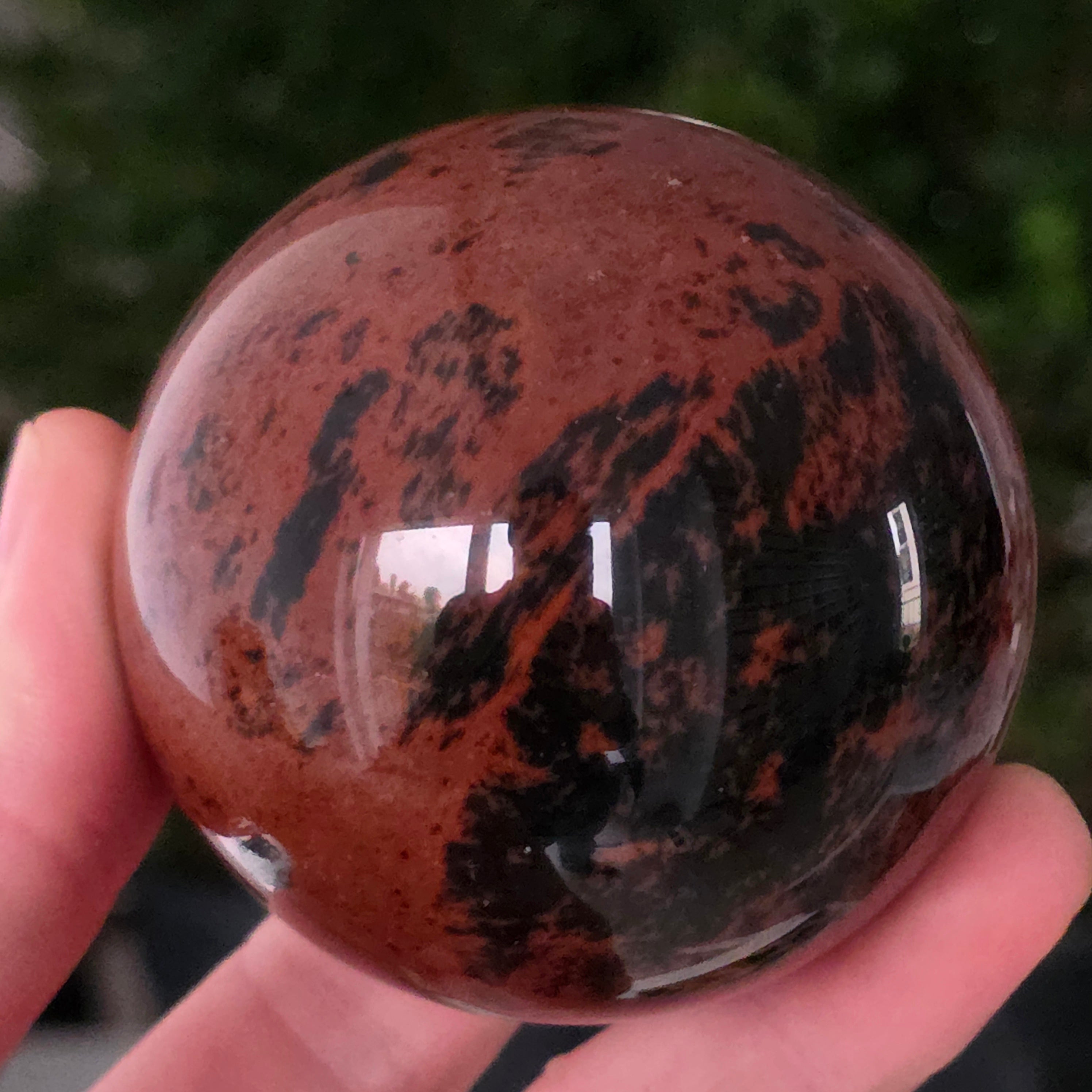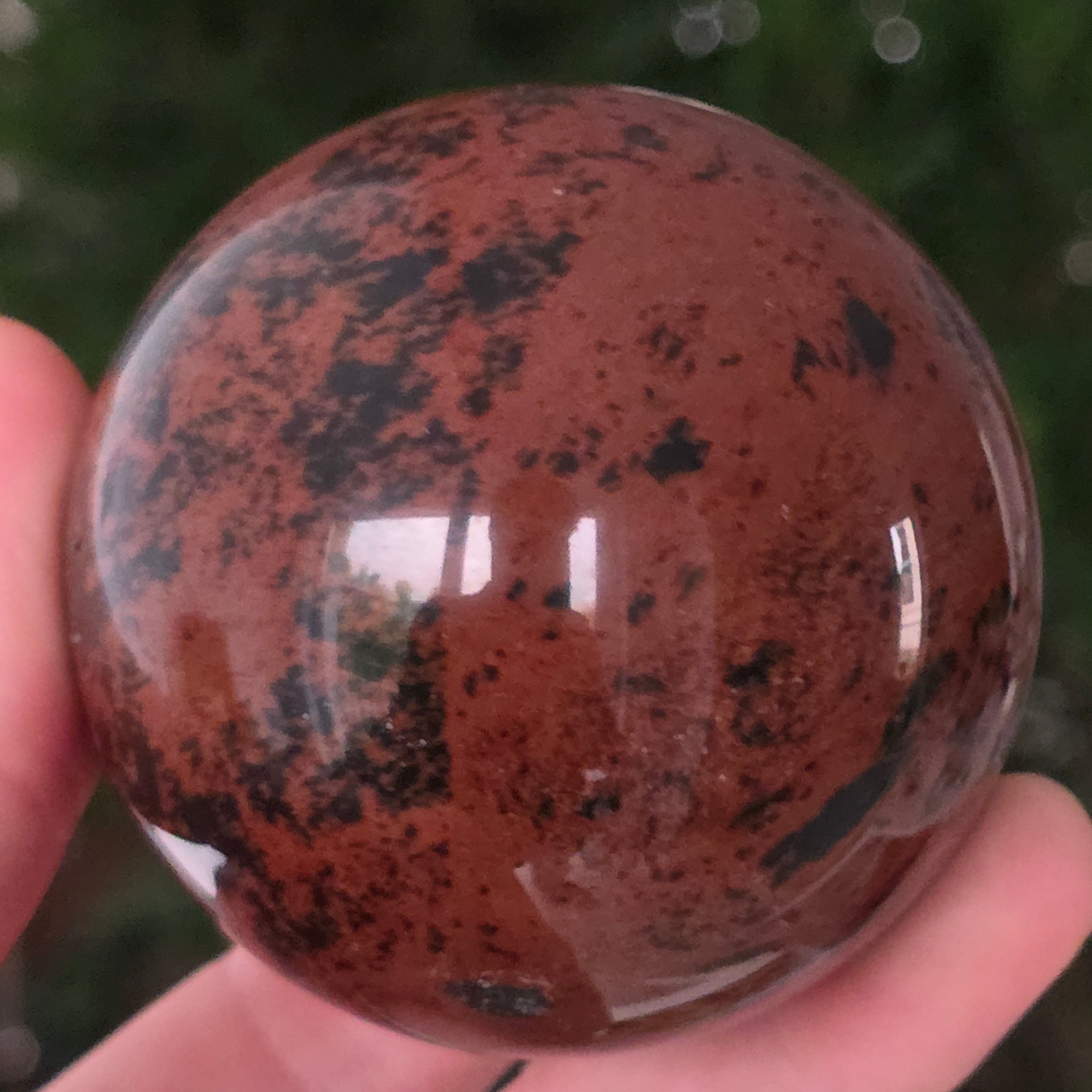 Lasă-te inspirat de forța liniștită a Pământului prin această sferă din obsidian mahon.