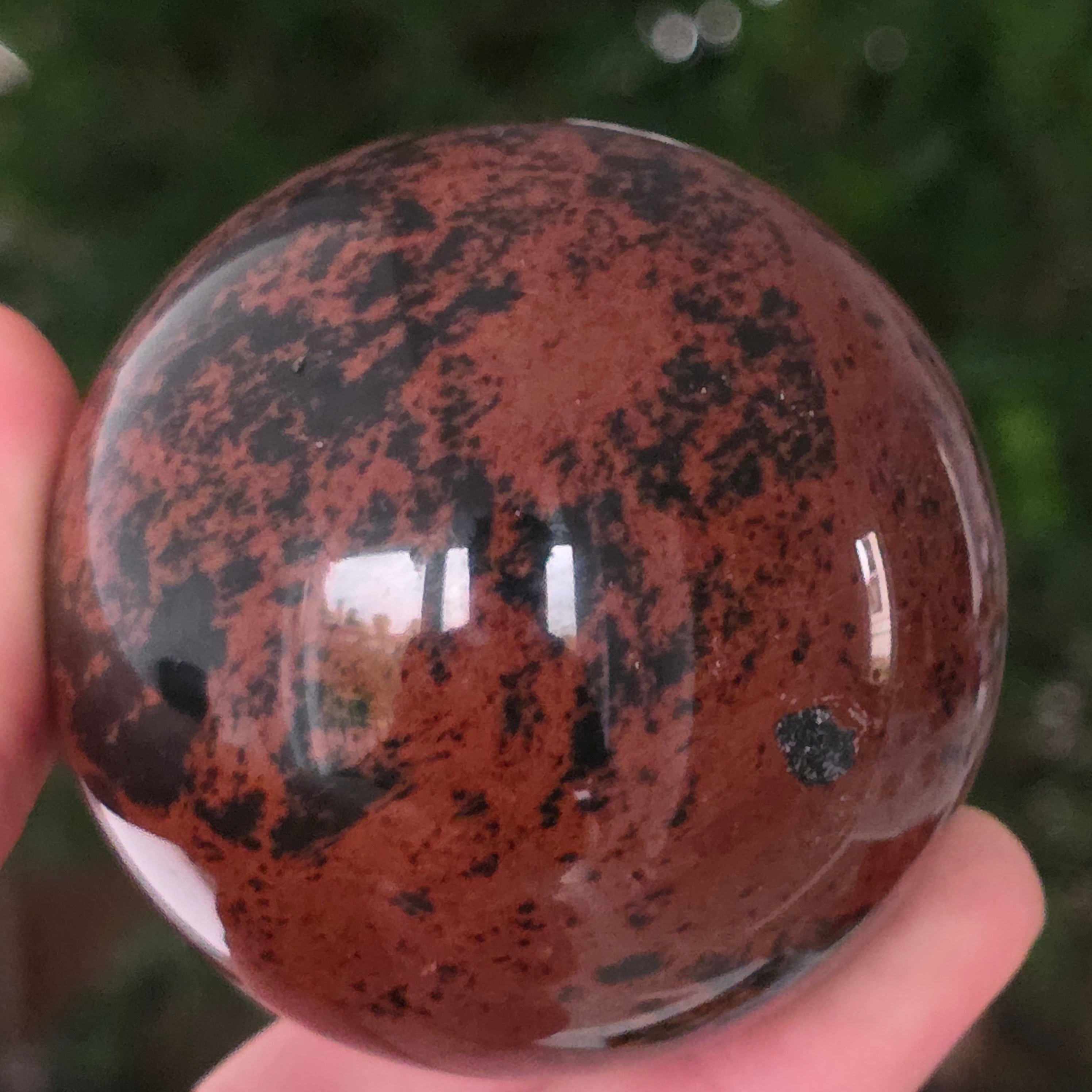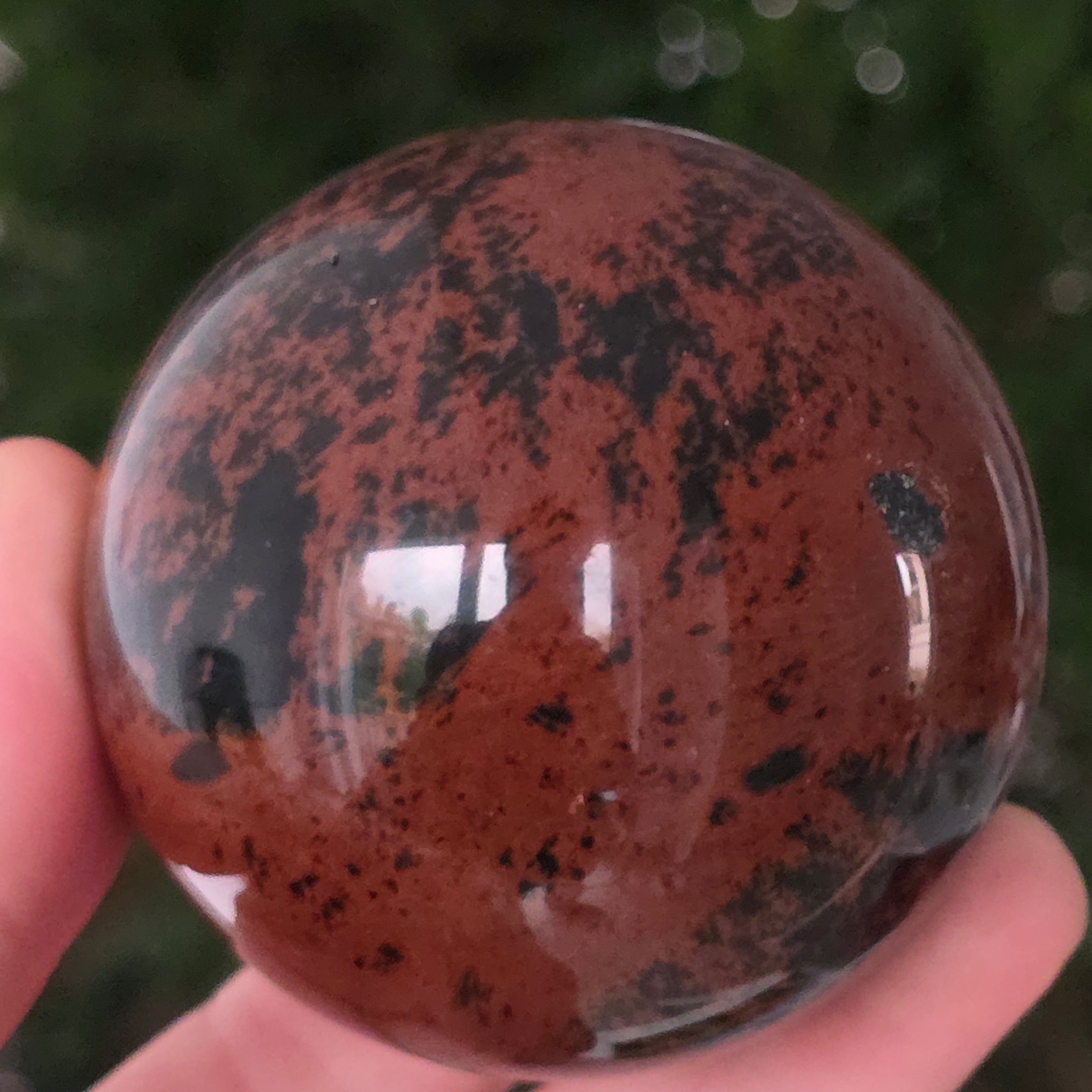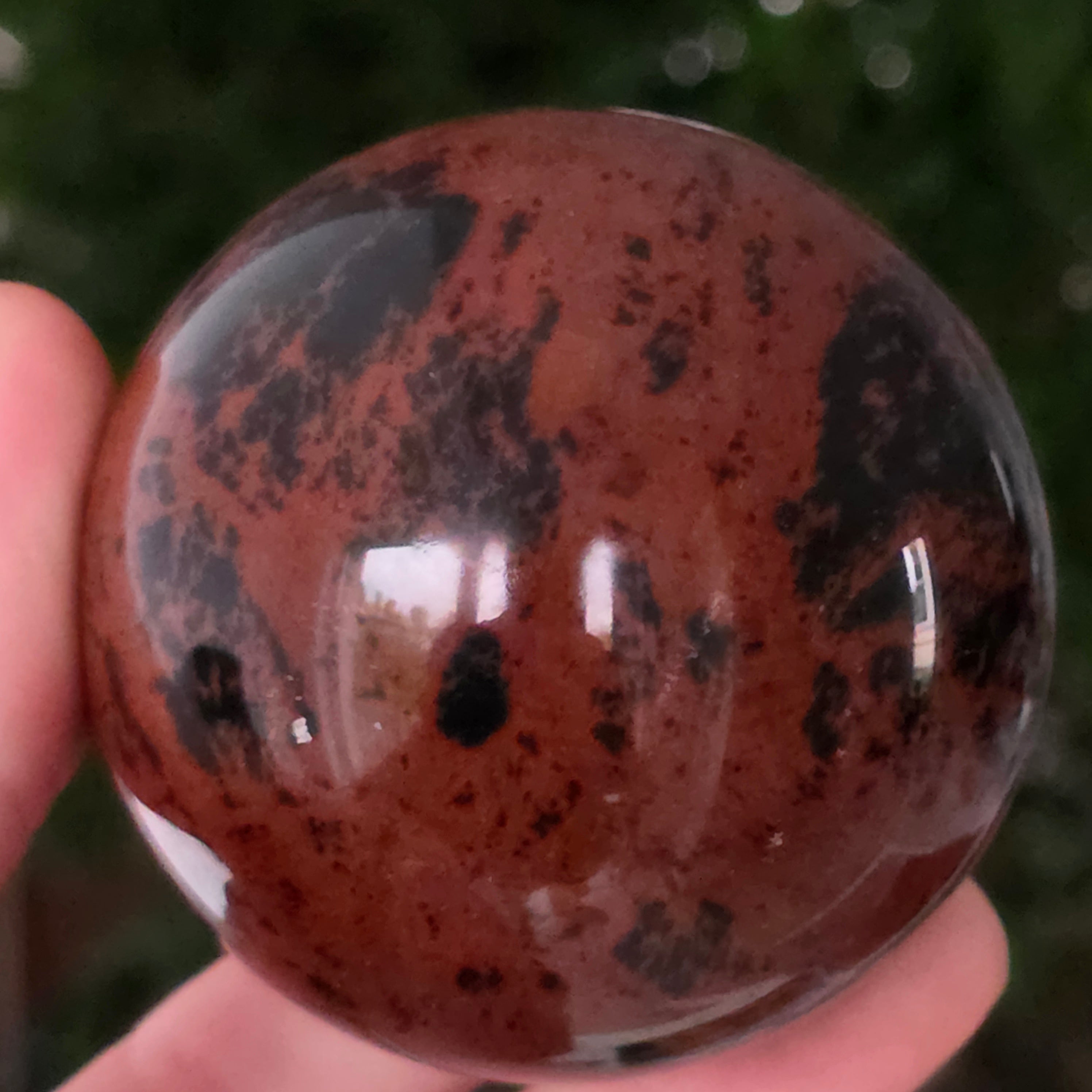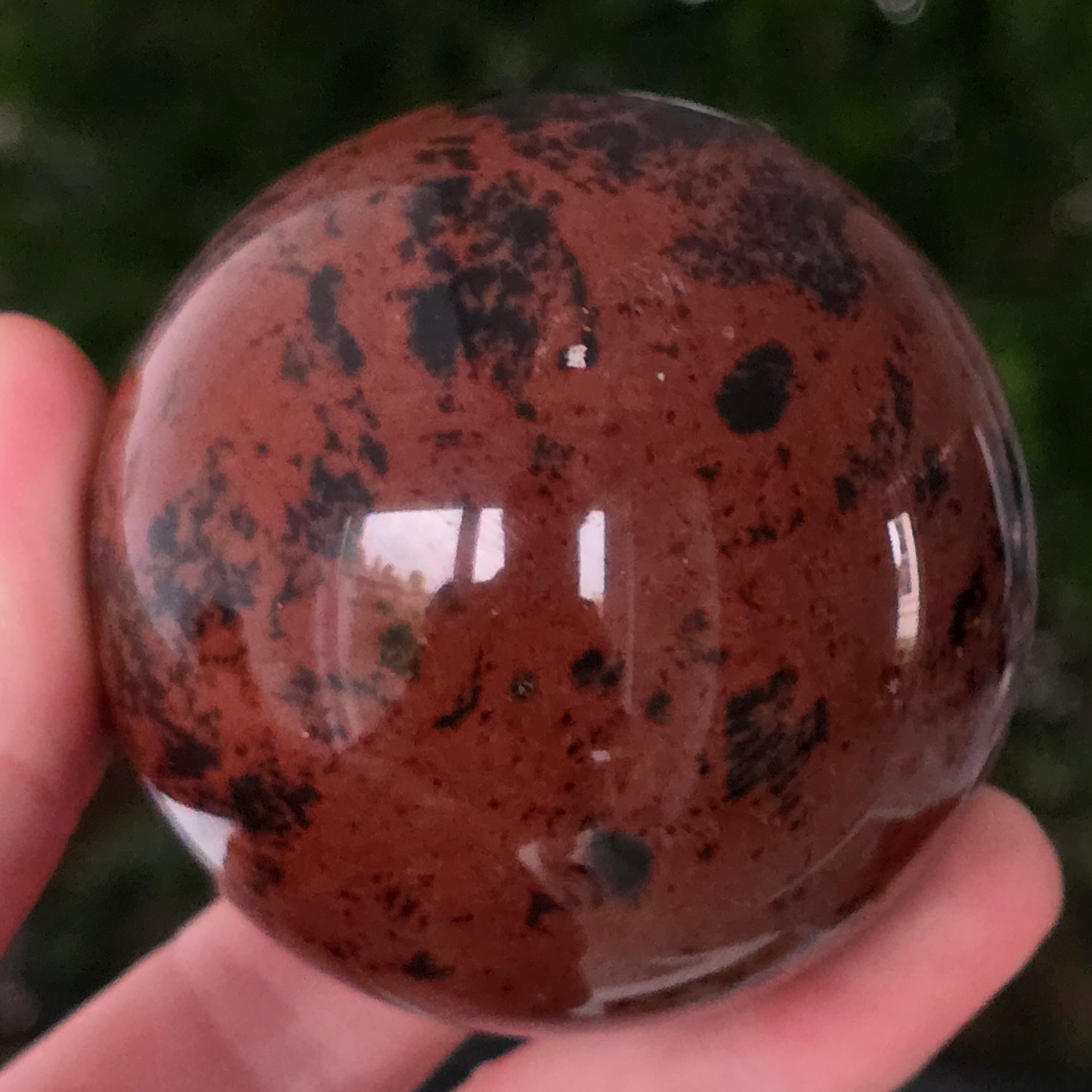 Lasă-te inspirat de forța liniștită a Pământului prin această sferă din obsidian mahon.