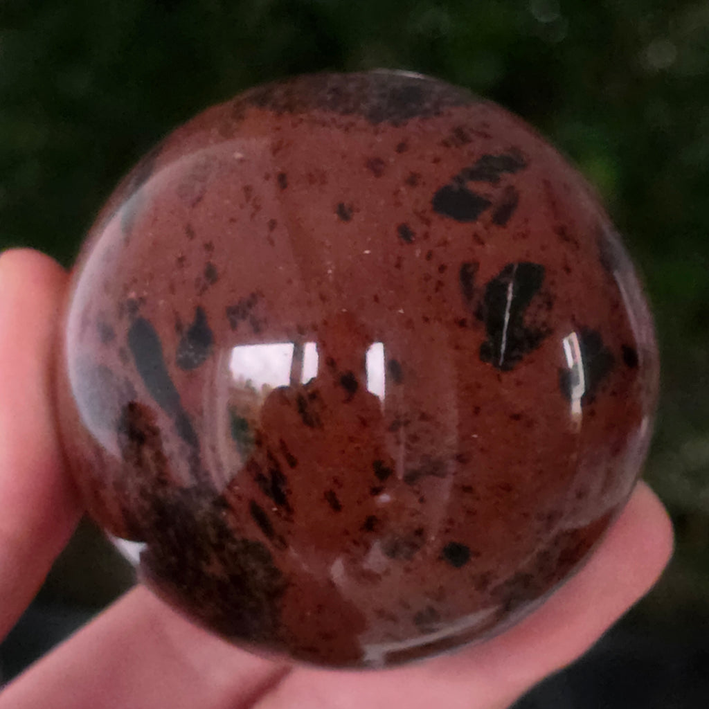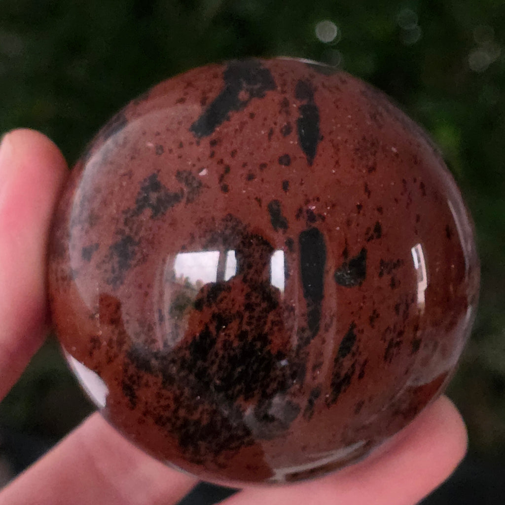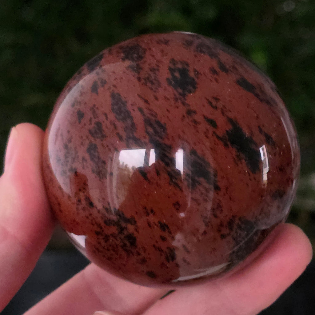 Lasă-te inspirat de forța liniștită a Pământului prin această sferă din obsidian mahon.