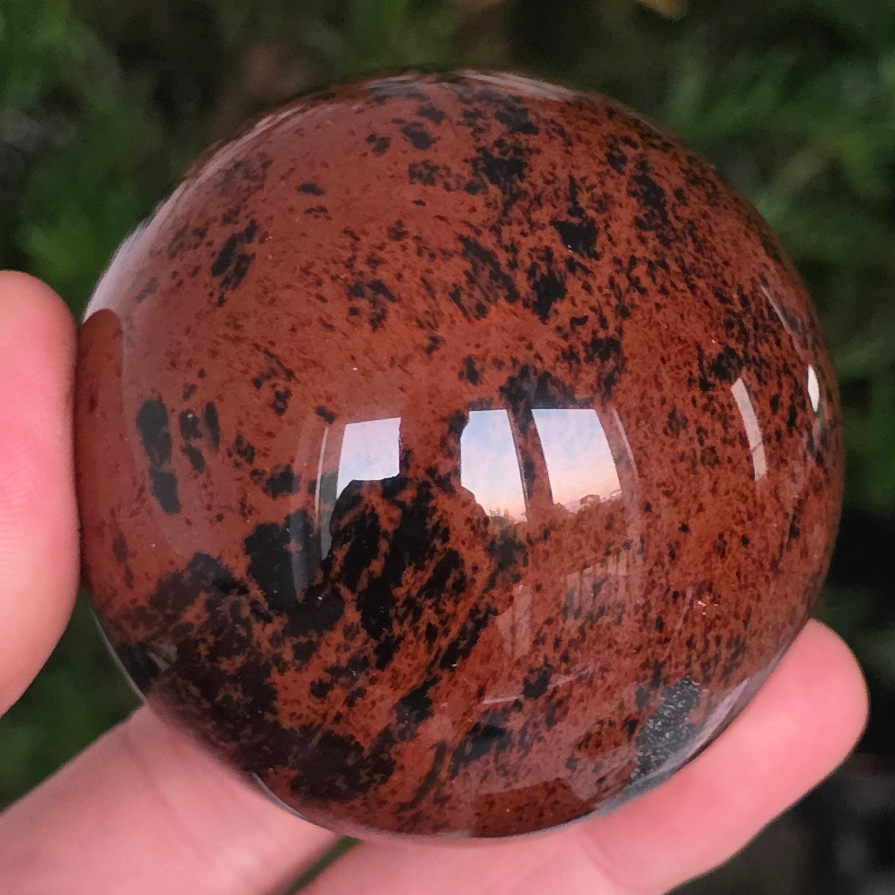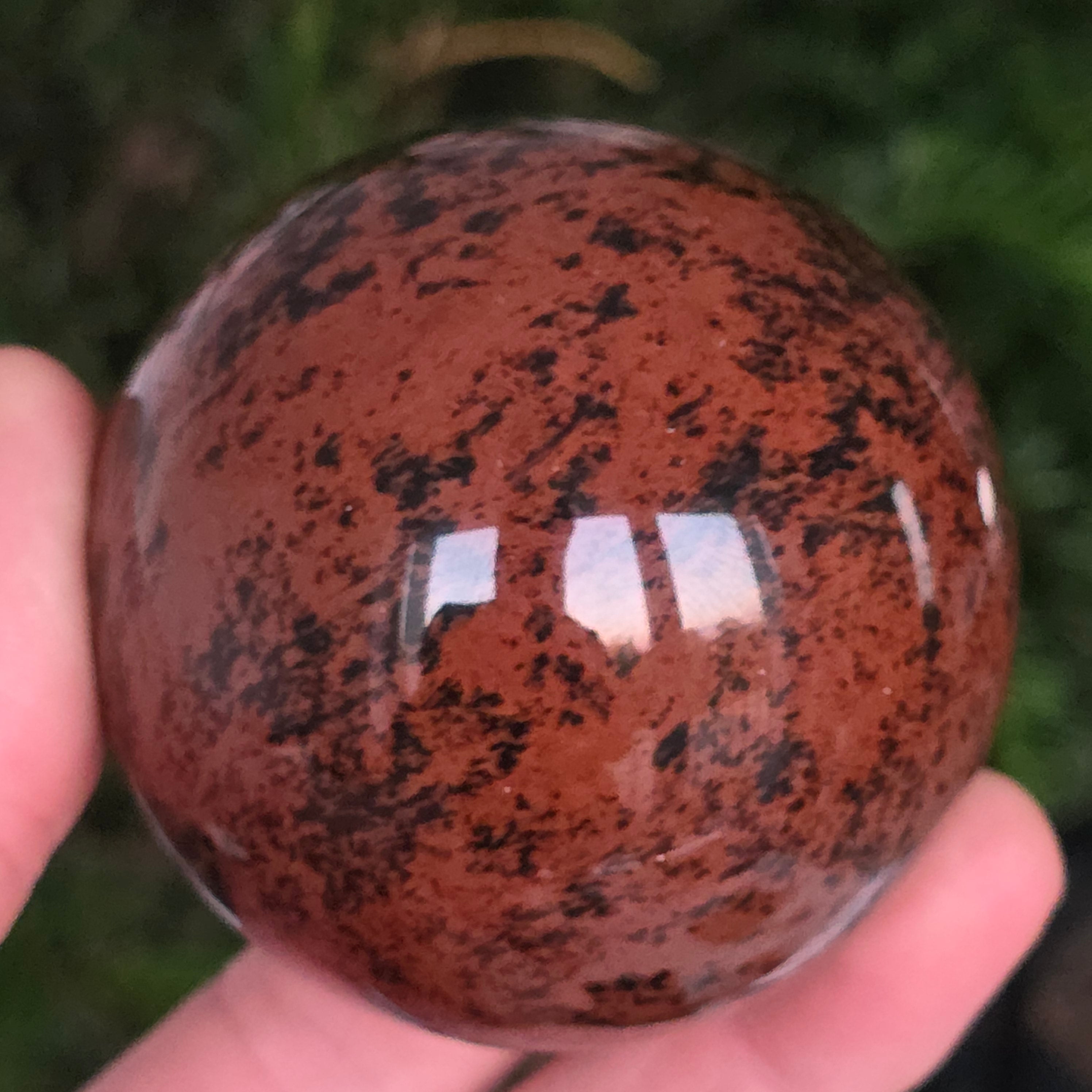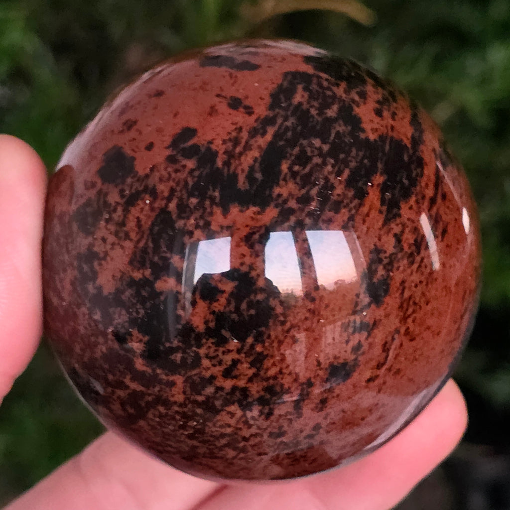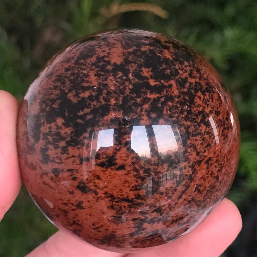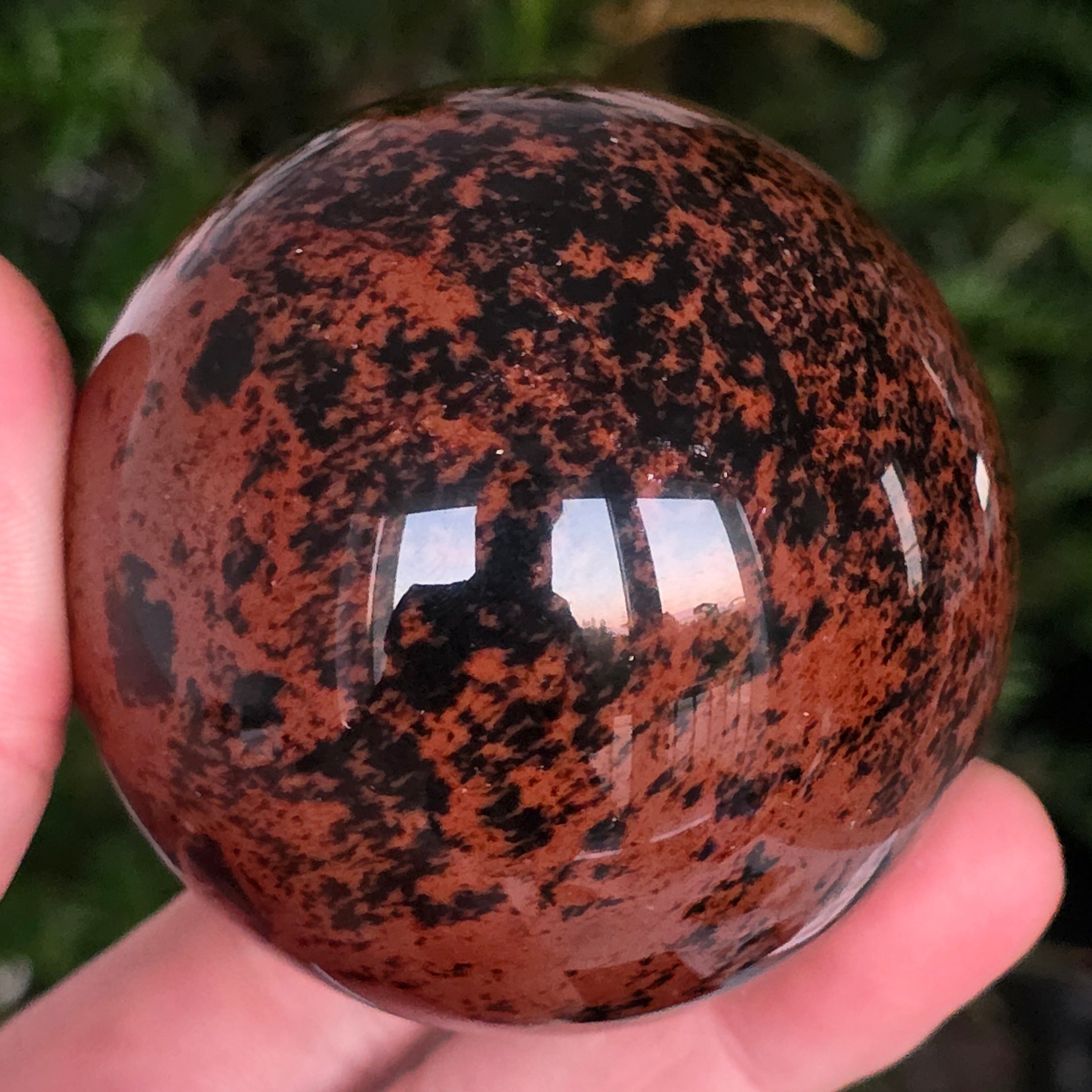 Lasă-te inspirat de forța liniștită a Pământului prin această sferă din obsidian mahon.
