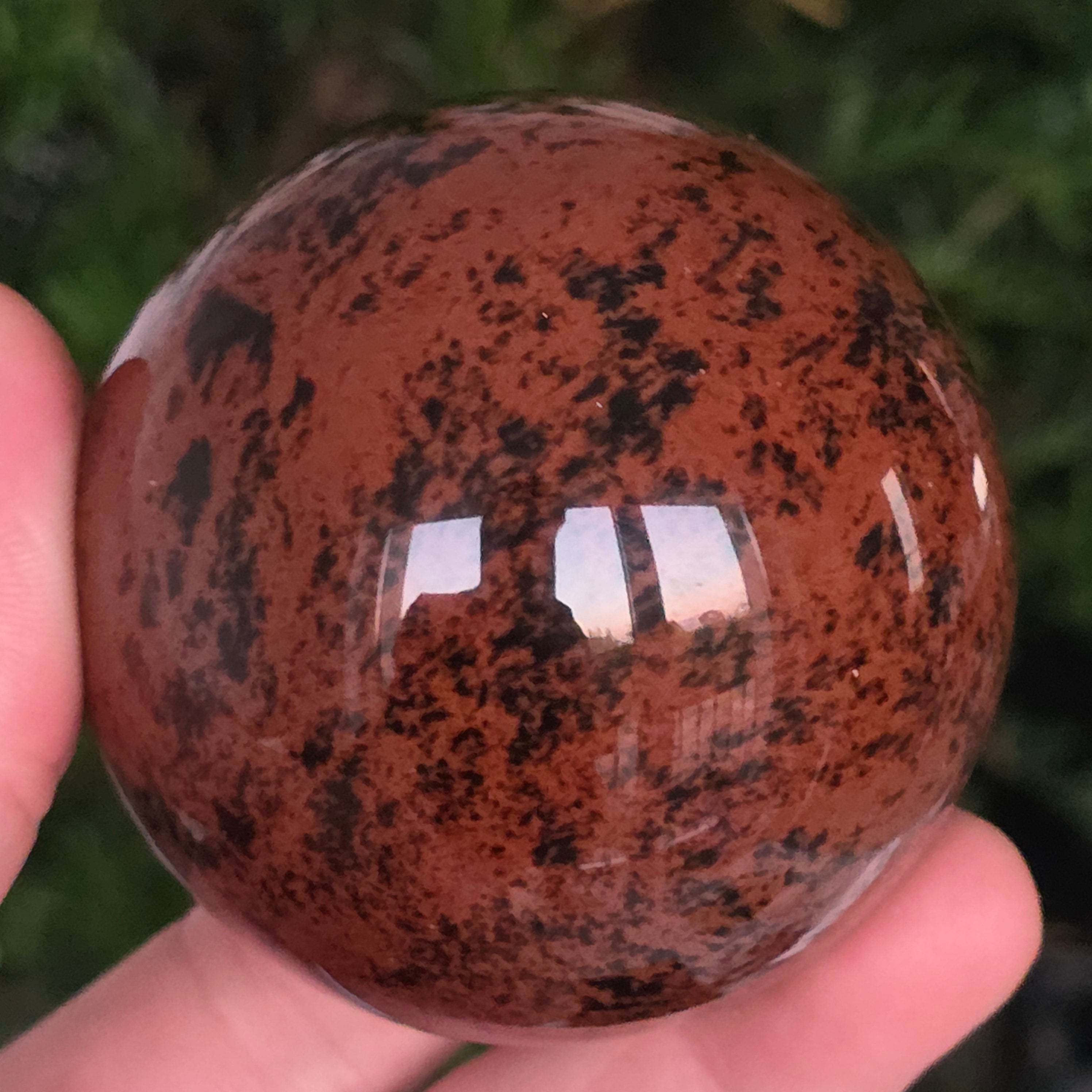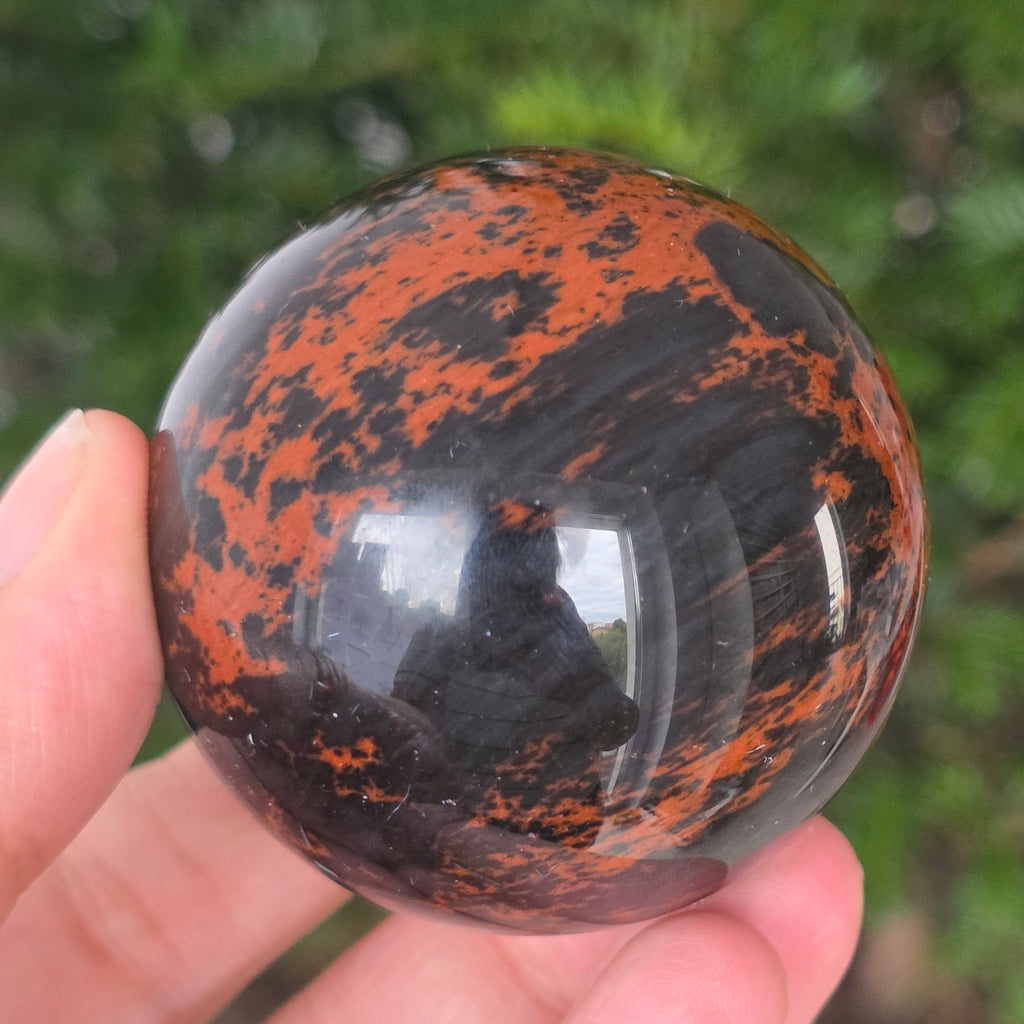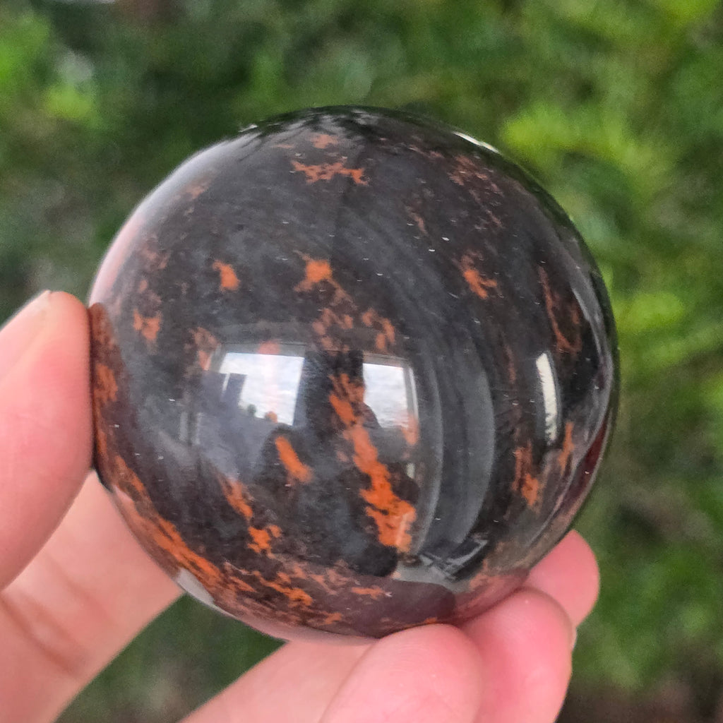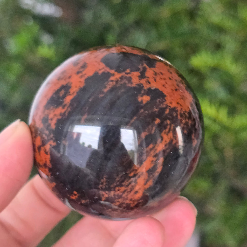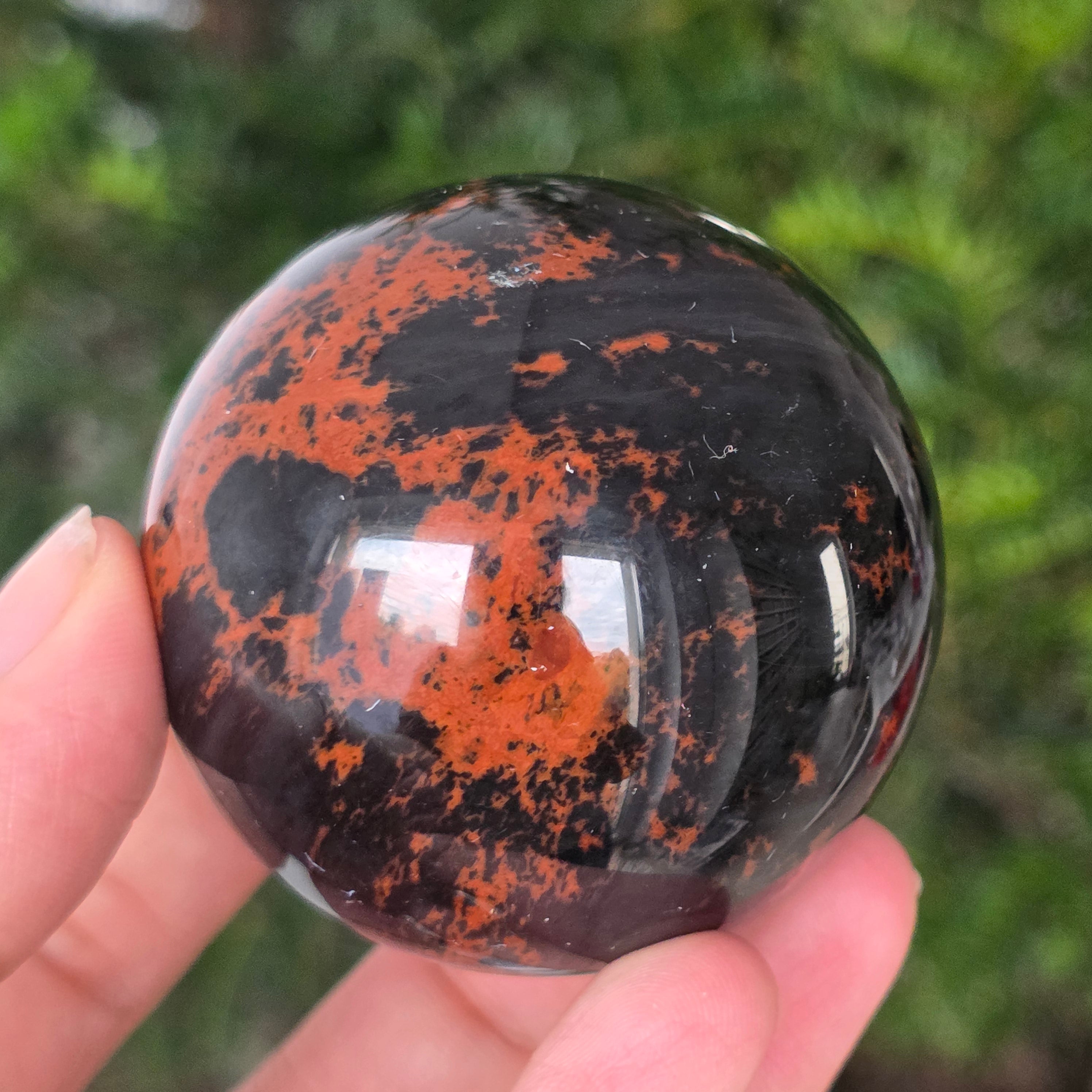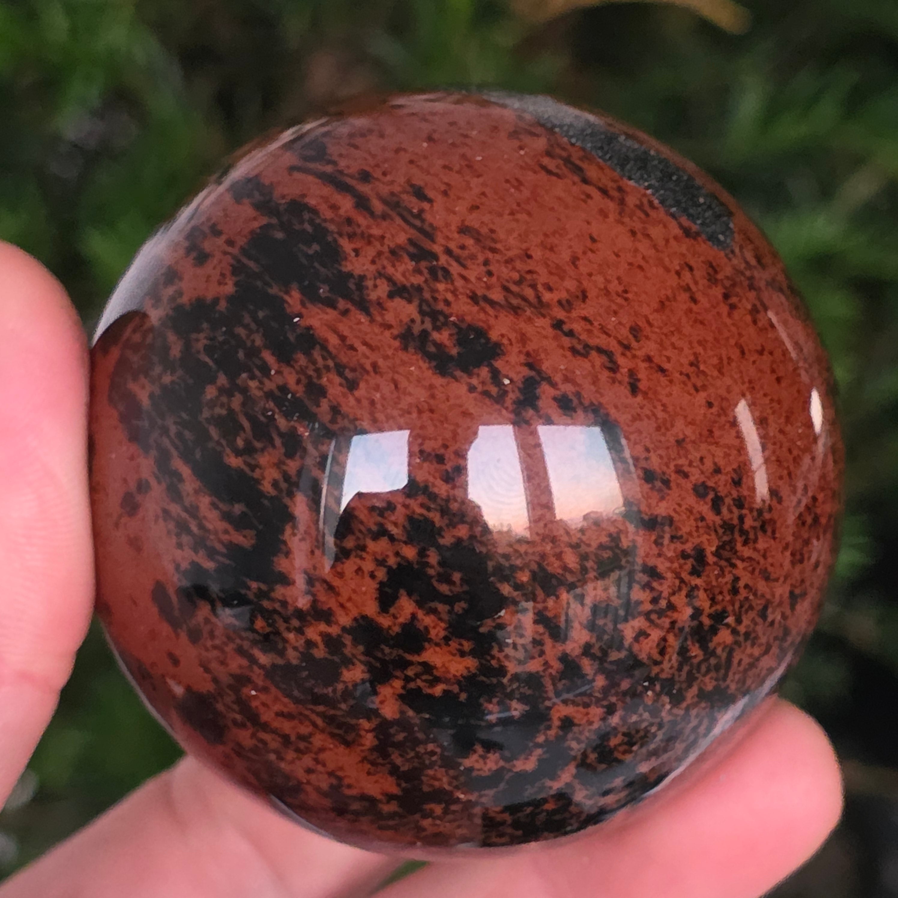 Lasă-te inspirat de forța liniștită a Pământului prin această sferă din obsidian mahon.