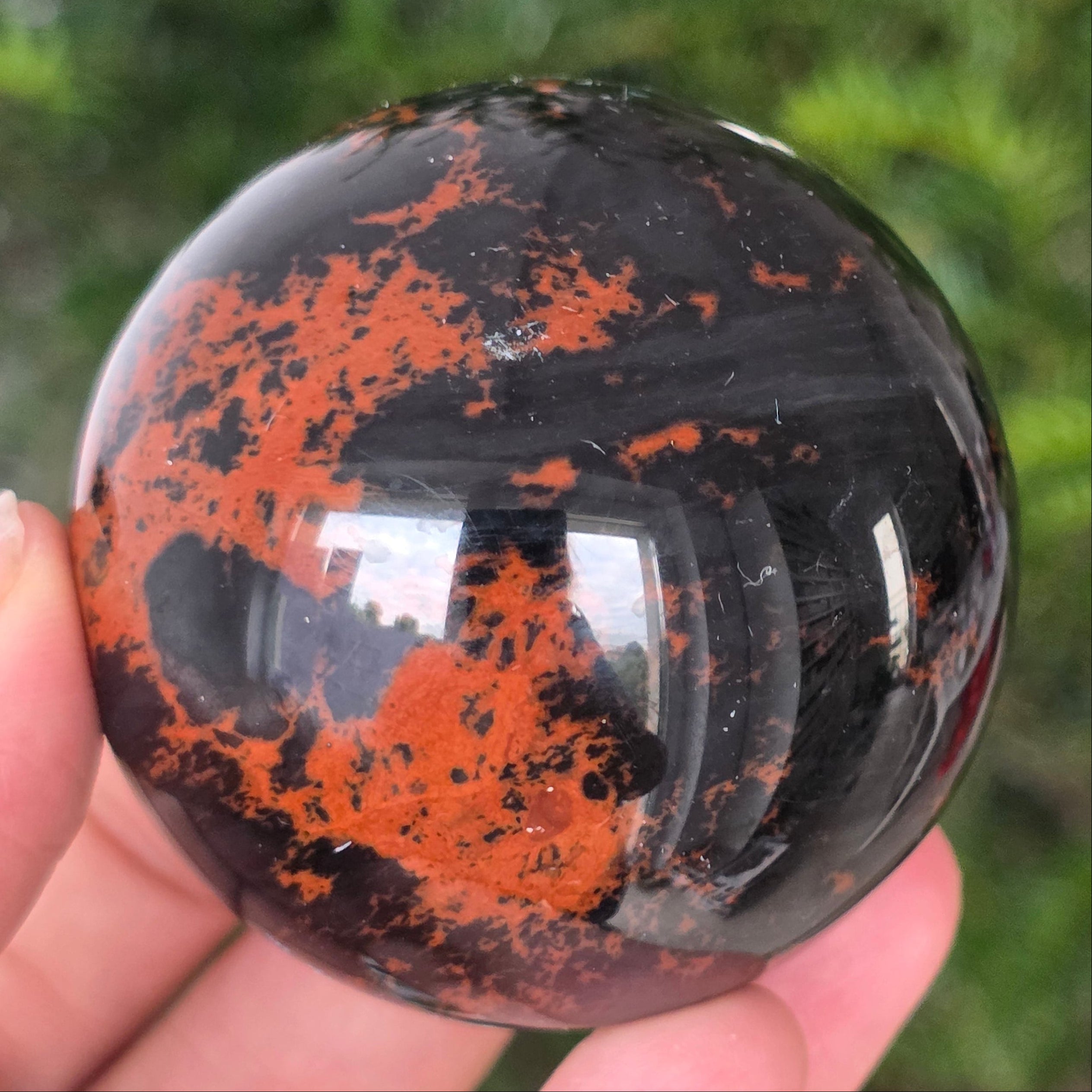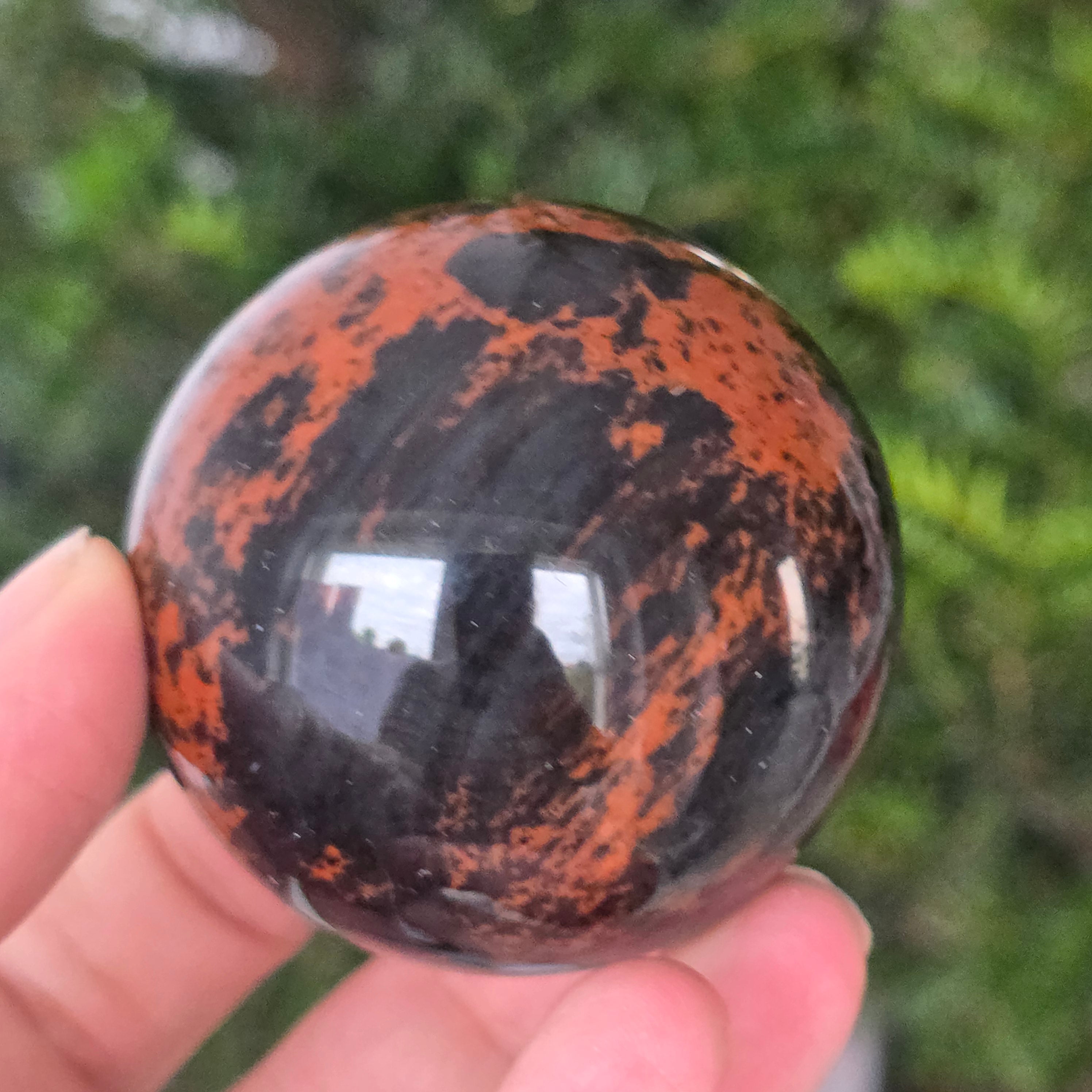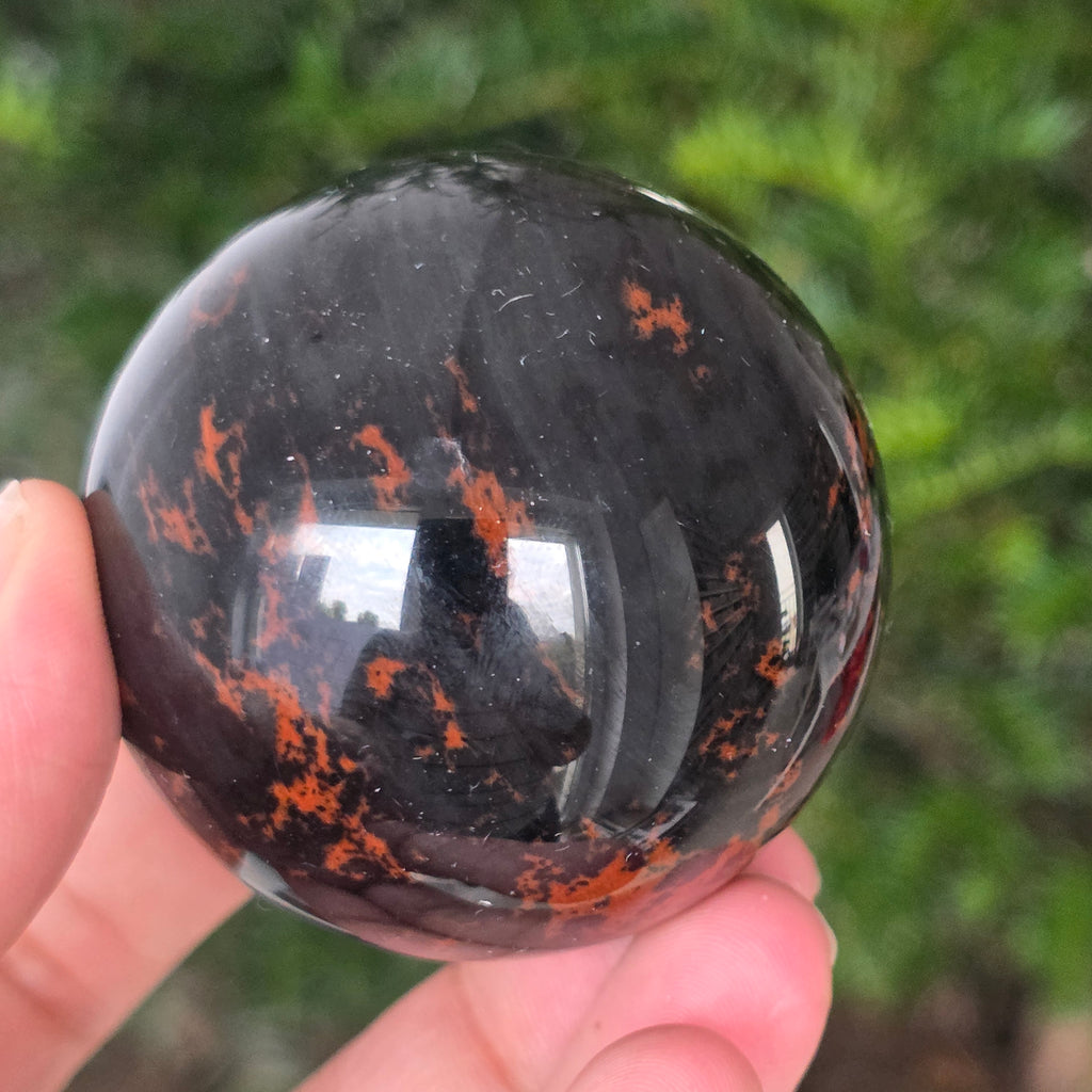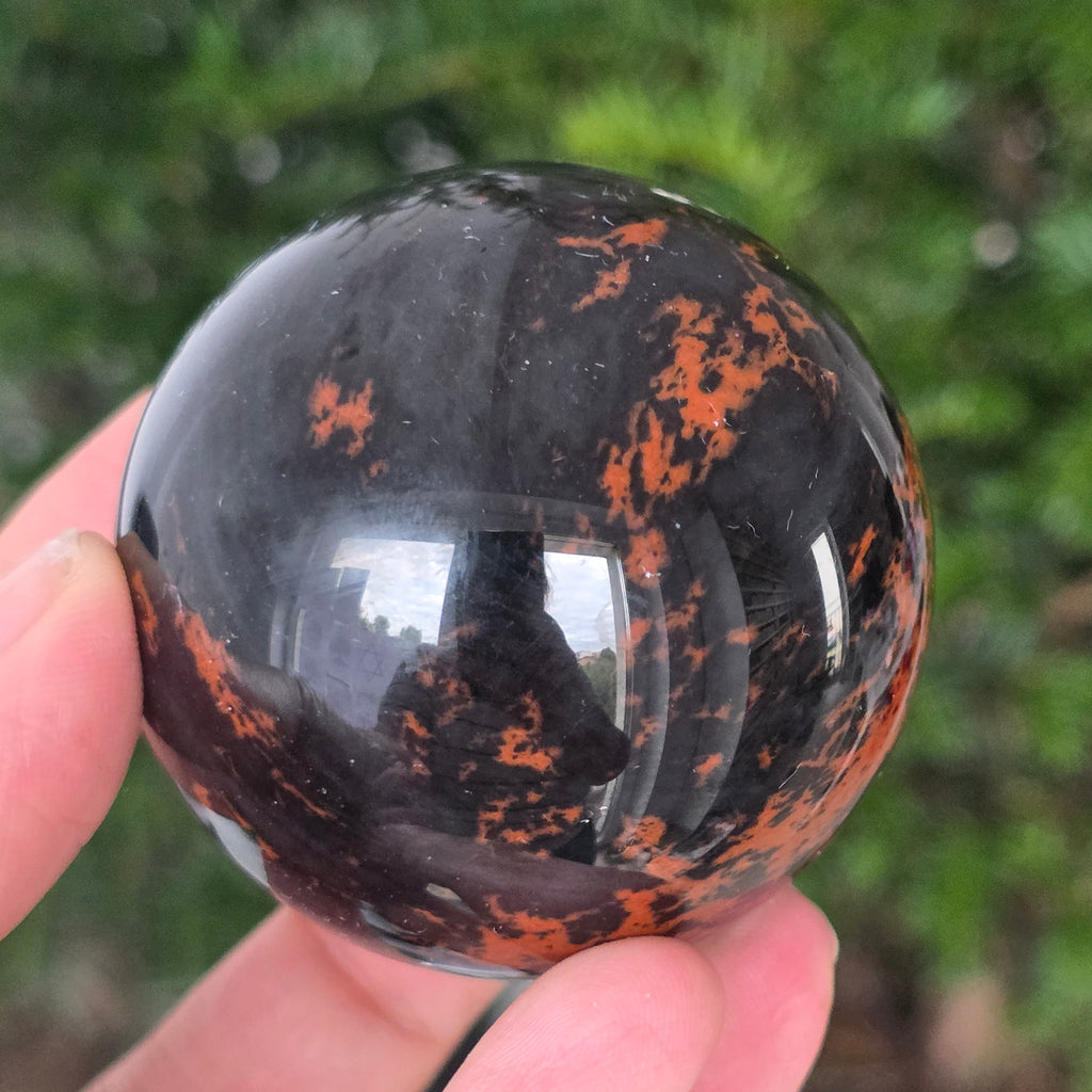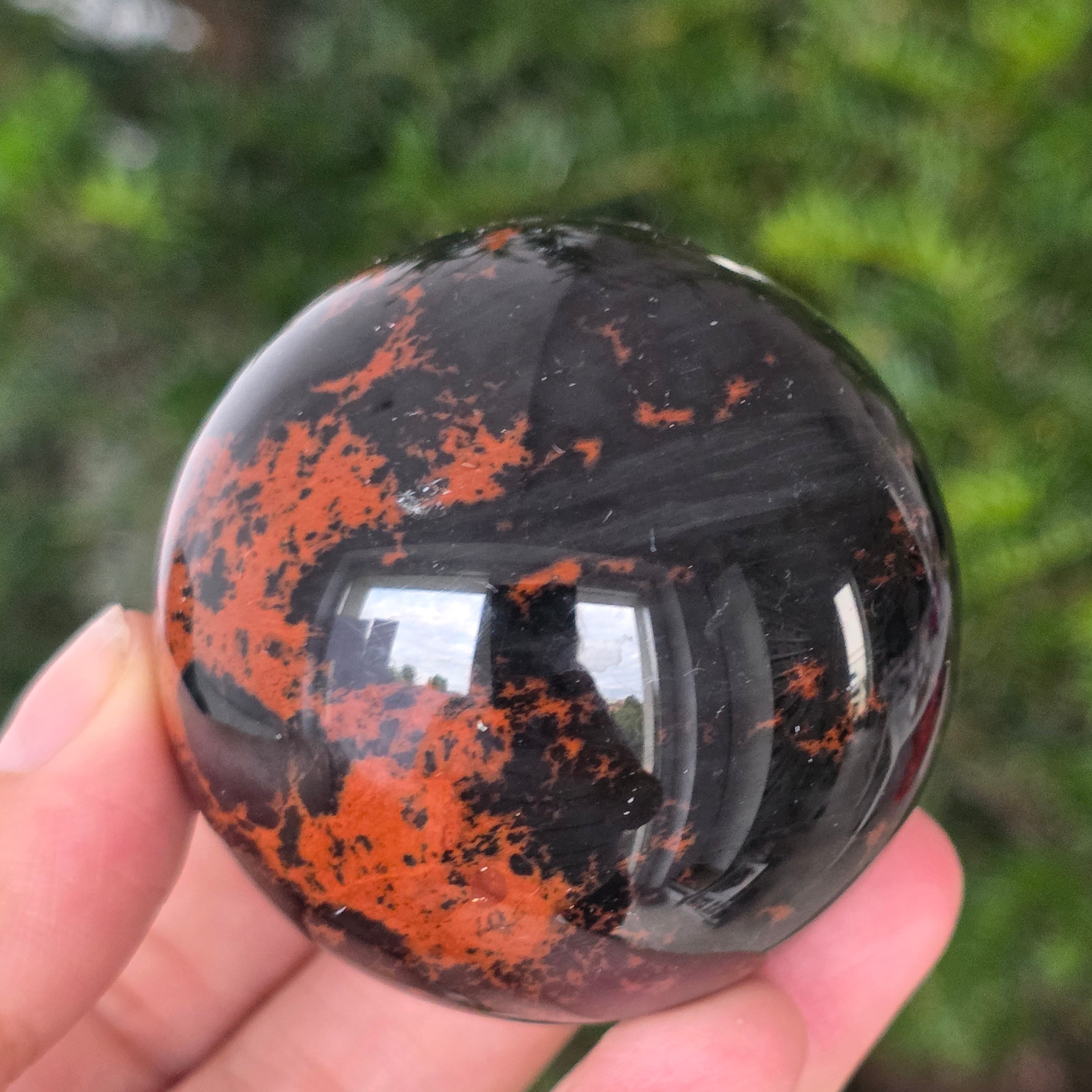 Lasă-te inspirat de forța liniștită a Pământului prin această sferă din obsidian mahon.