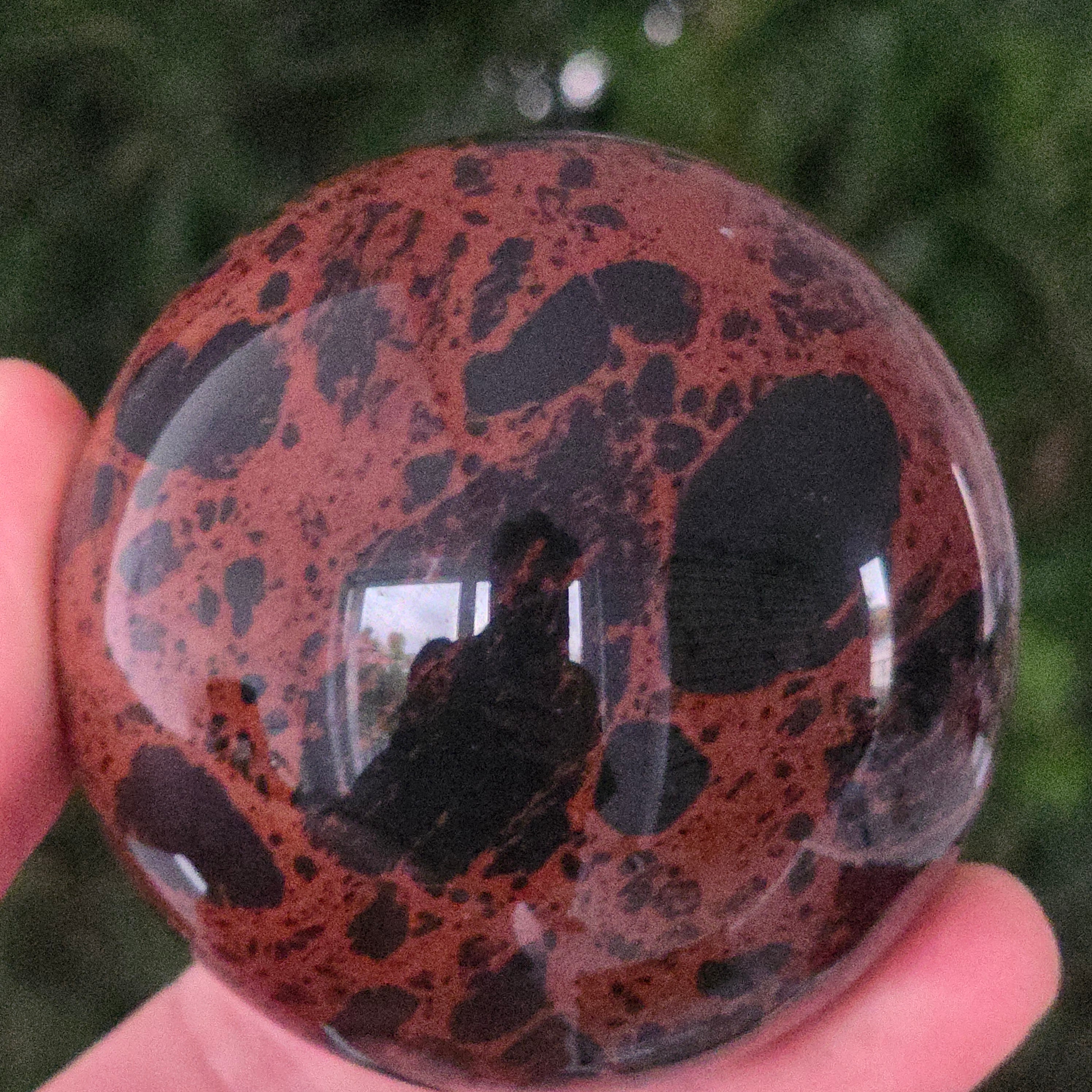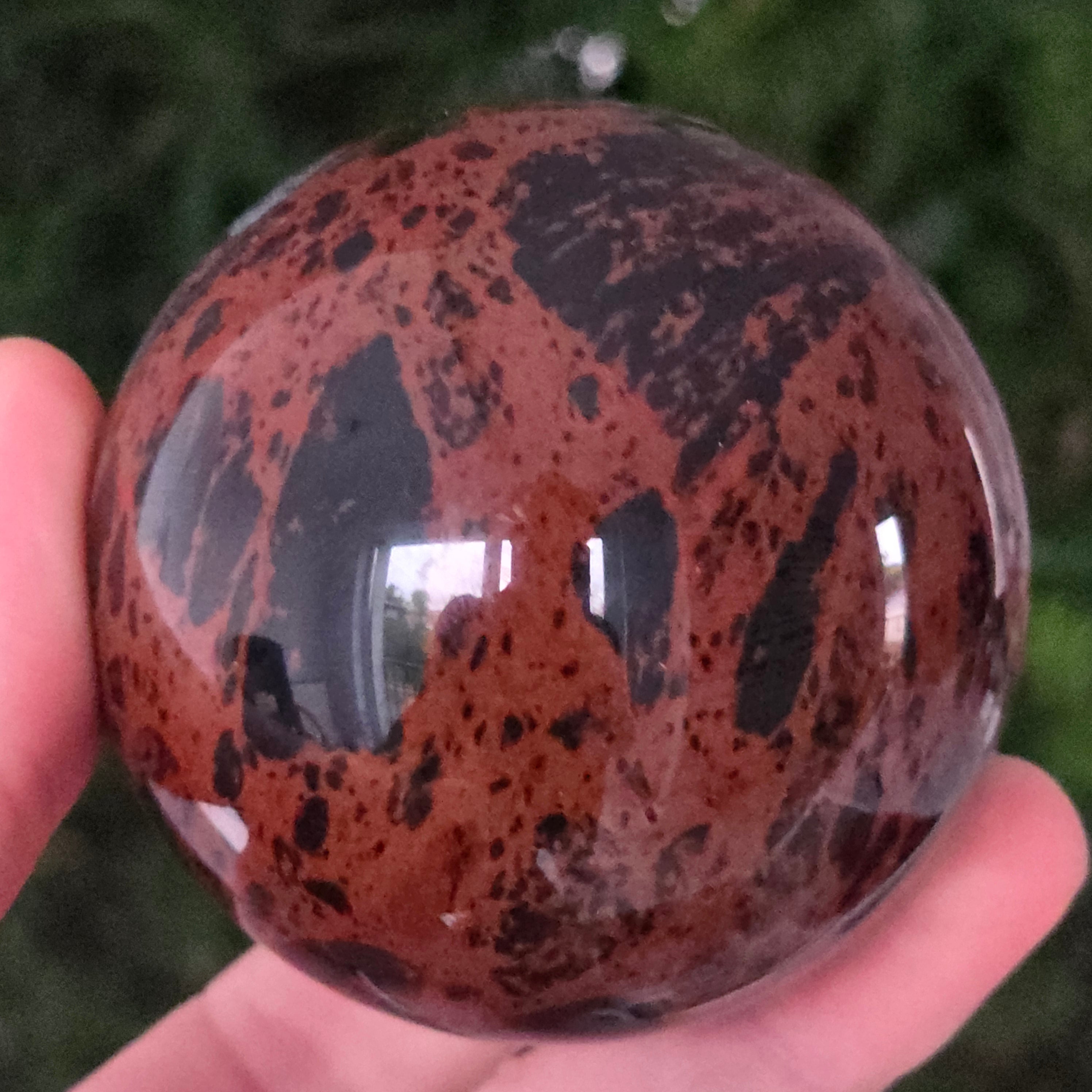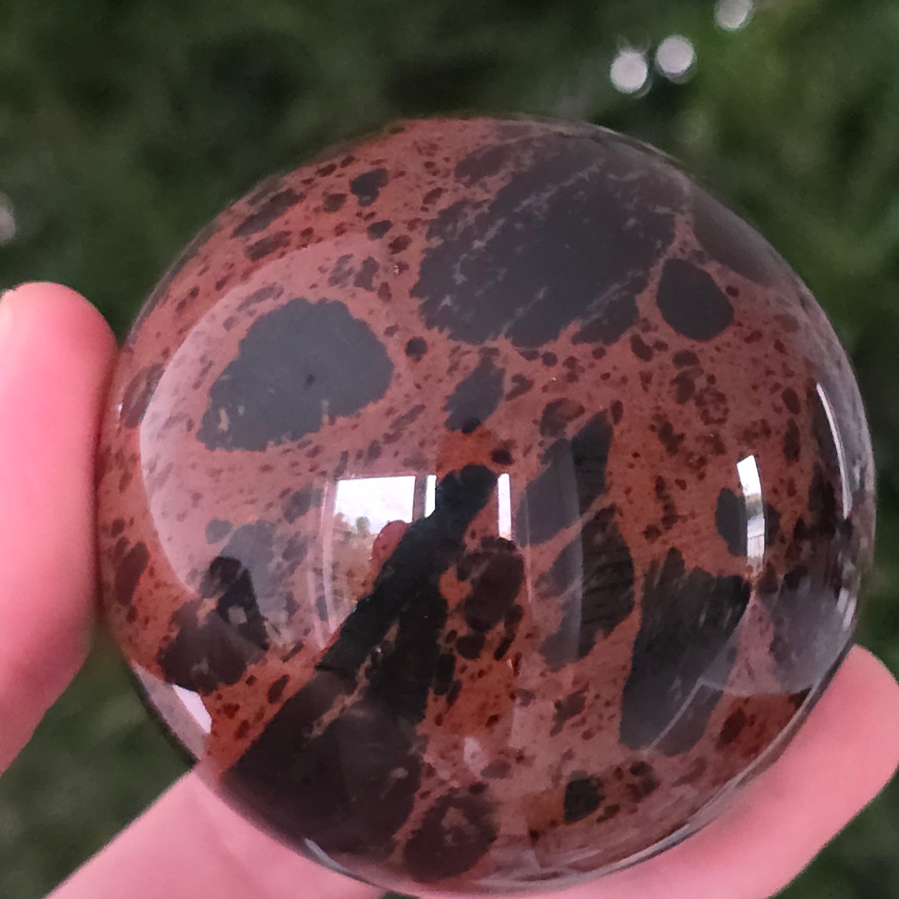 Lasă-te inspirat de forța liniștită a Pământului prin această sferă din obsidian mahon.