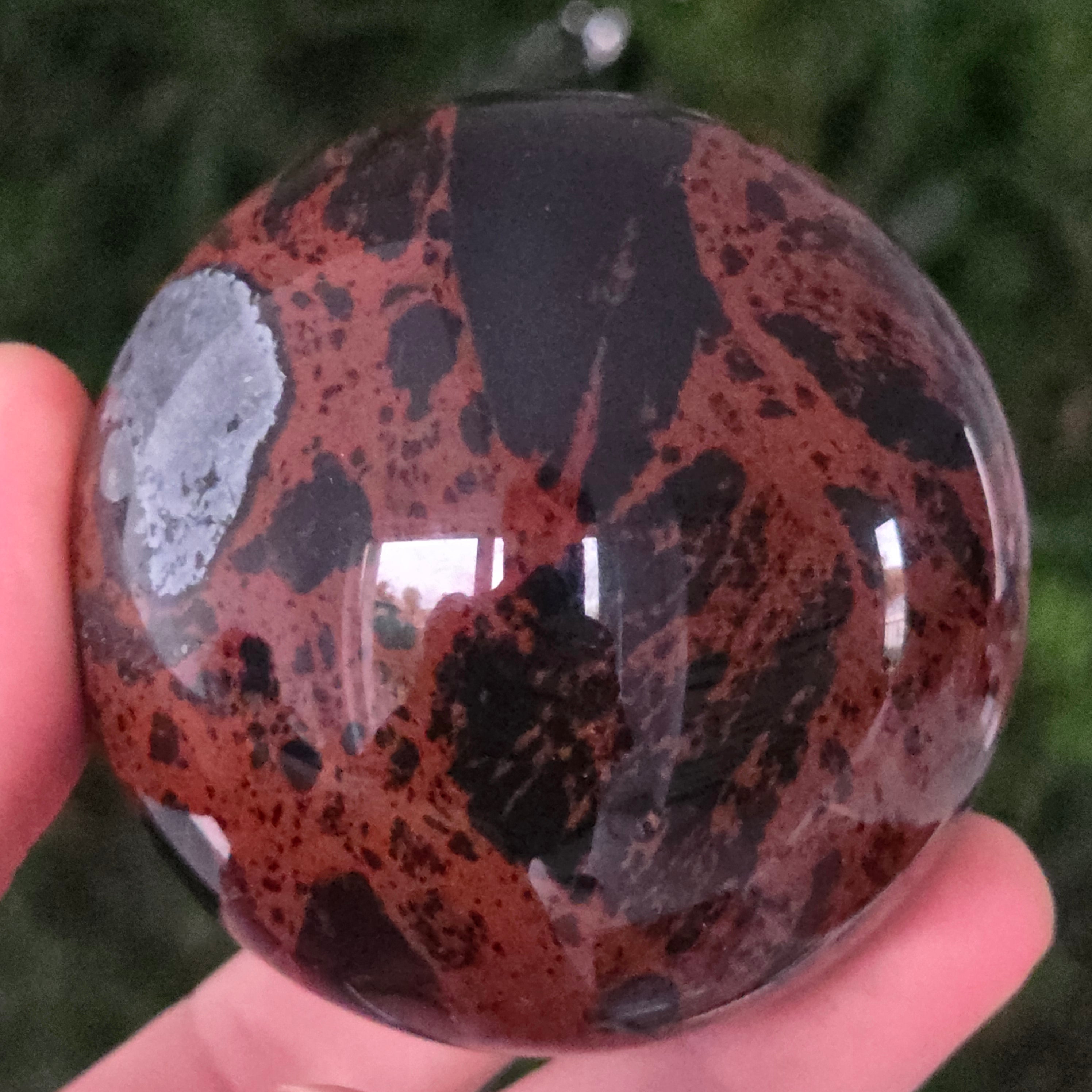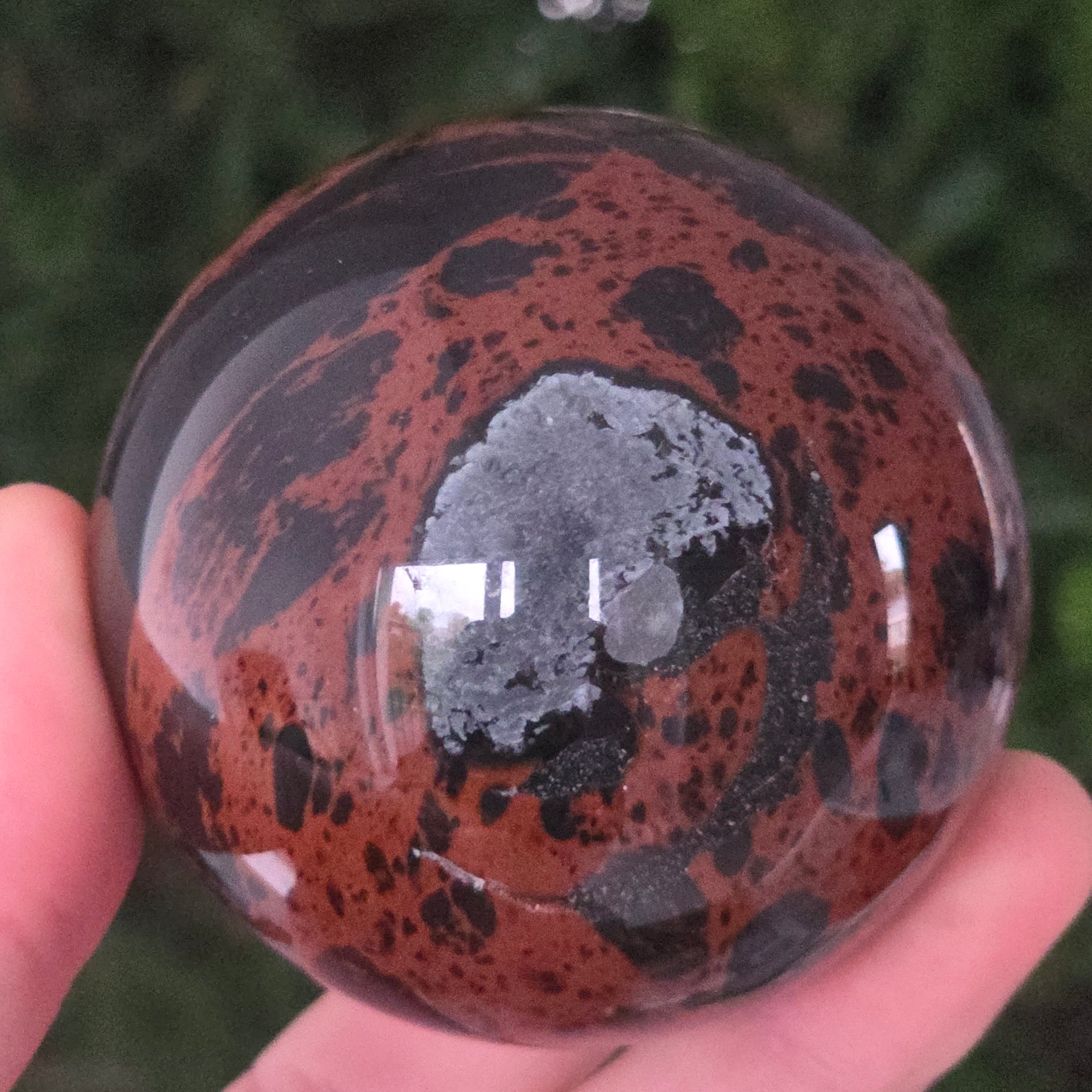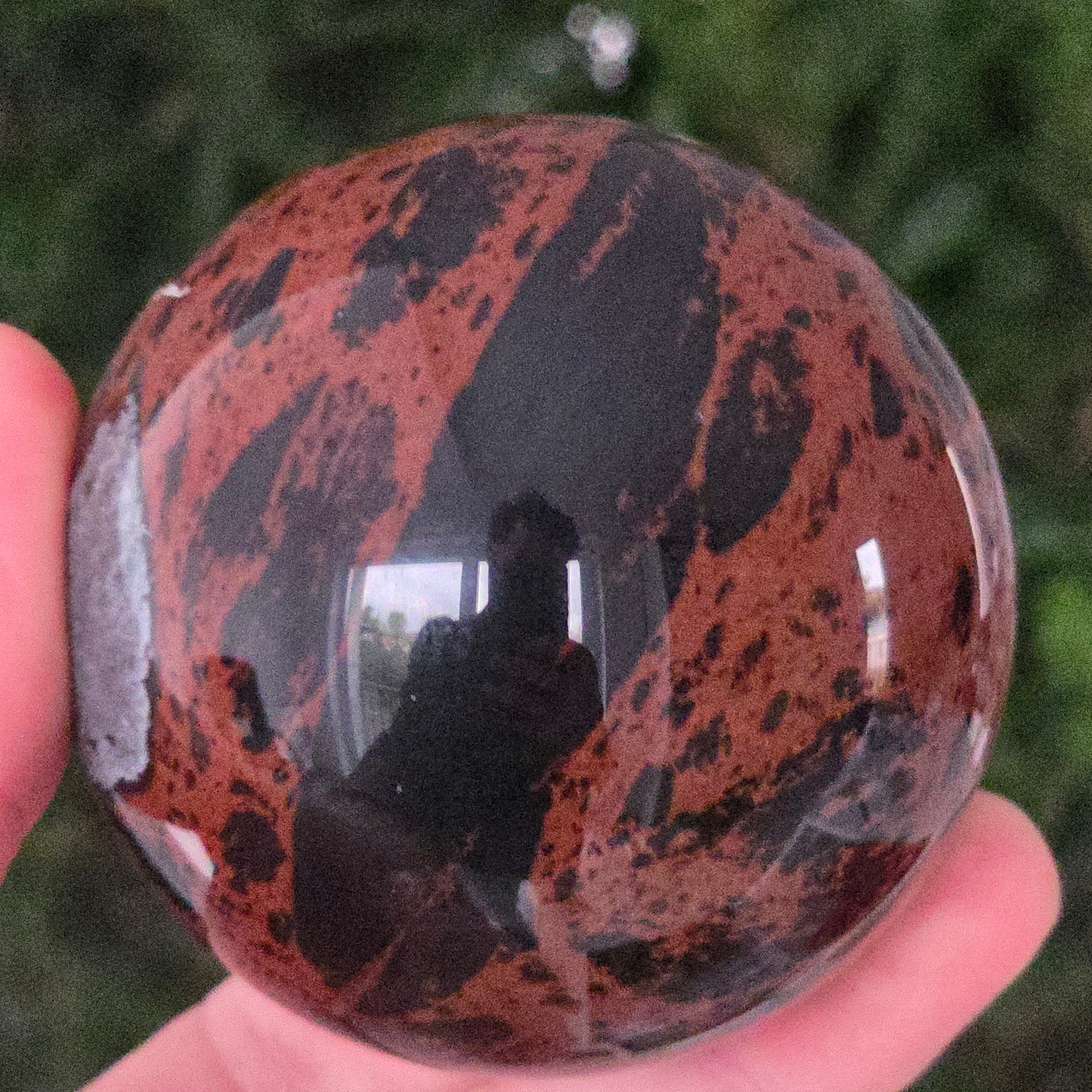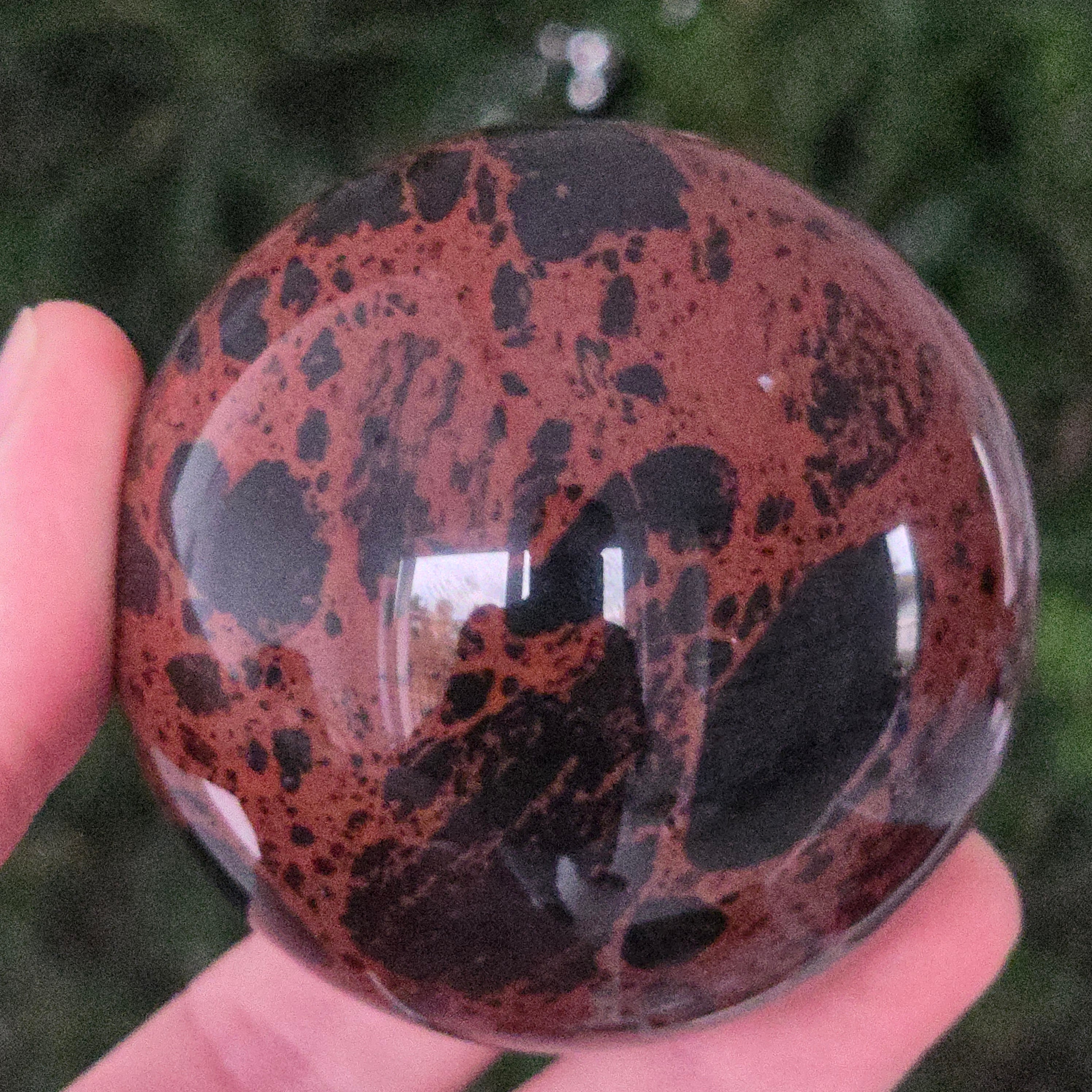 Lasă-te inspirat de forța liniștită a Pământului prin această sferă din obsidian mahon.