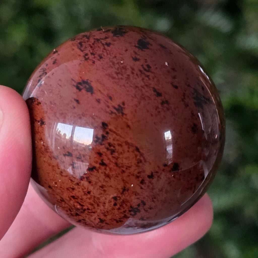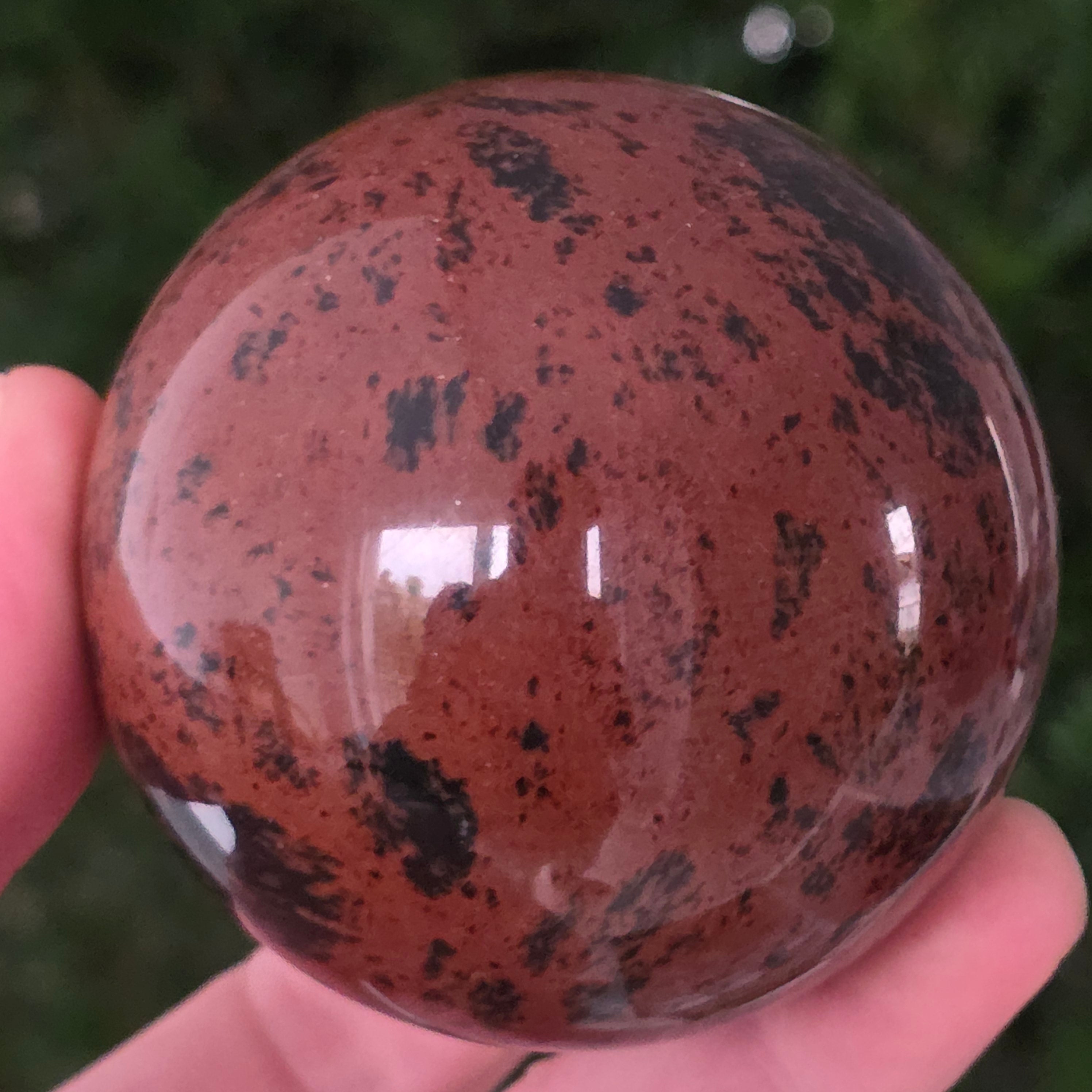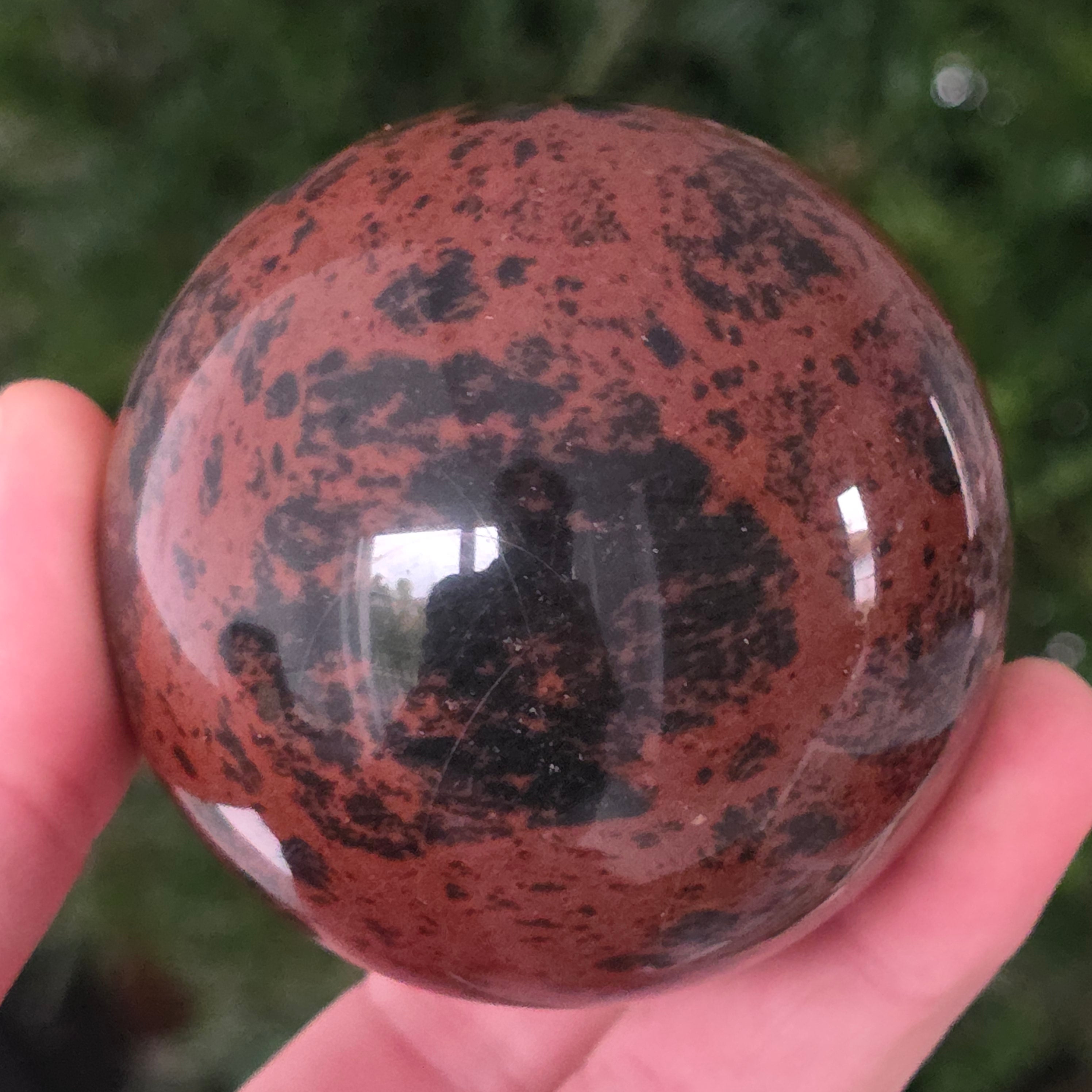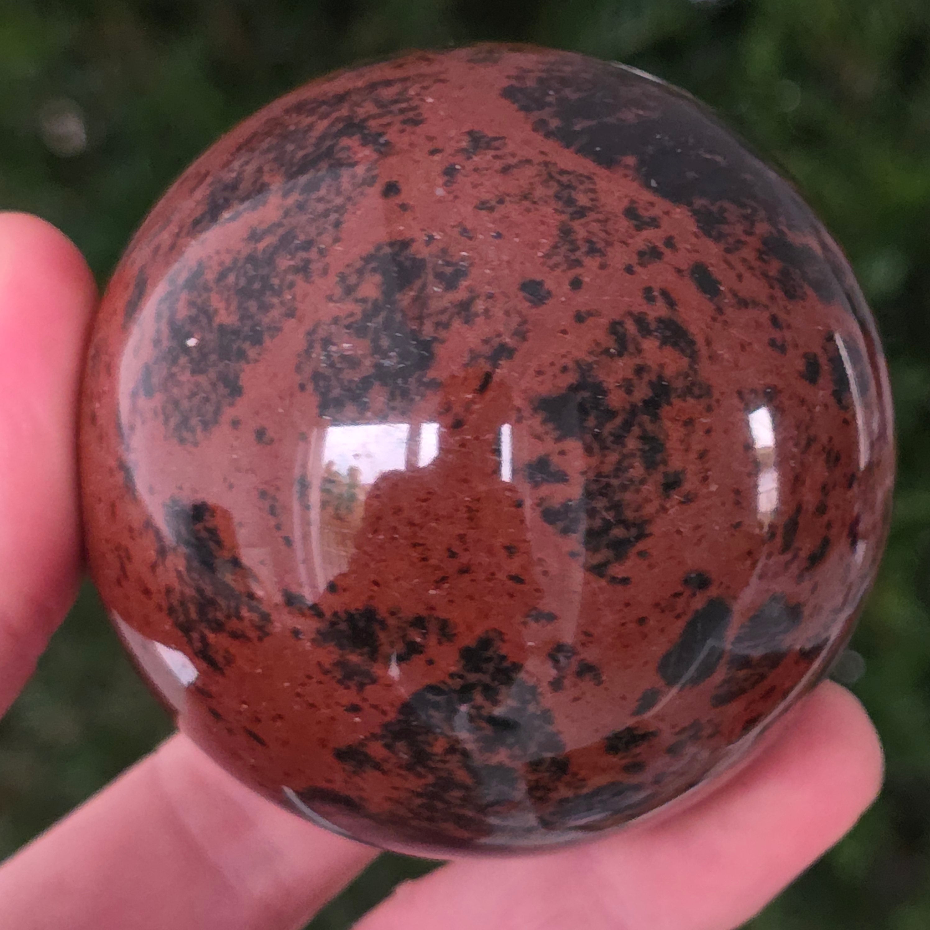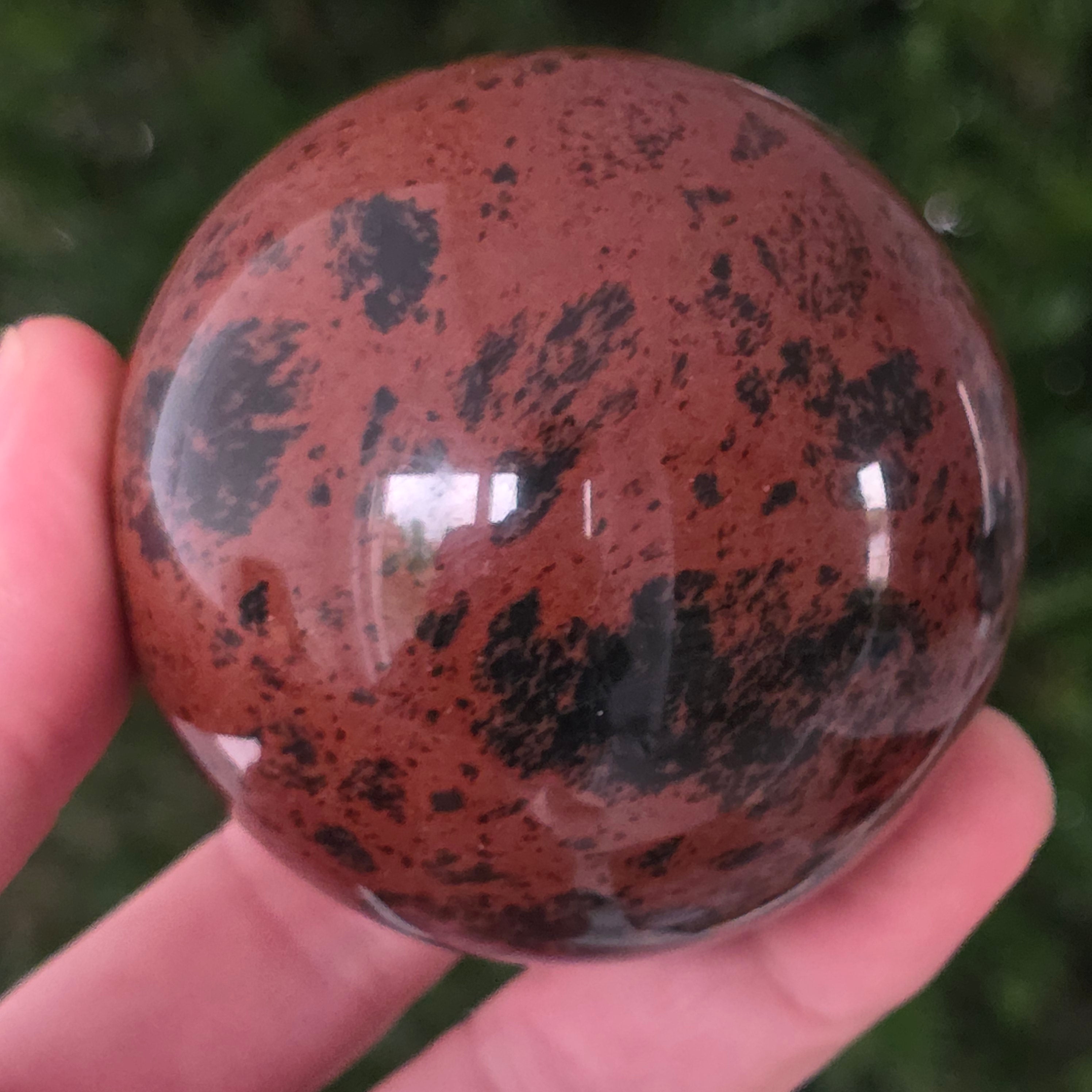 Lasă-te inspirat de forța liniștită a Pământului prin această sferă din obsidian mahon.
