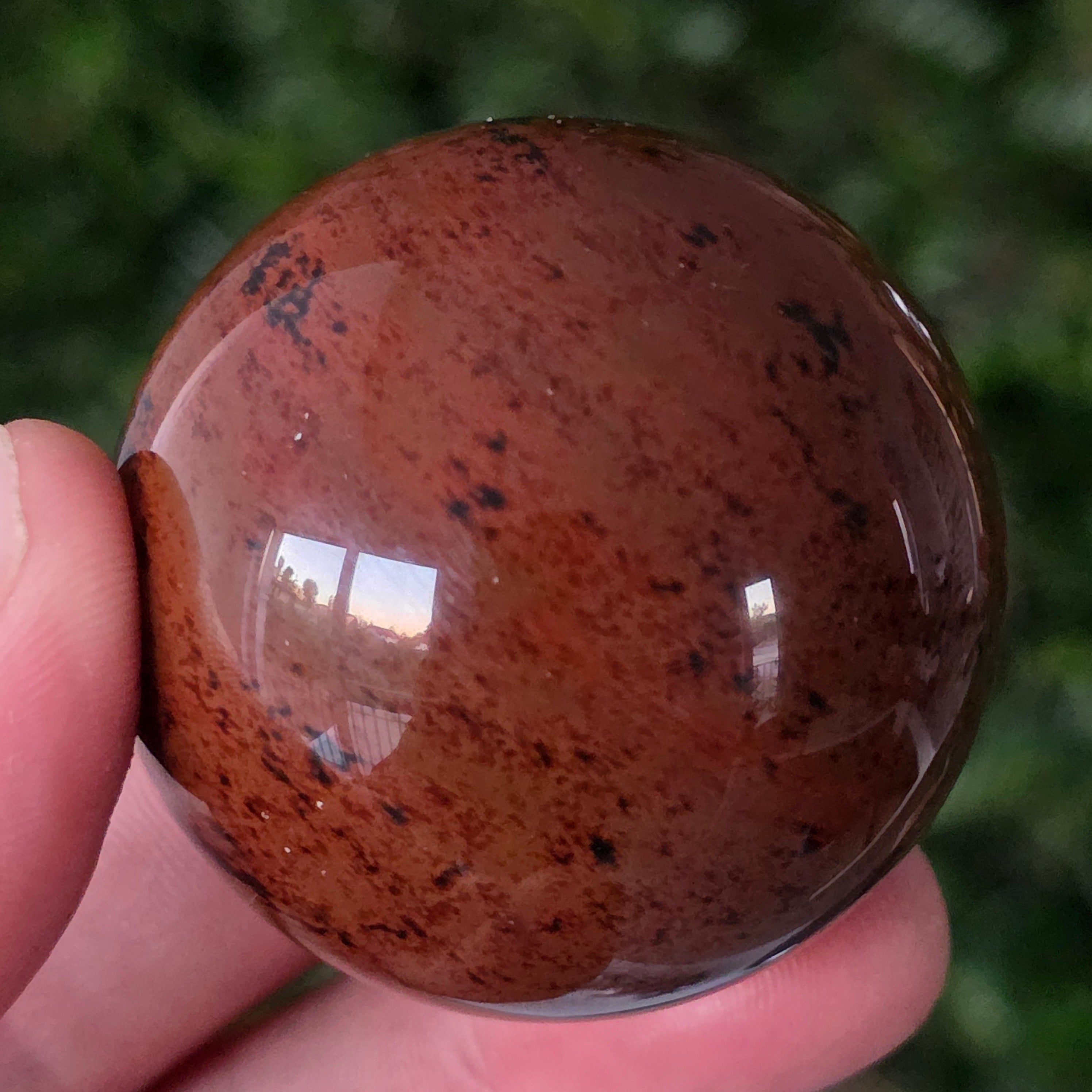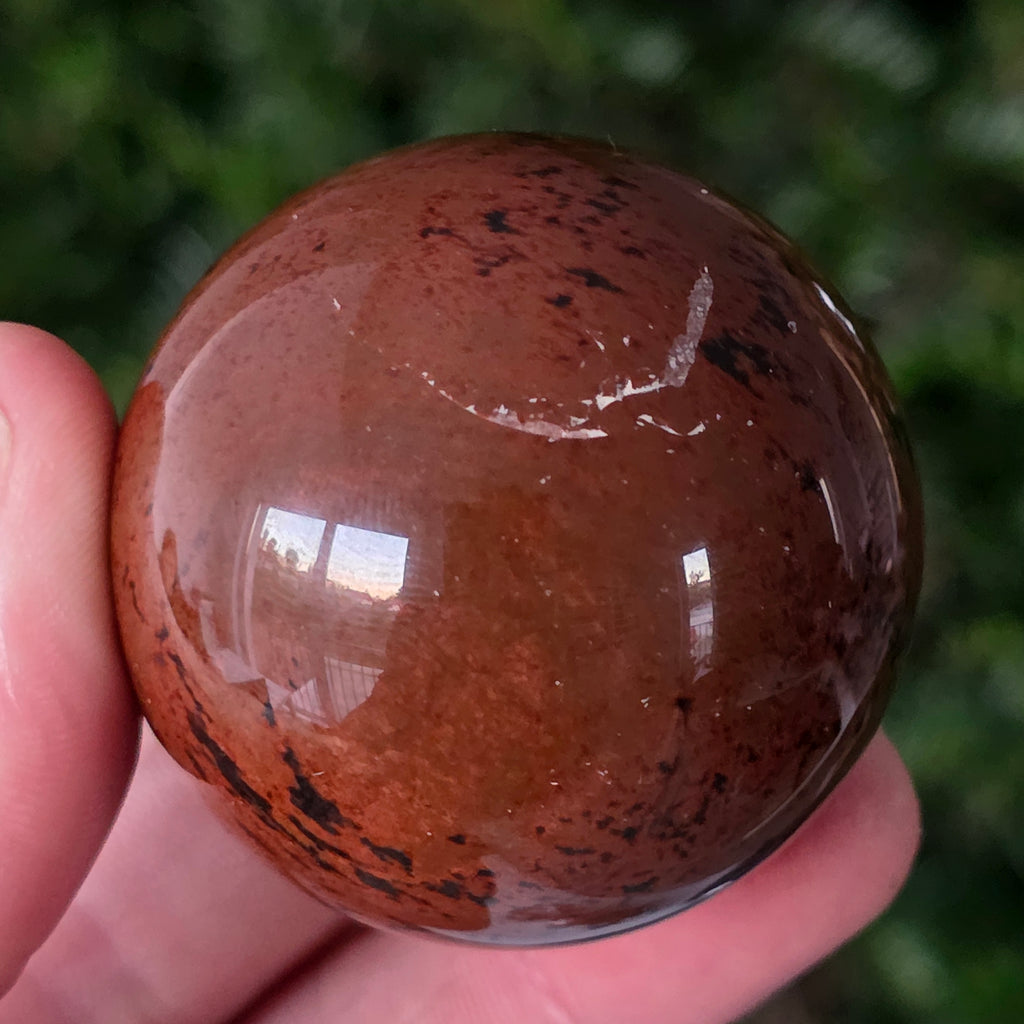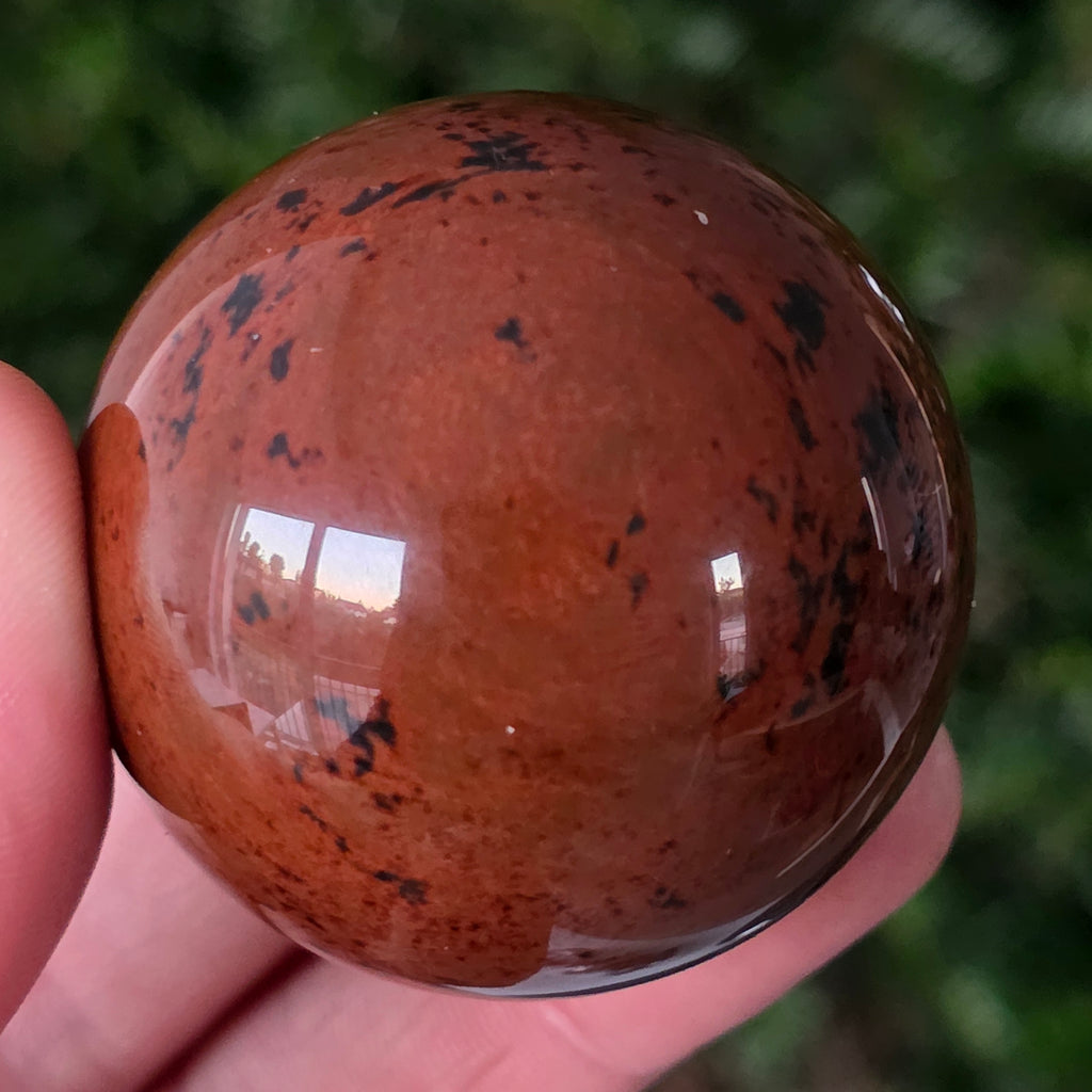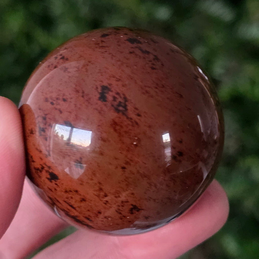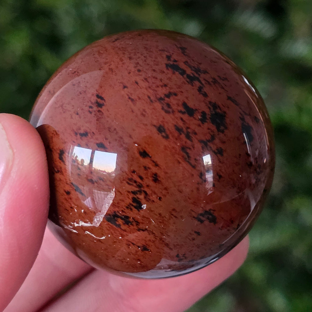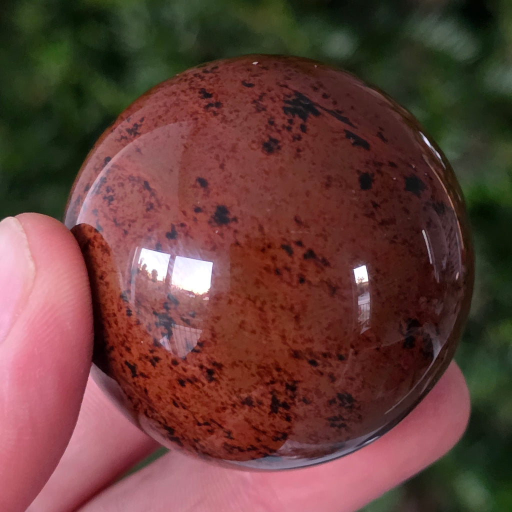 Lasă-te inspirat de forța liniștită a Pământului prin această sferă din obsidian mahon.