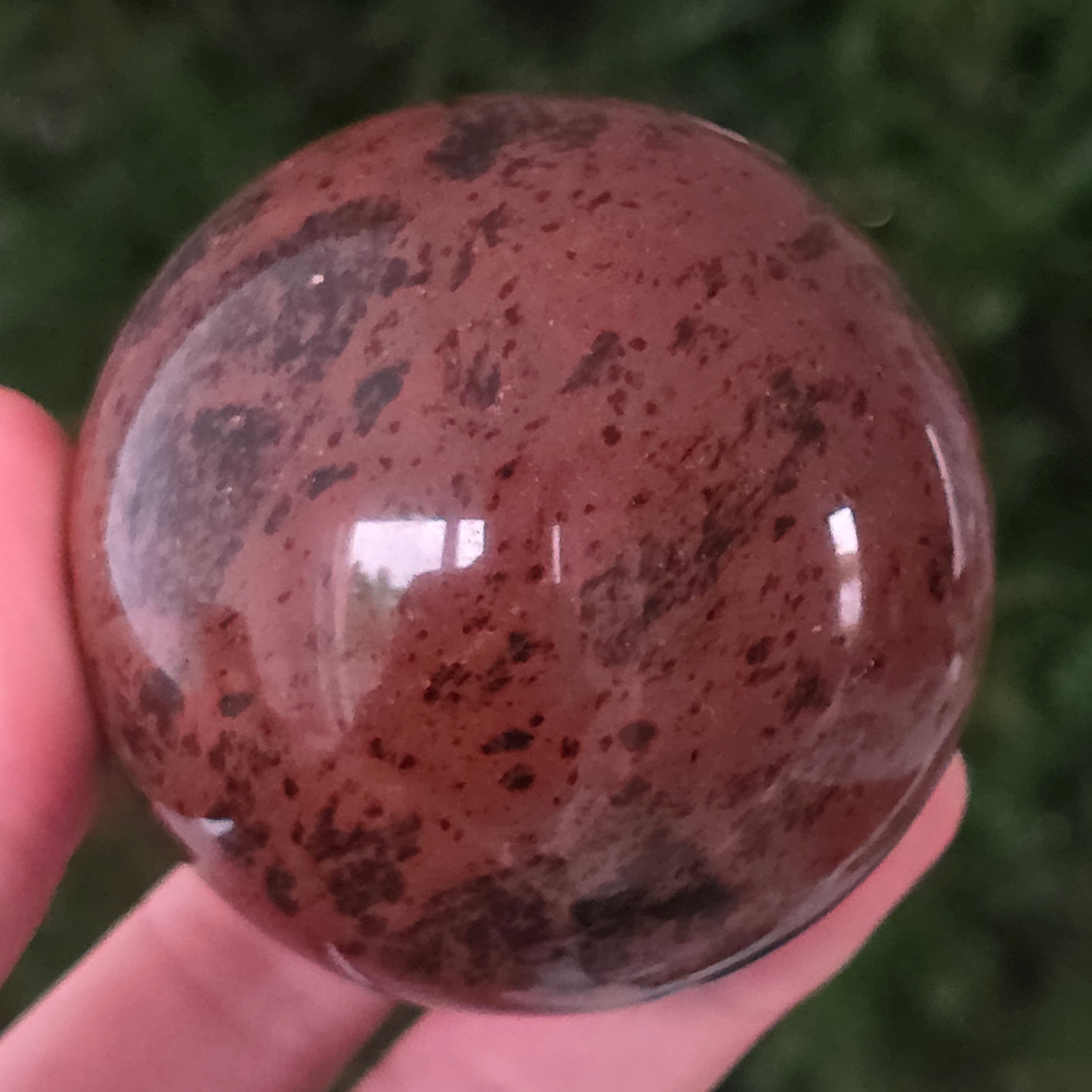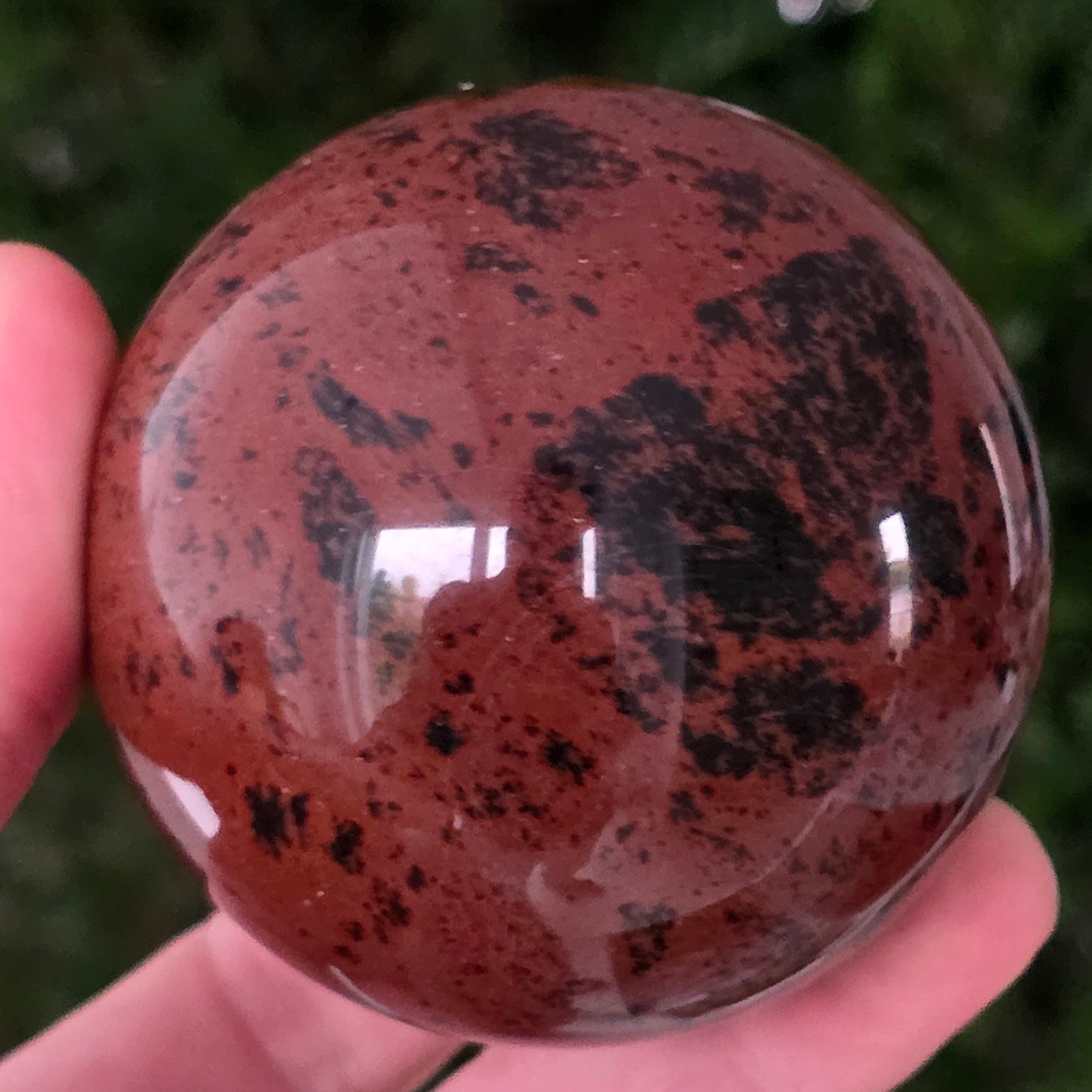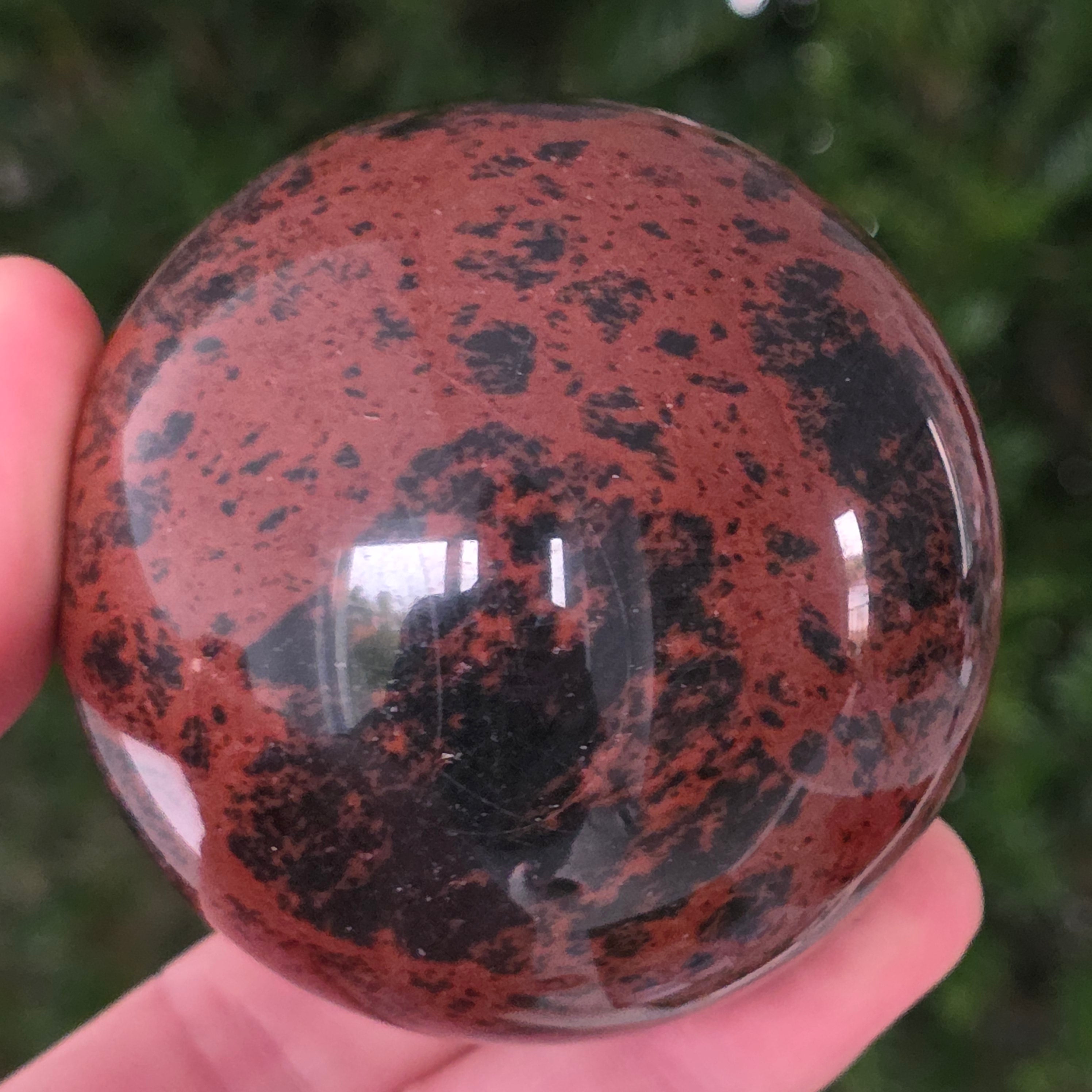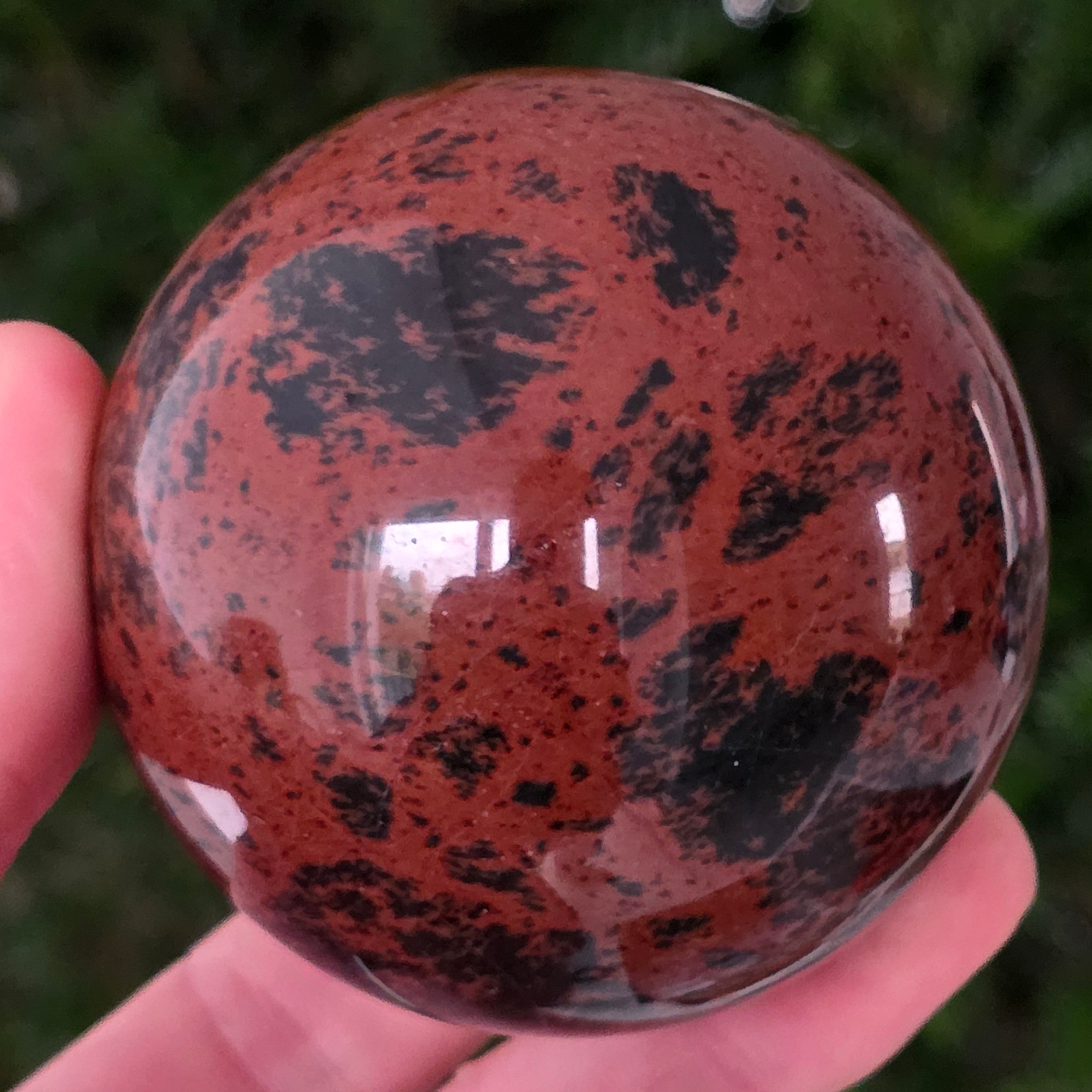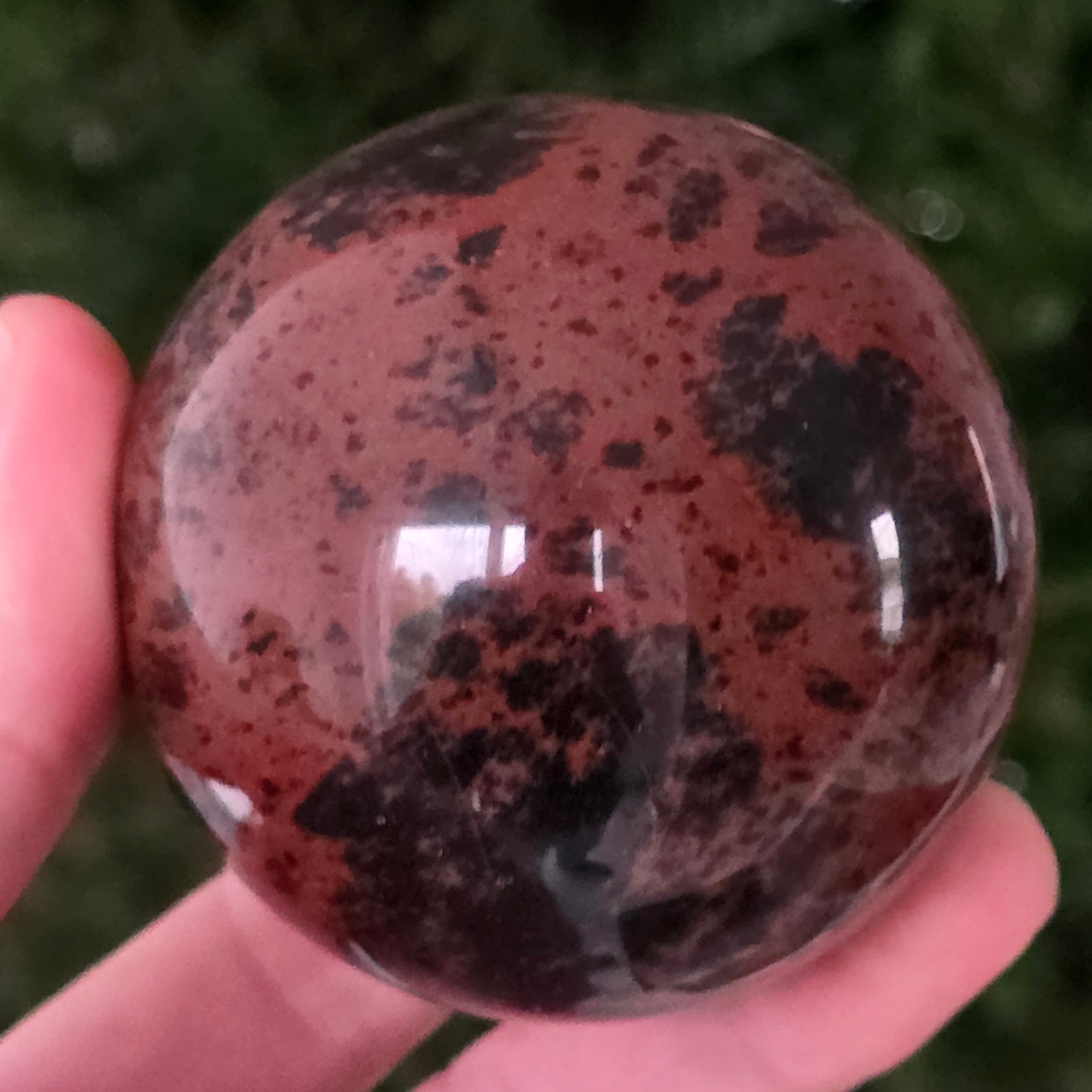 Această sferă din obsidian mahon este o întrupare a forței primordiale a Pământului — o piatră a rădăcinilor, a siguranței și a transformării interioare.