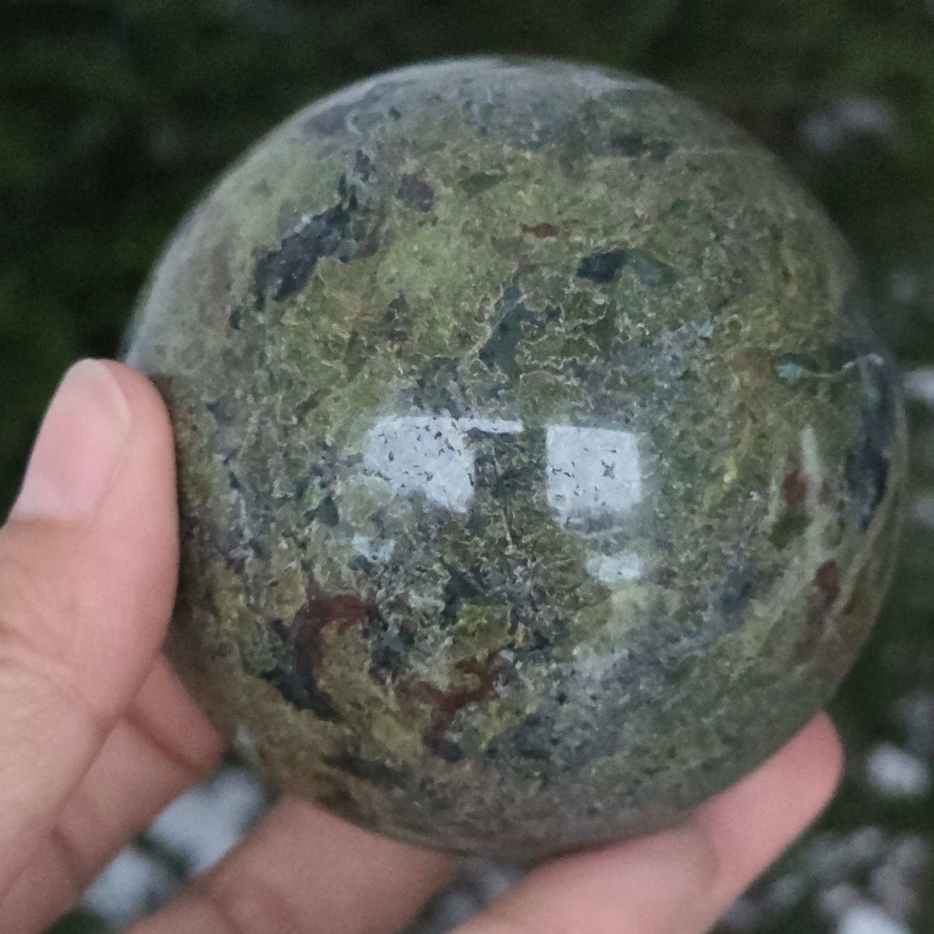 Descriere - Sfera piatra sangele dragonului (epidot&piedmontit) model 3