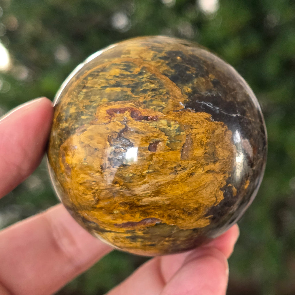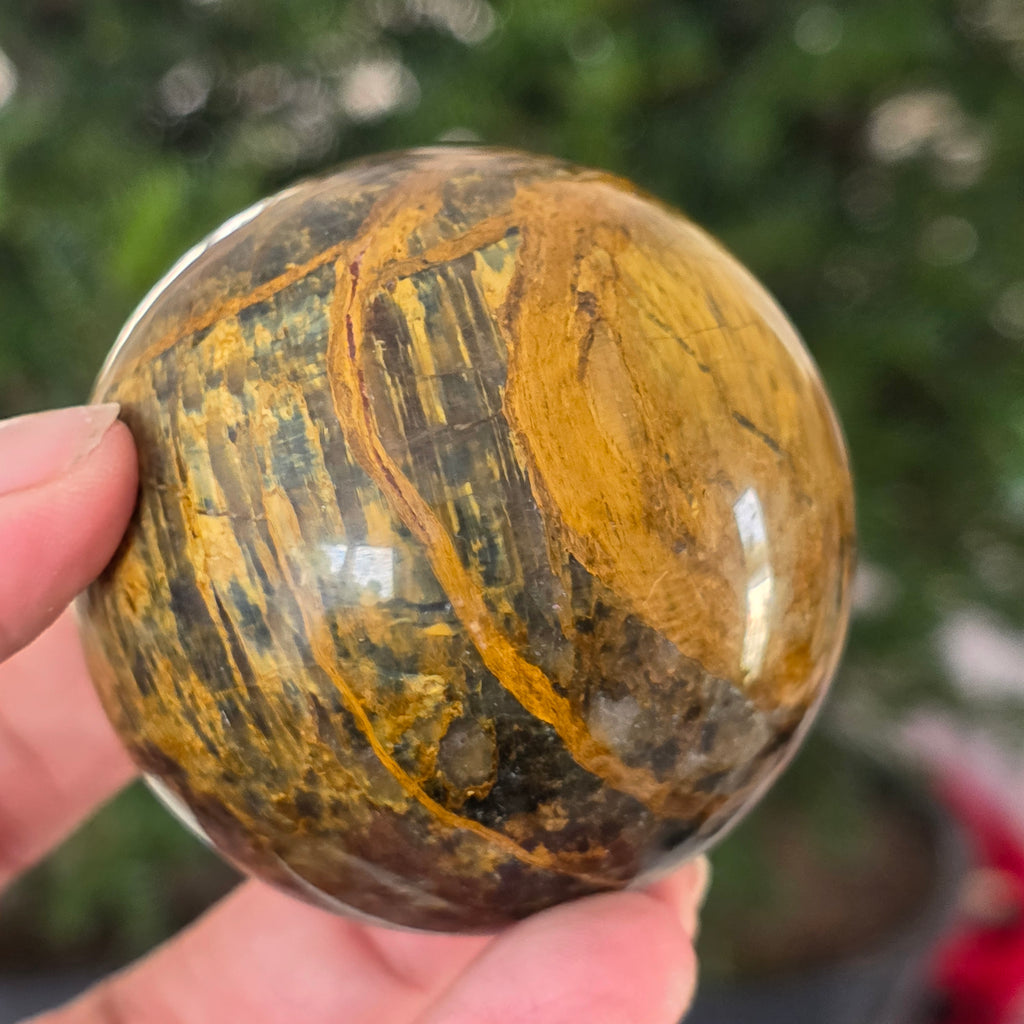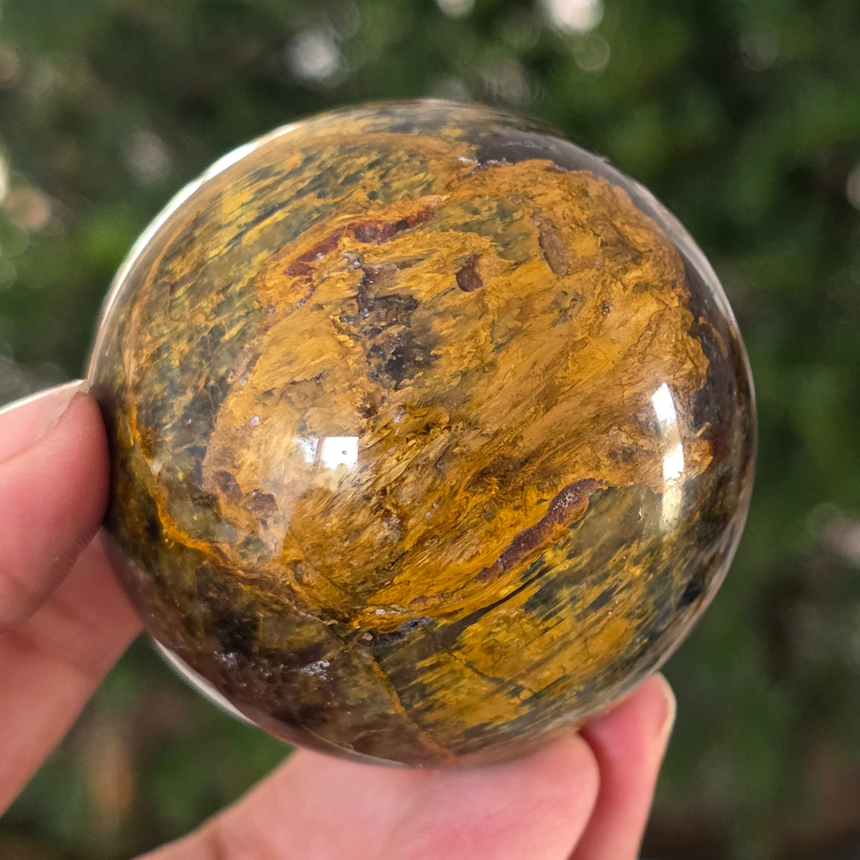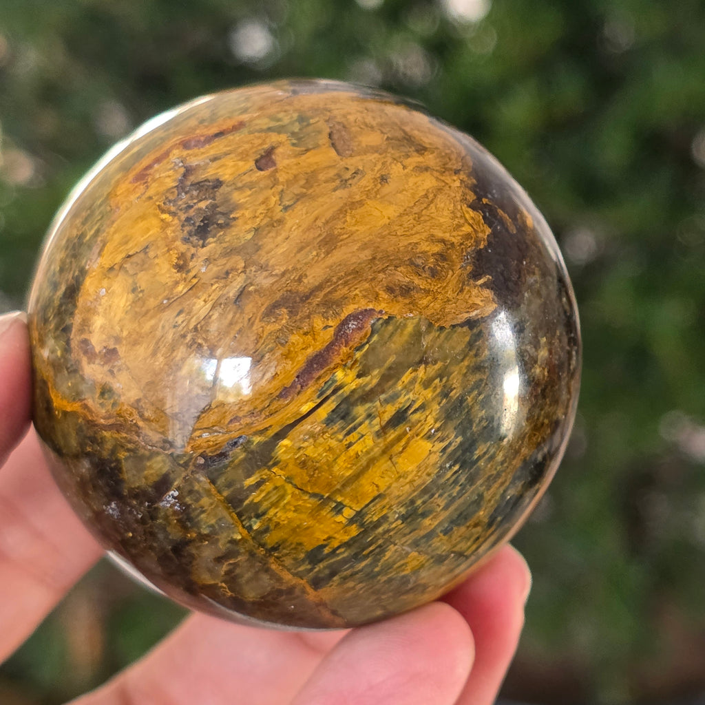 Lasă-te purtat de energia acestei sfere din Pietersit natural – un talisman al puterii interioare, al calmului în furtună și al trezirii spirituale.