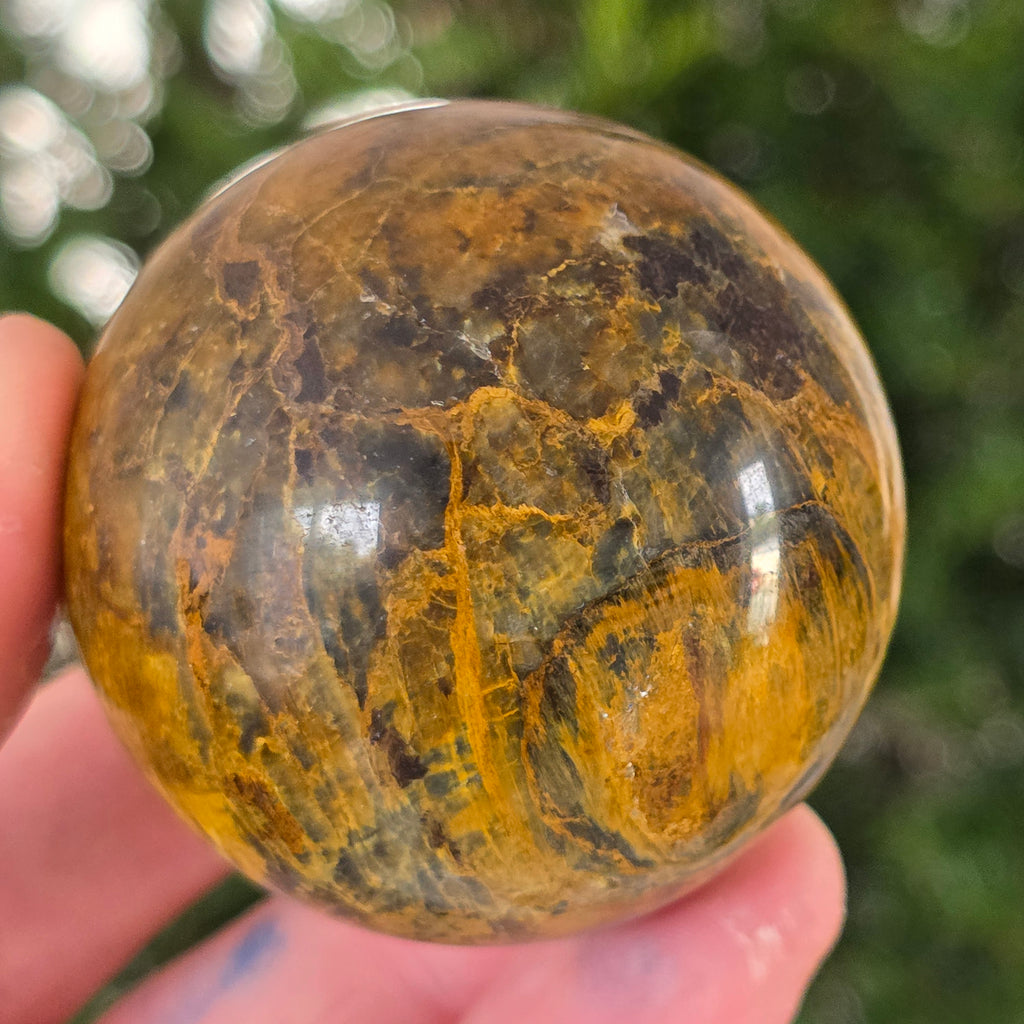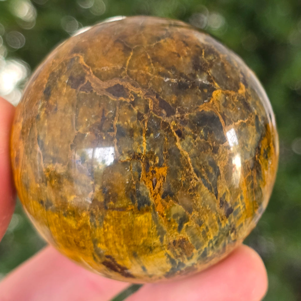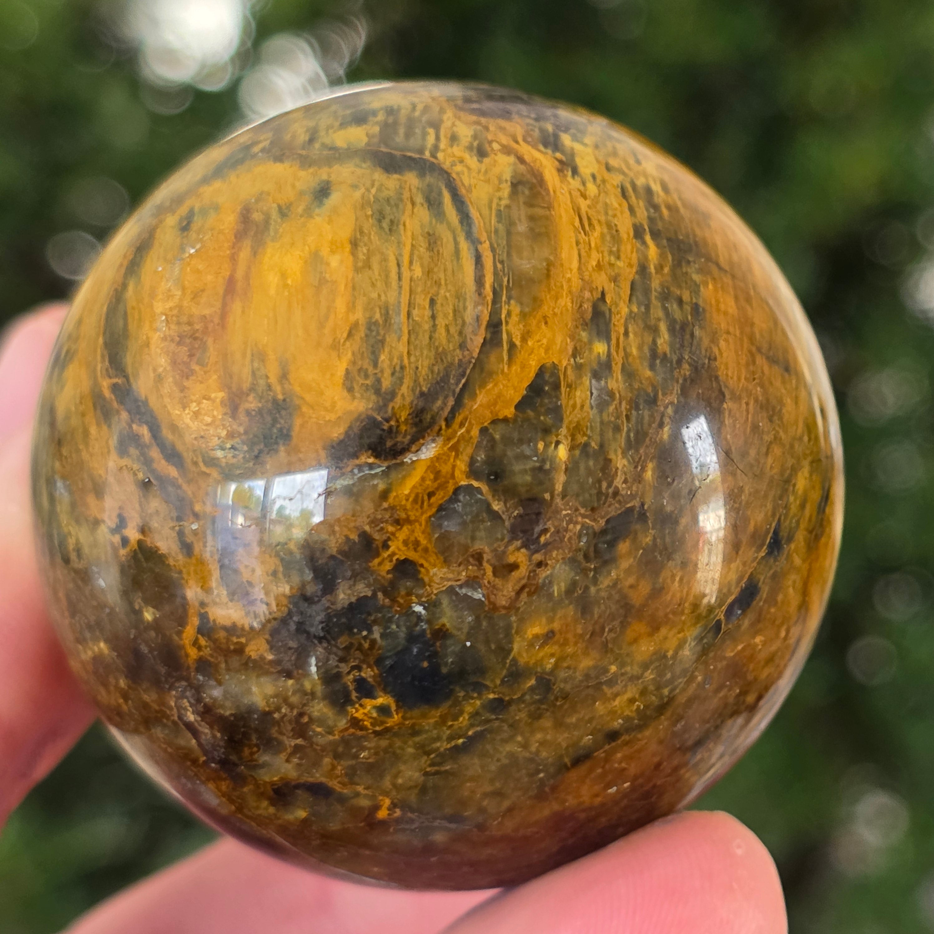 Lasă-te purtat de energia acestei sfere din Pietersit natural – un talisman al puterii interioare, al calmului în furtună și al trezirii spirituale.
