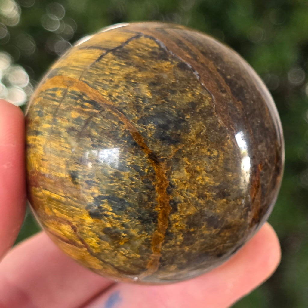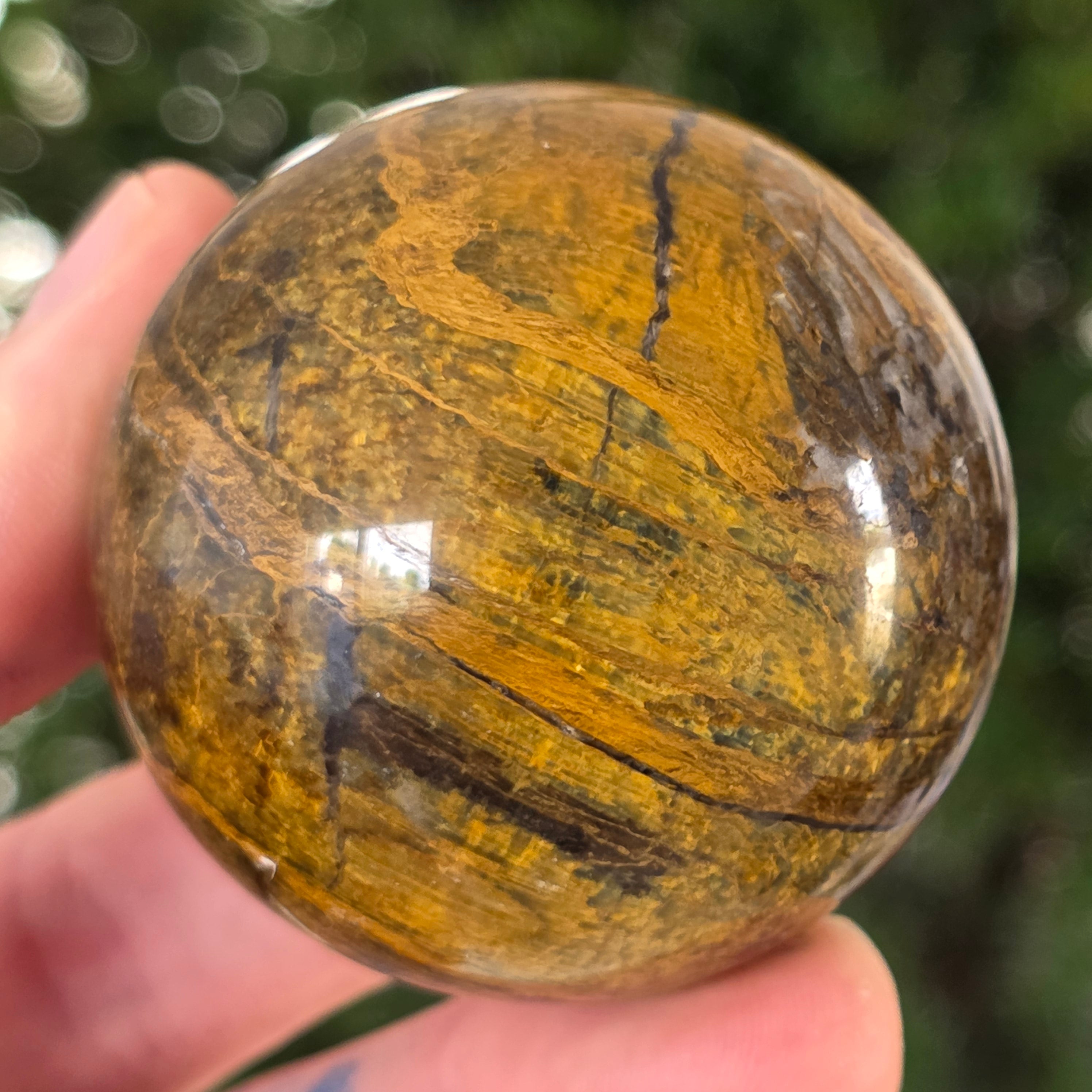 Lasă-te purtat de energia acestei sfere din Pietersit natural – un talisman al puterii interioare, al calmului în furtună și al trezirii spirituale.