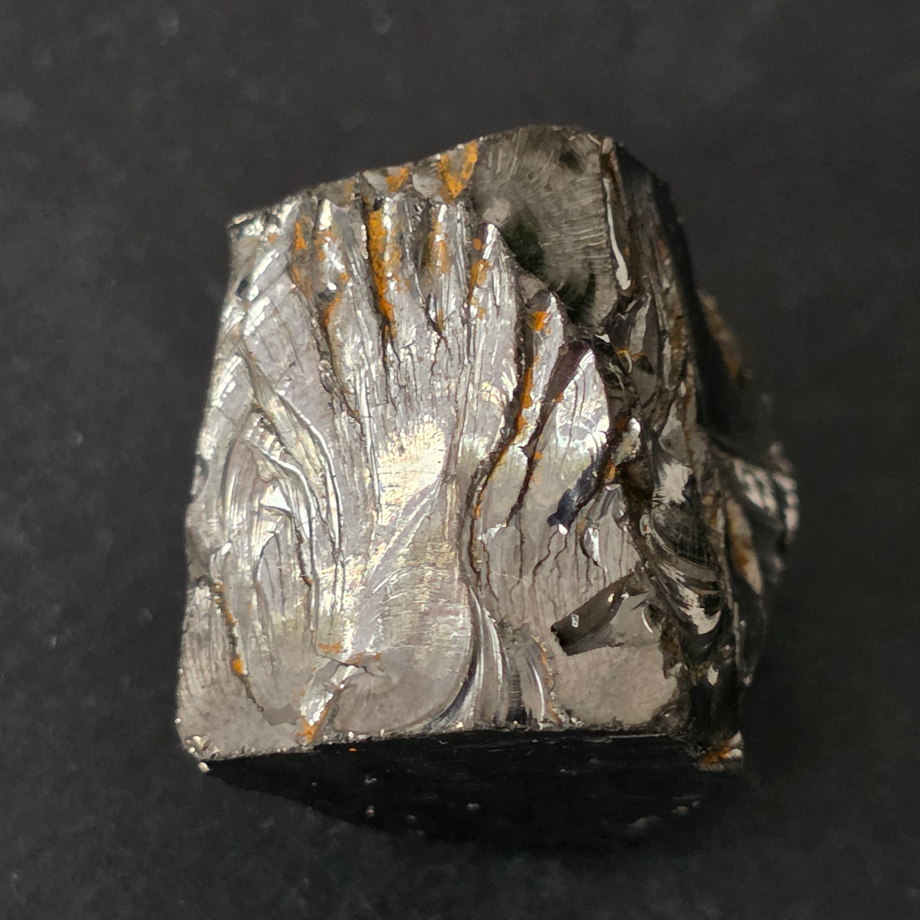 Lucirea sa metalică, intensă și argintie, poartă ecoul unei lumi primordiale, în care materia pură vibra în armonie cu viața.