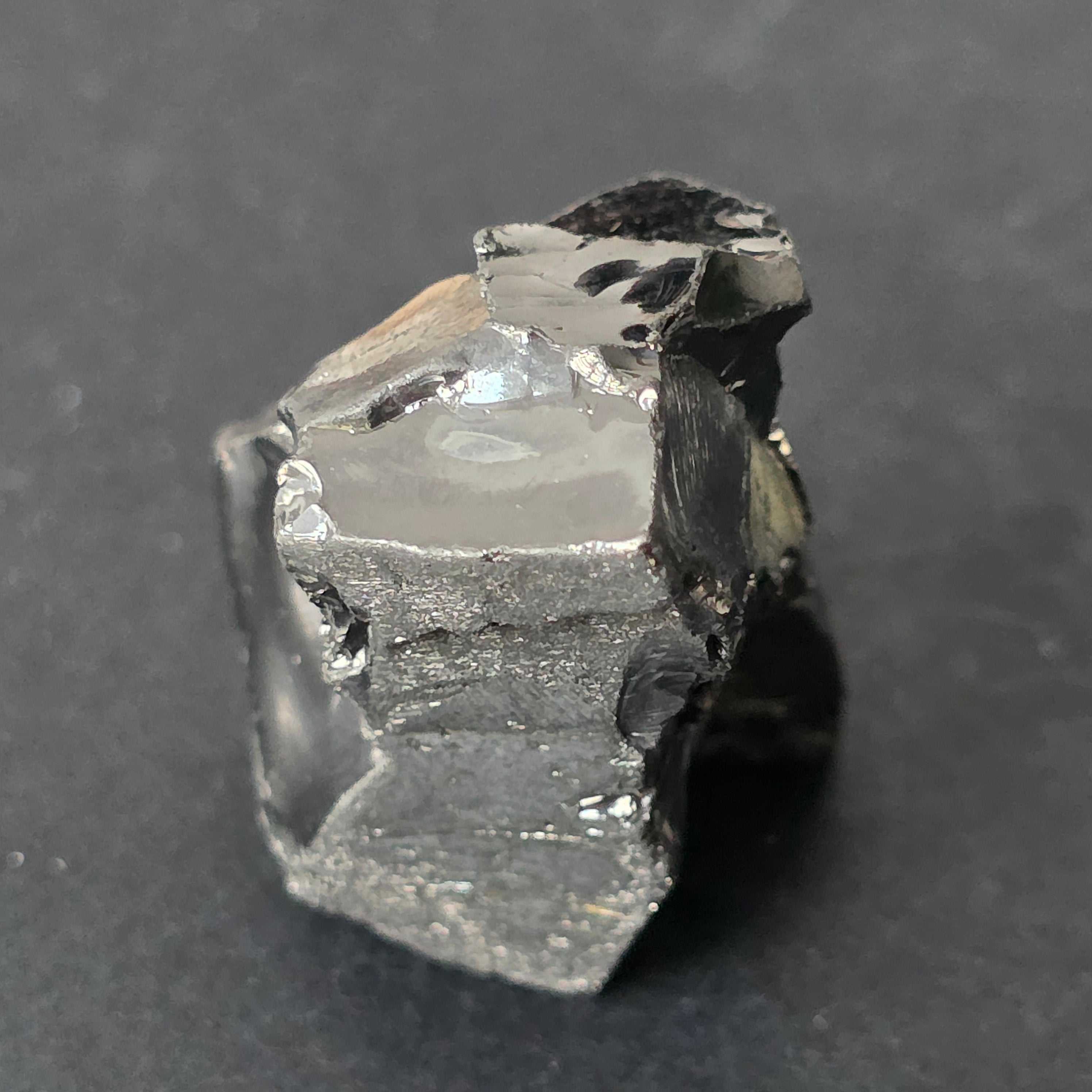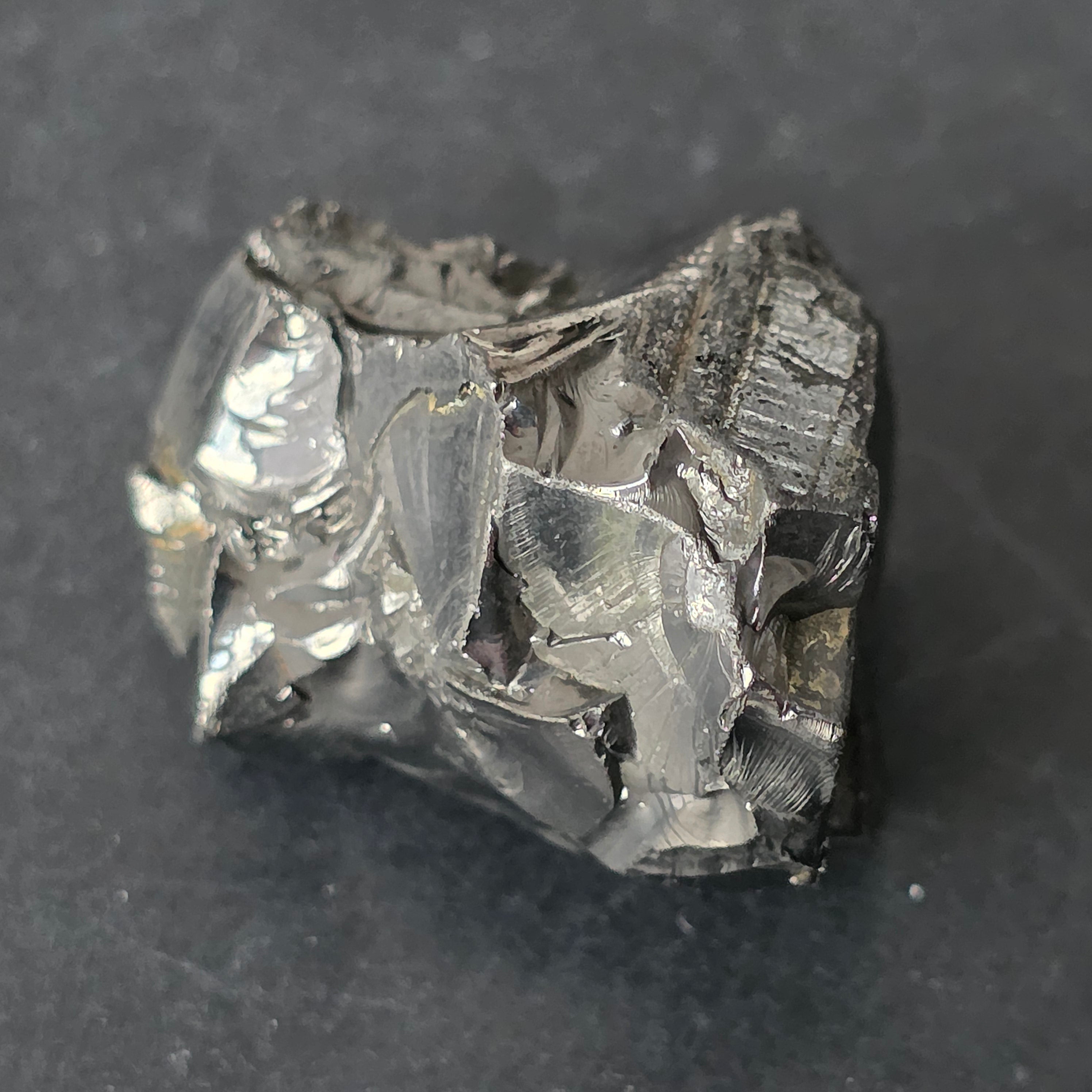 Lucirea sa metalică, intensă și argintie, poartă ecoul unei lumi primordiale, în care materia pură vibra în armonie cu viața.