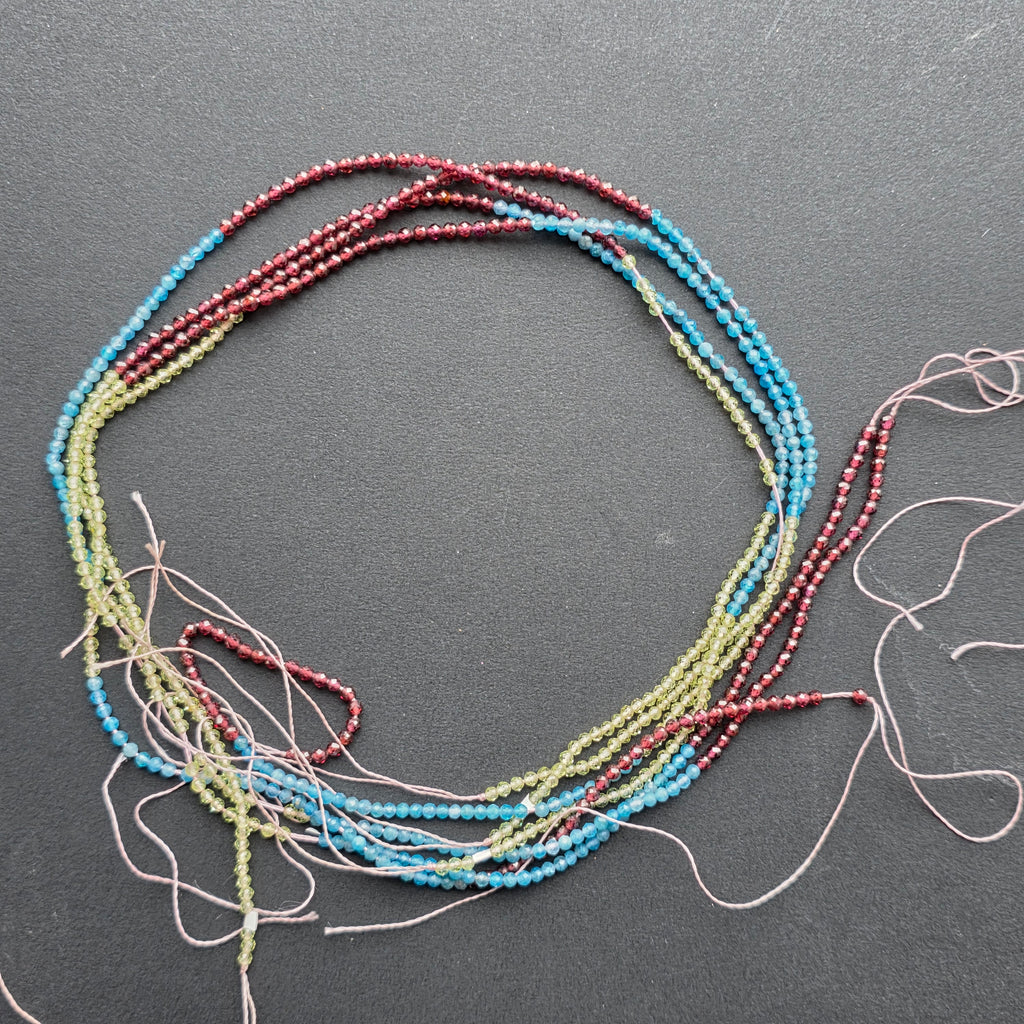 Sirag margele fatetate pietre semipretioase mix PERIDOT, APATIT, GRANAT