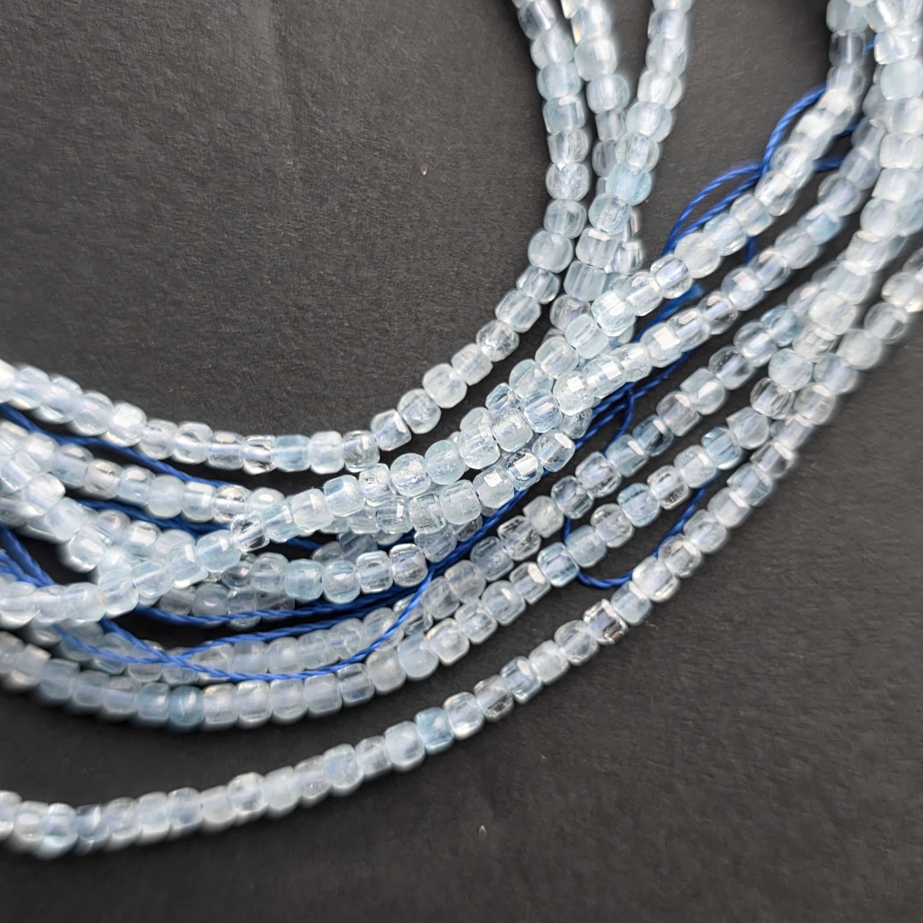 Sirag de ACVAMARIN, alcătuit din cuburi fatetate naturale, perfect pentru coliere, brățări sau alte bijuterii handmade.