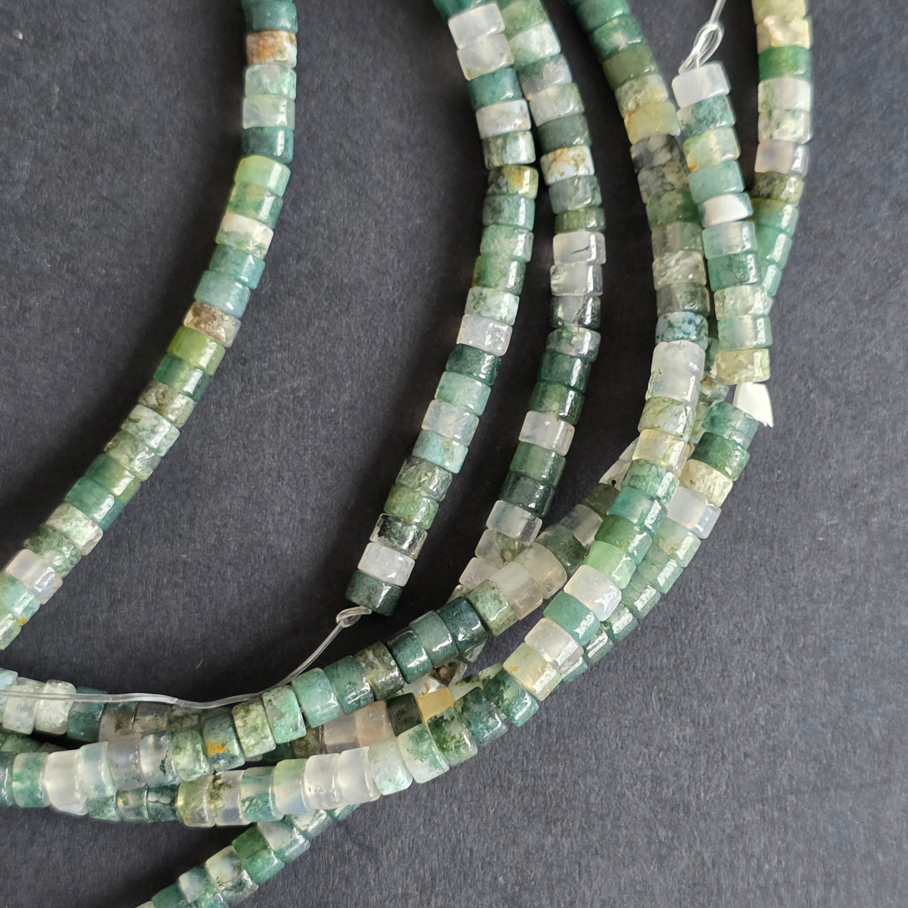 Sirag de AGAT MOSS, alcătuit din discuri naturale, perfect pentru coliere, brățări sau alte bijuterii handmade.