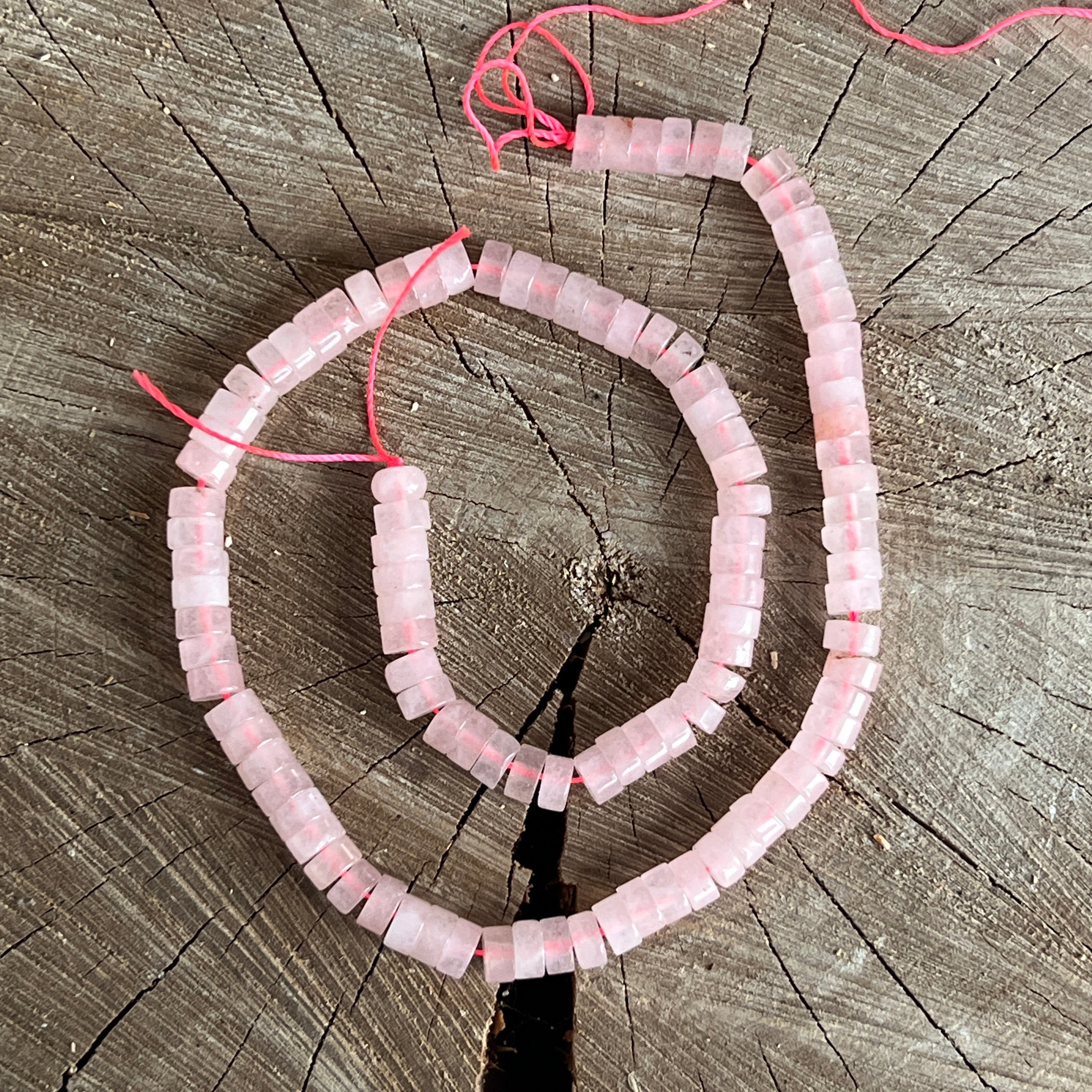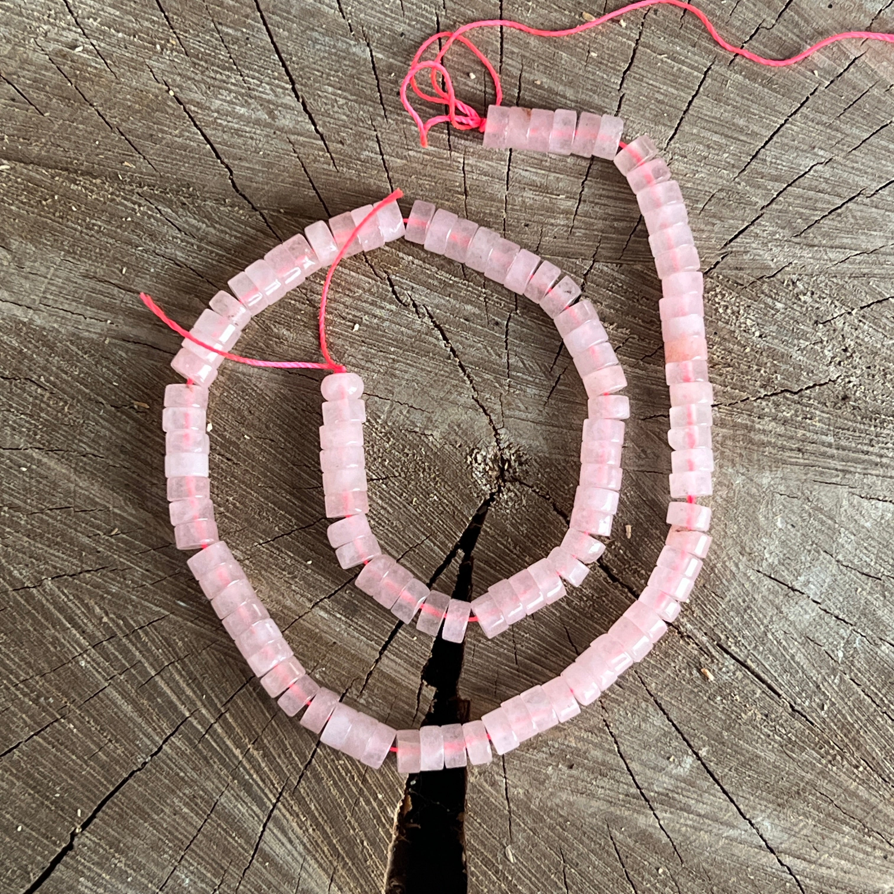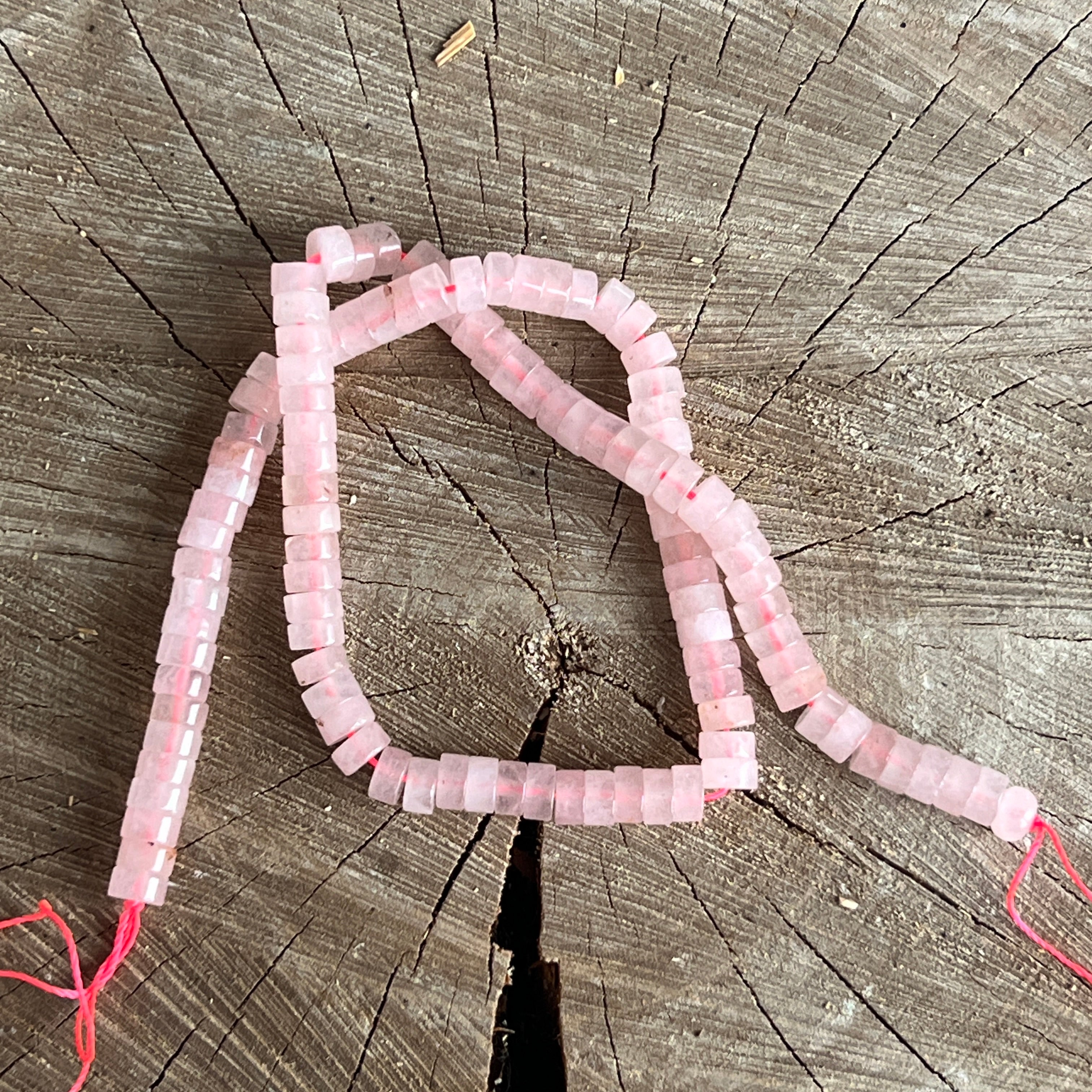 Sirag de discuri cuart roz, alcătuit din discuri naturale, perfect pentru coliere, brățări sau alte bijuterii handmade.
