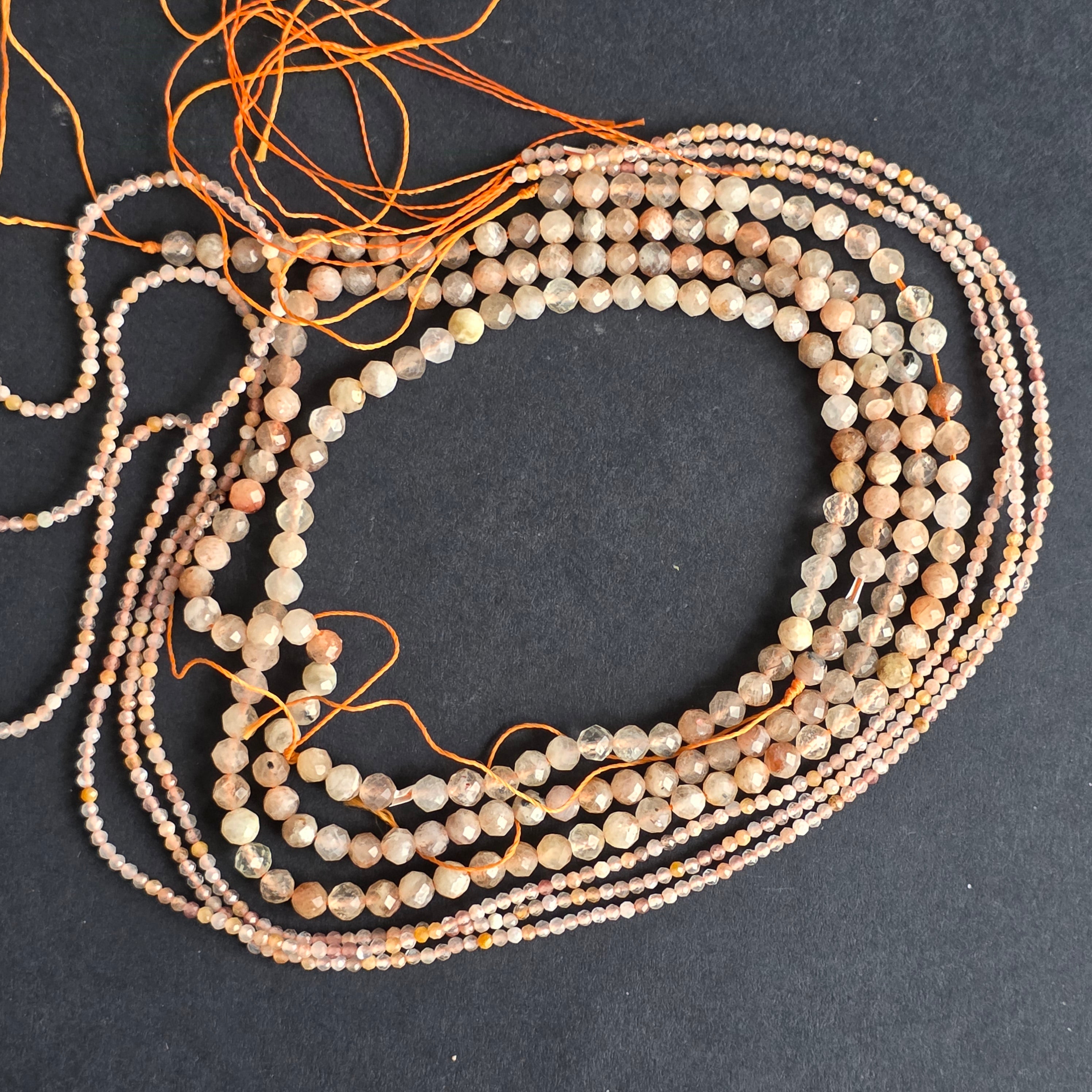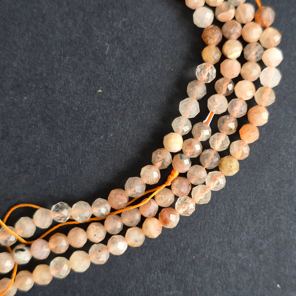 Șirag de PIATRA SOARELUI alcătuit din mărgele fatetate sferice naturale, perfect pentru coliere, brățări sau alte bijuterii handmade.