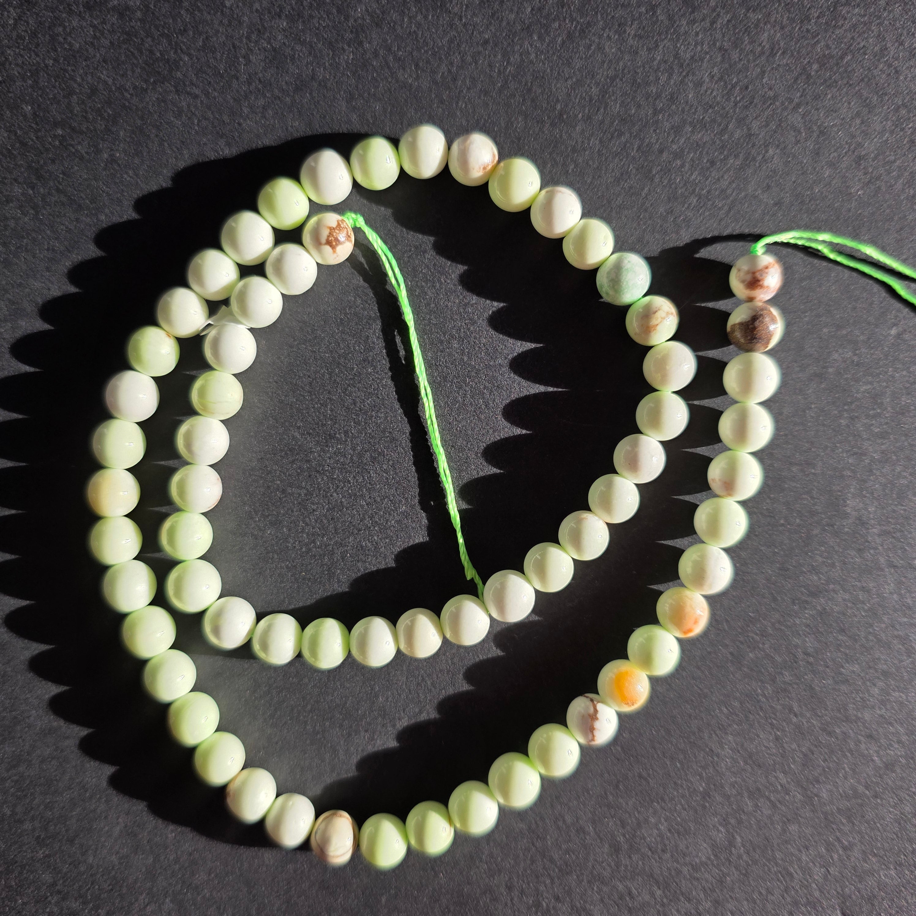Sirag de CRISOPRAZ LAMAIE alcătuit din mărgele sferice naturale, perfect pentru coliere, brățări sau alte bijuterii handmade.