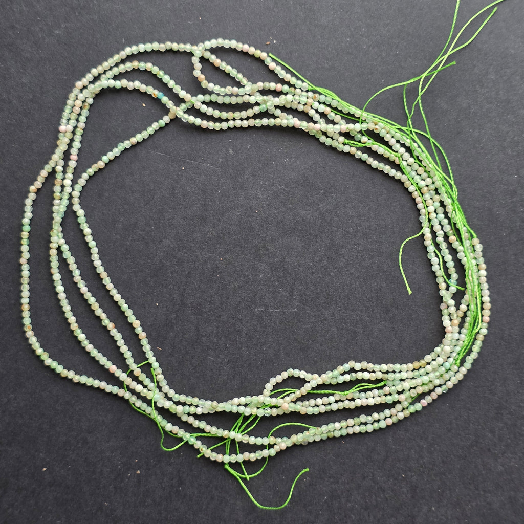 Șirag de CRISOPRAZ, alcătuit din mărgele sferice fatetate naturale, perfect pentru coliere, brățări sau alte bijuterii handmade.