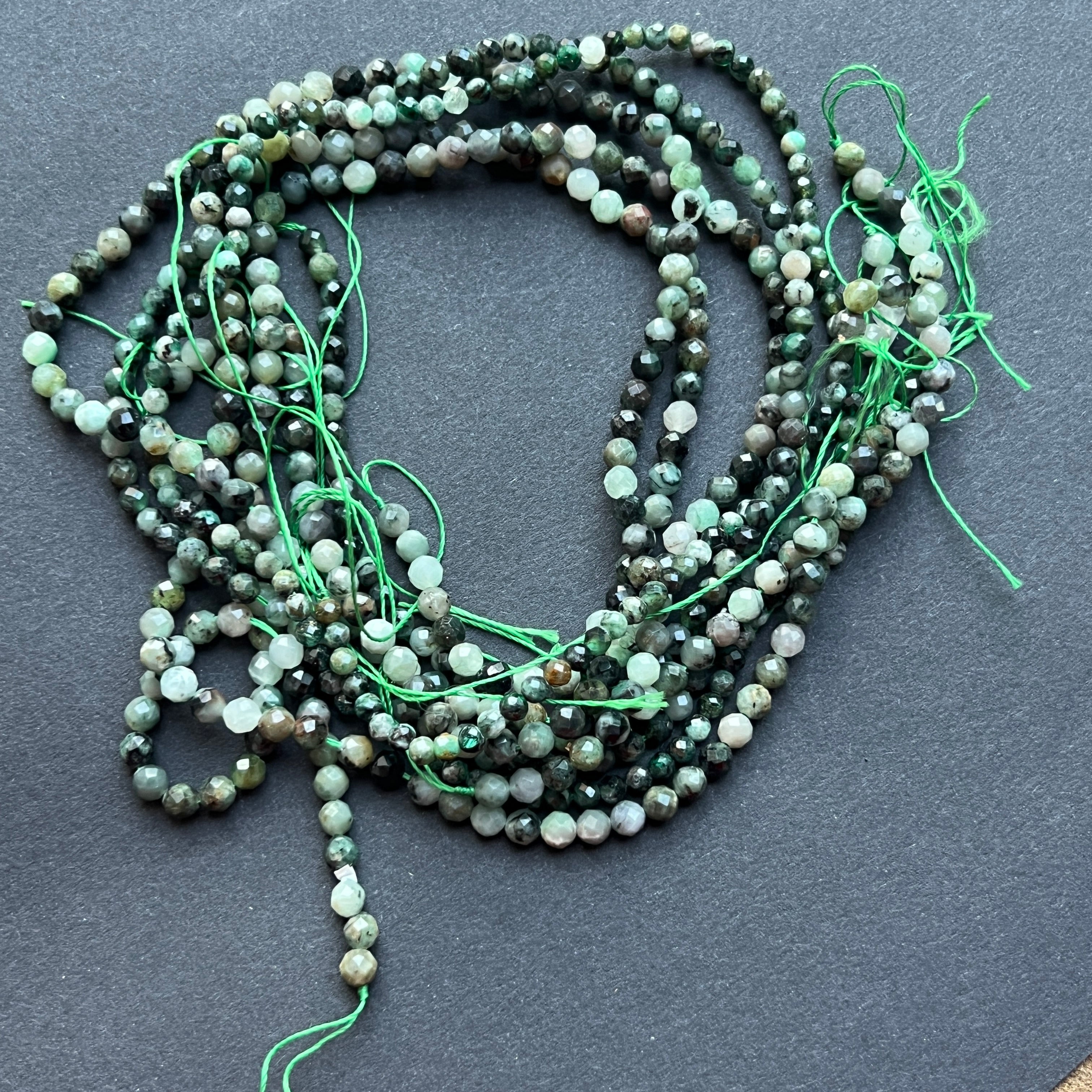 Sirag de smarald, alcătuit din mărgele sferice FATETATE naturale, perfect pentru coliere, brățări sau alte bijuterii handmade.
