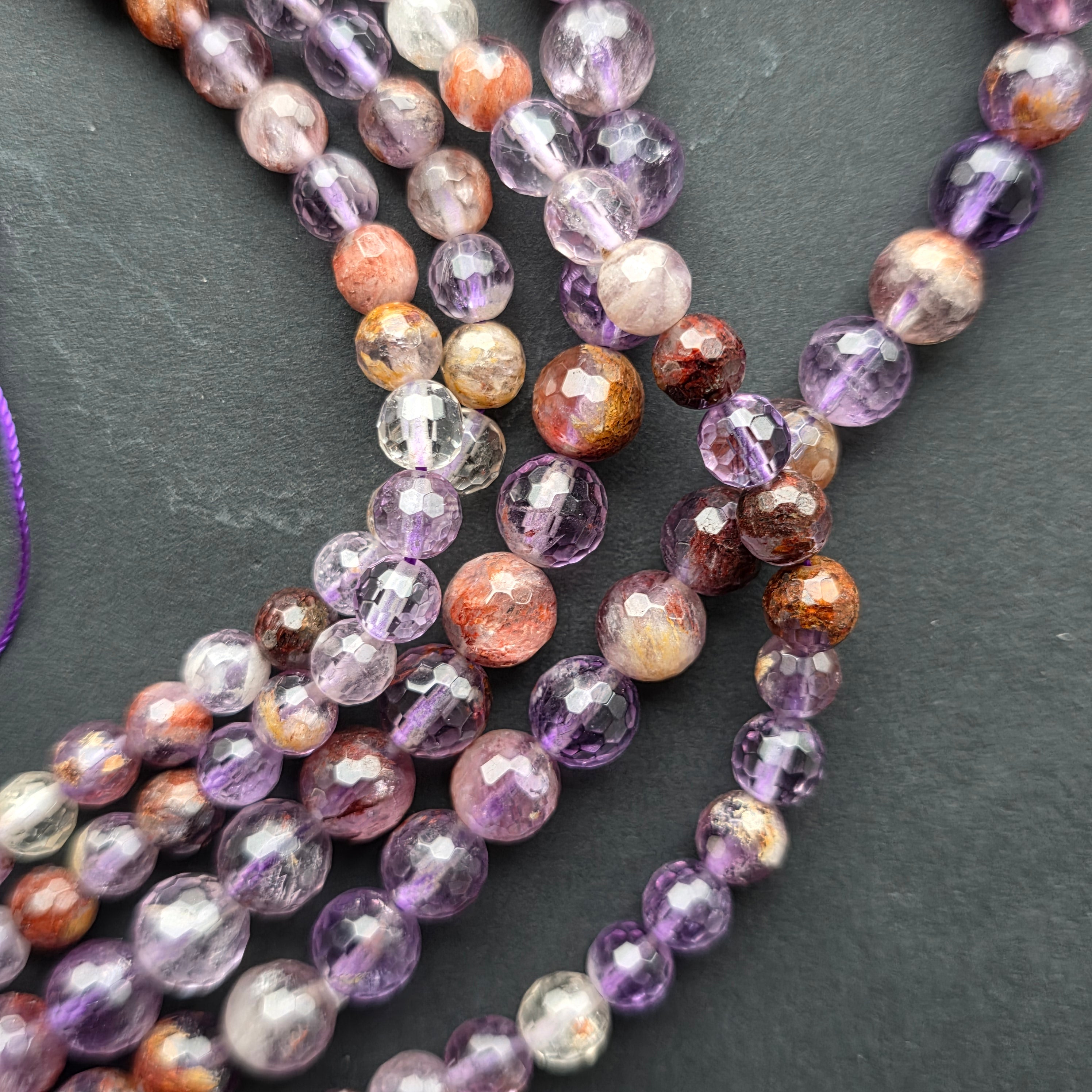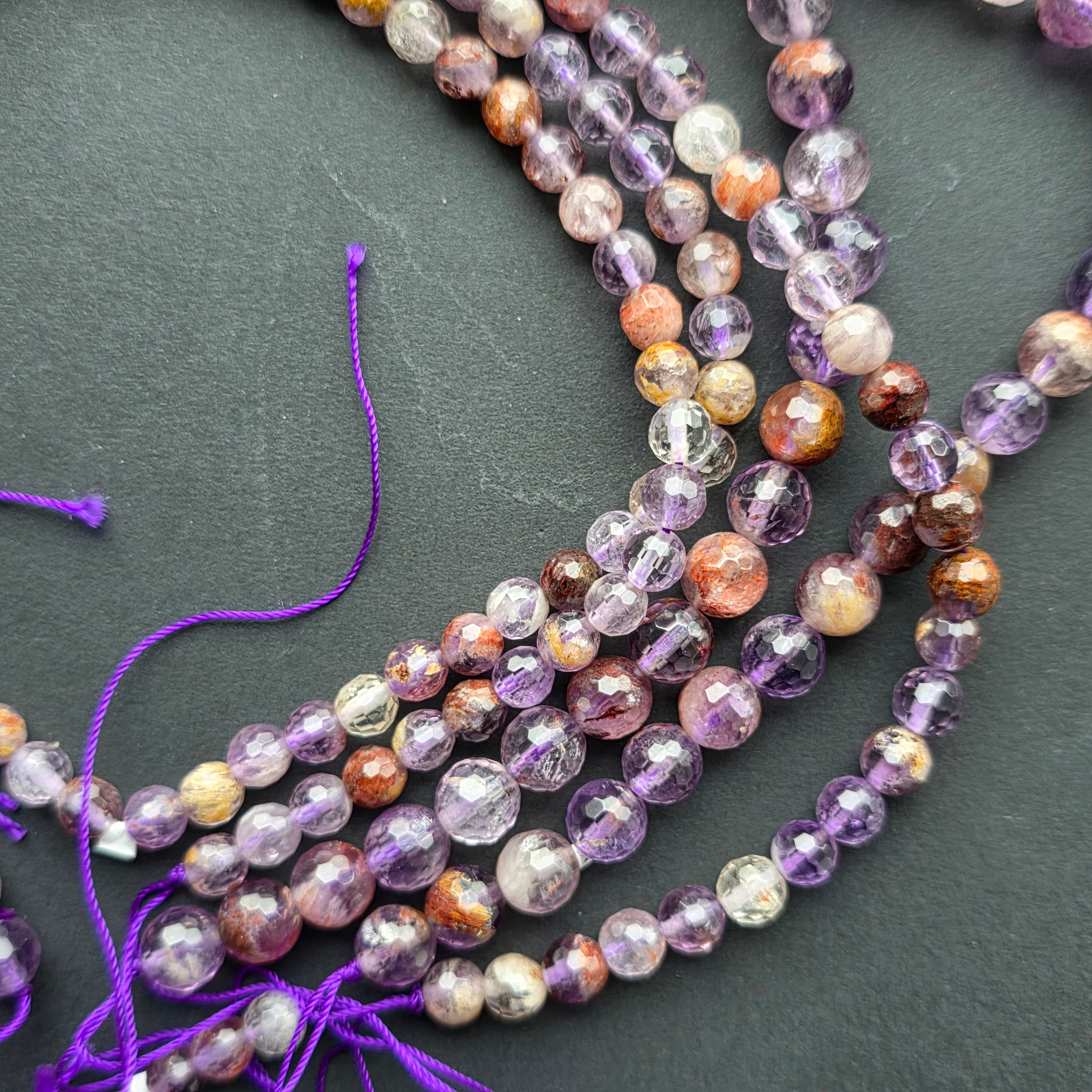 Șirag de SUPER 7, alcătuit din mărgele sferice FAȚETATE naturale, perfect pentru coliere, brățări sau alte bijuterii handmade.