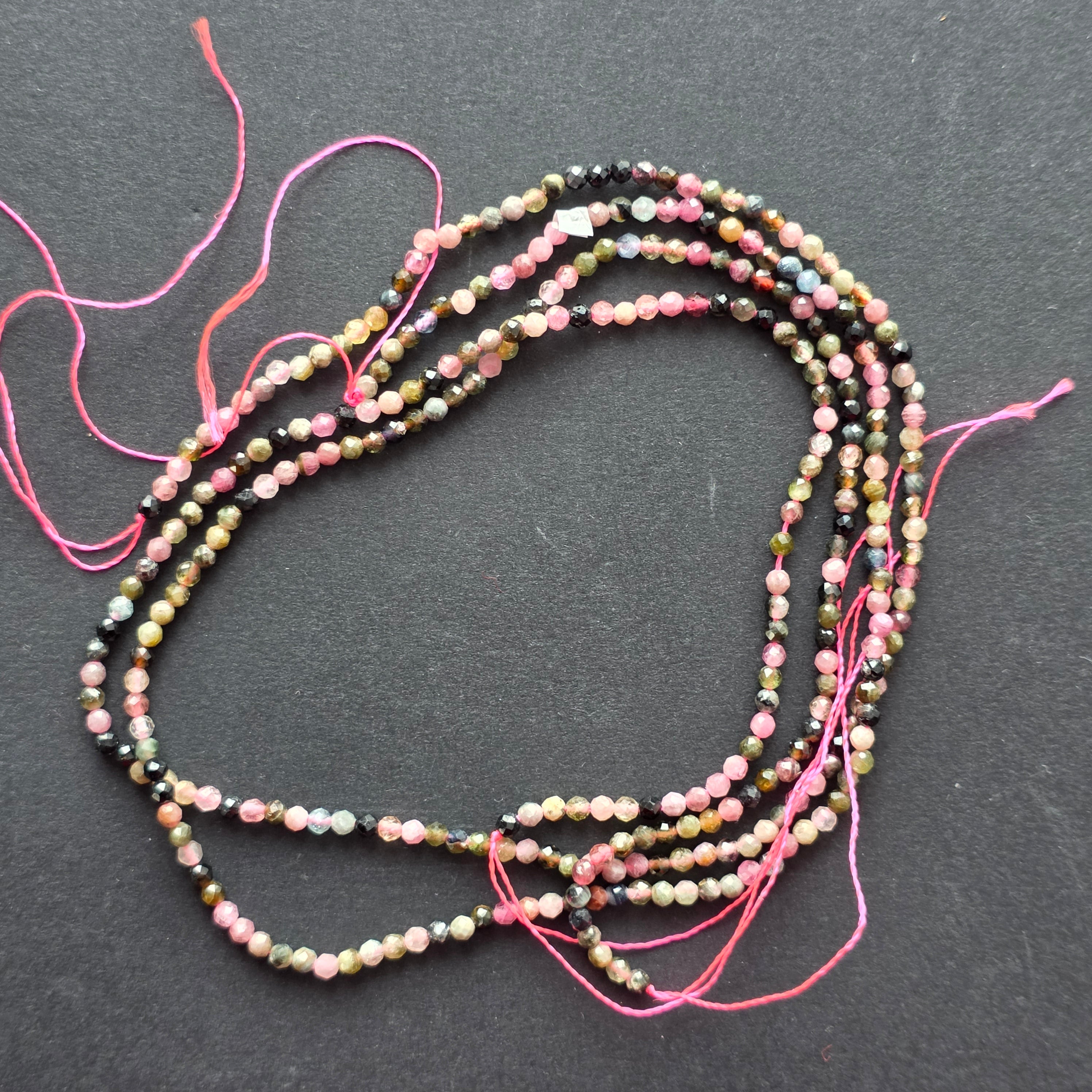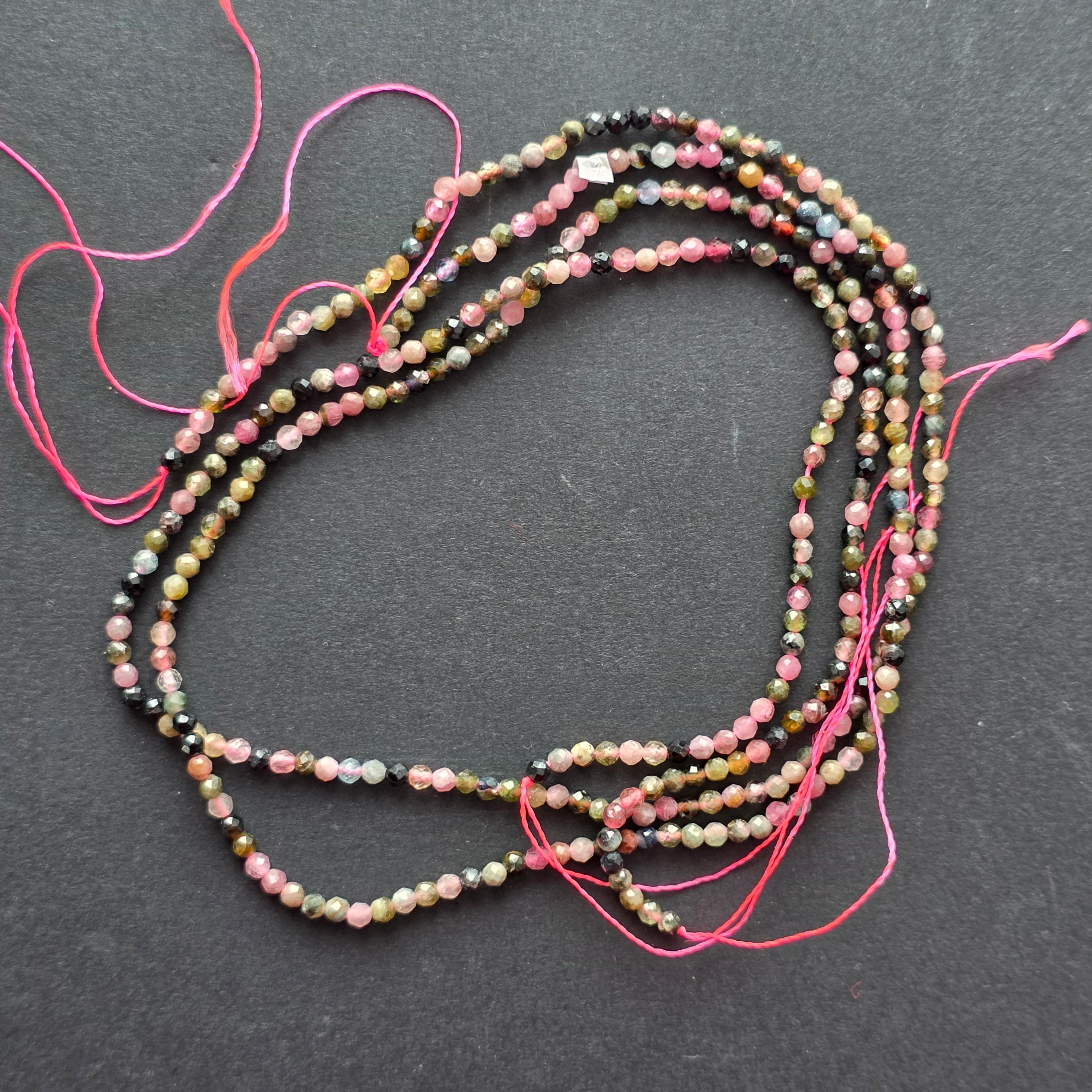 Sirag de turmalina MIX (turmalina roz, turmalina verde), alcătuit din mărgele sferice FATETATE naturale, perfect pentru coliere, brățări sau alte bijuterii handmade.