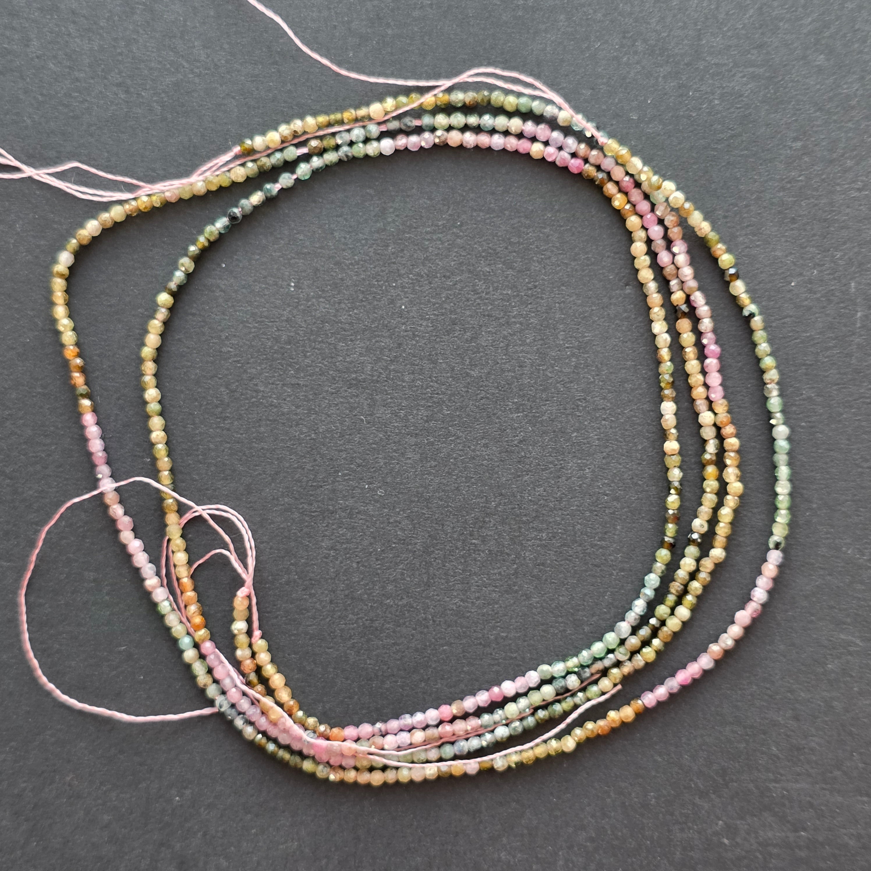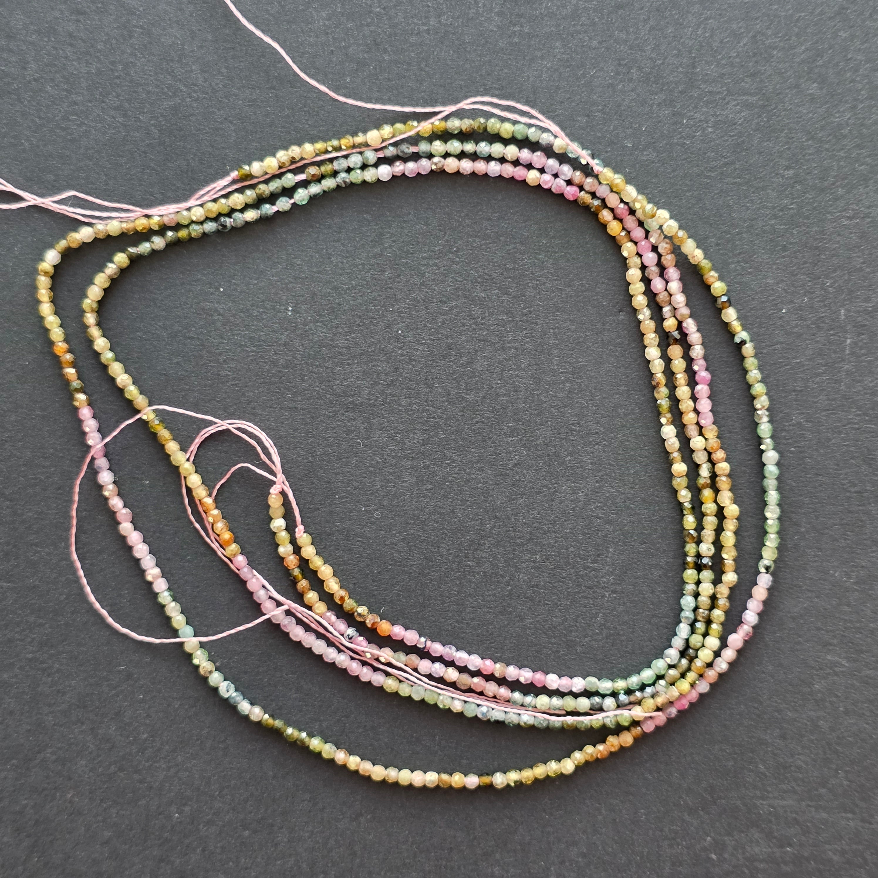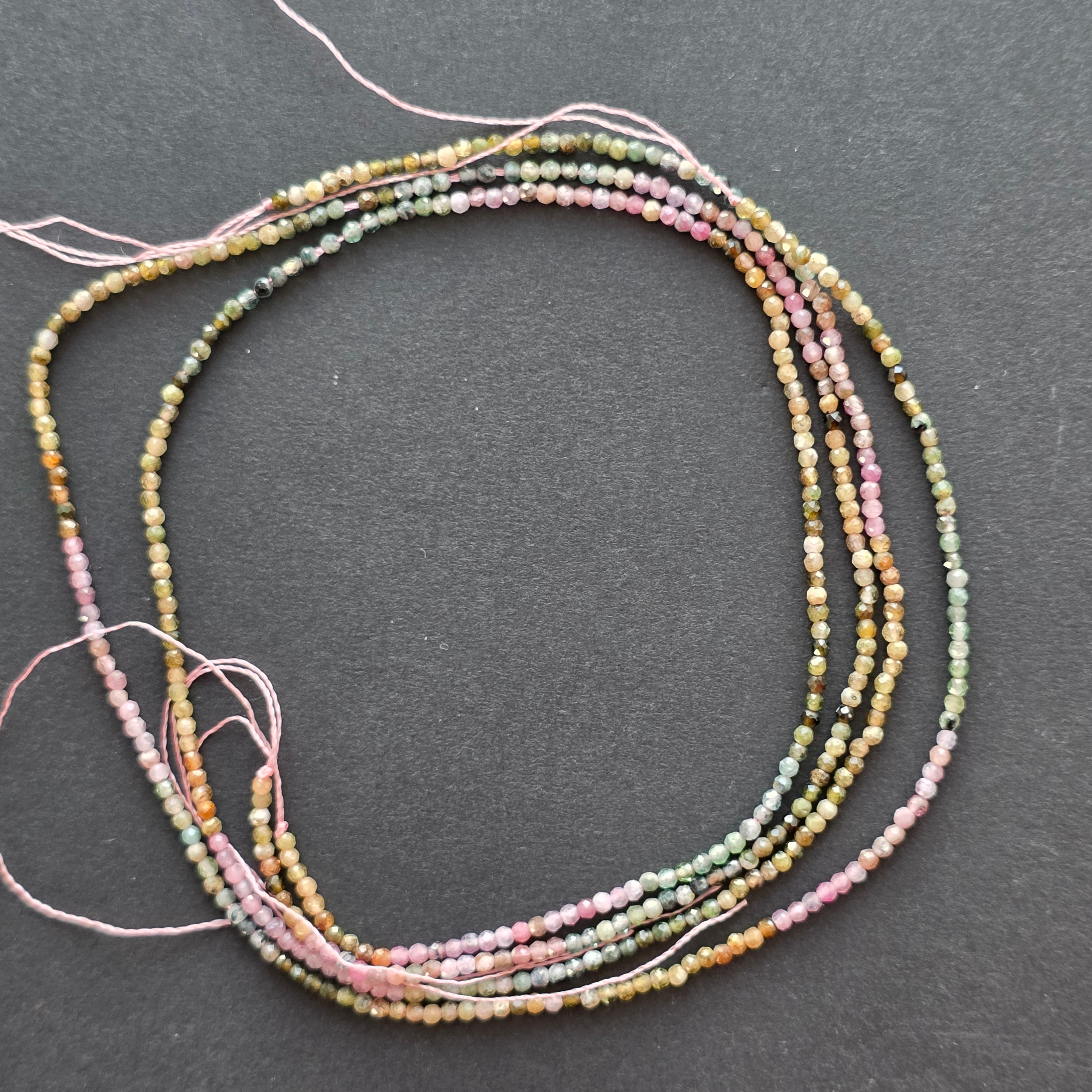 Sirag de turmalina MIX (turmalina roz, turmalina verde), alcătuit din mărgele sferice FATETATE naturale, perfect pentru coliere, brățări sau alte bijuterii handmade.