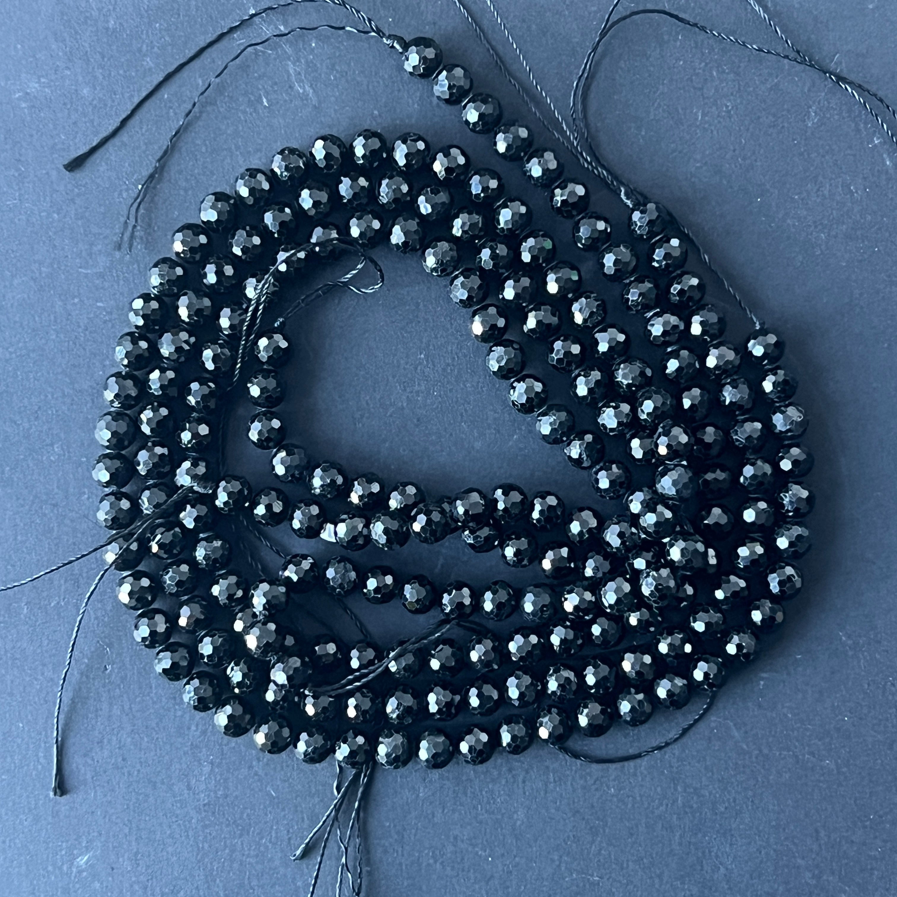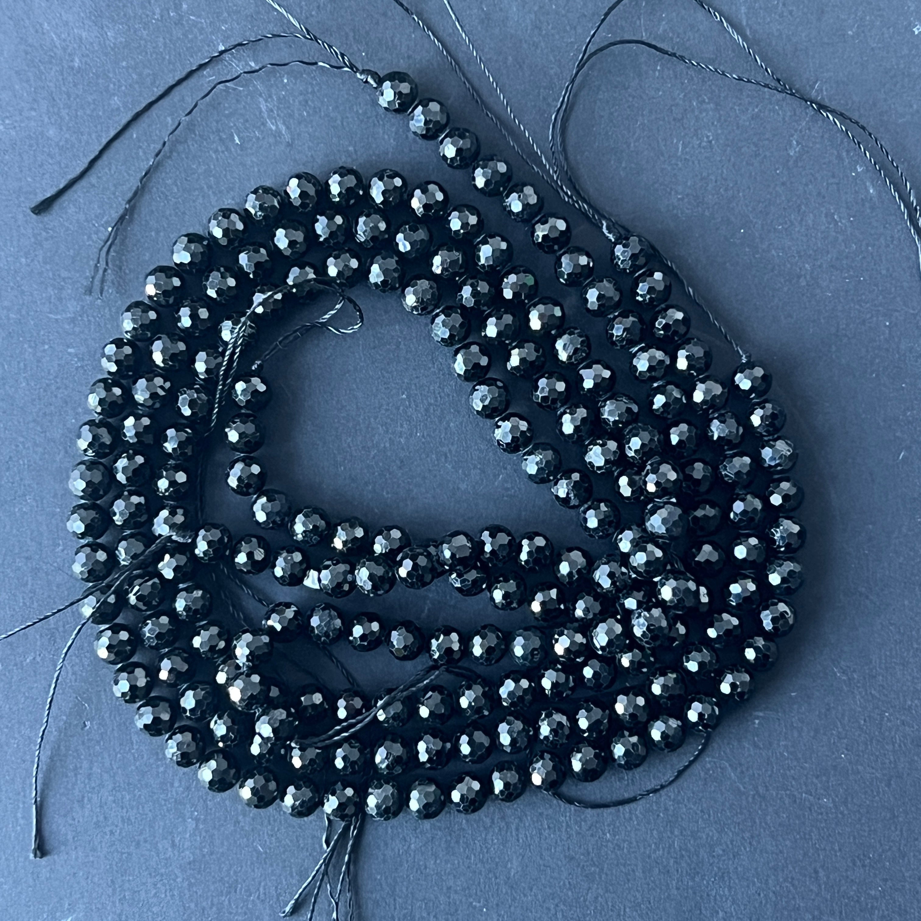 Descriere - Sirag margele pietre semipretioase sfere fatetate turmalina neagra