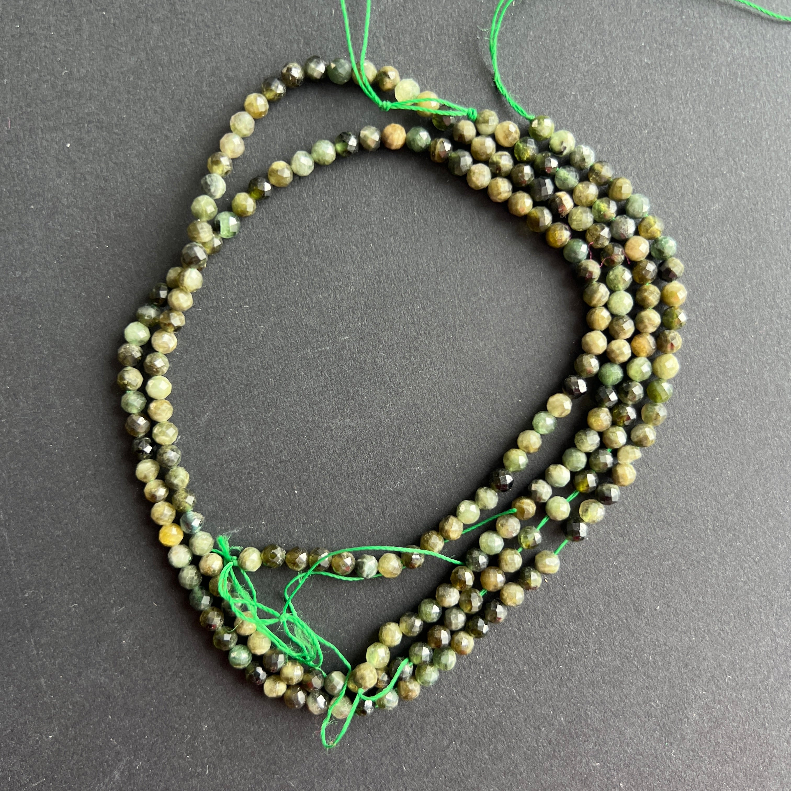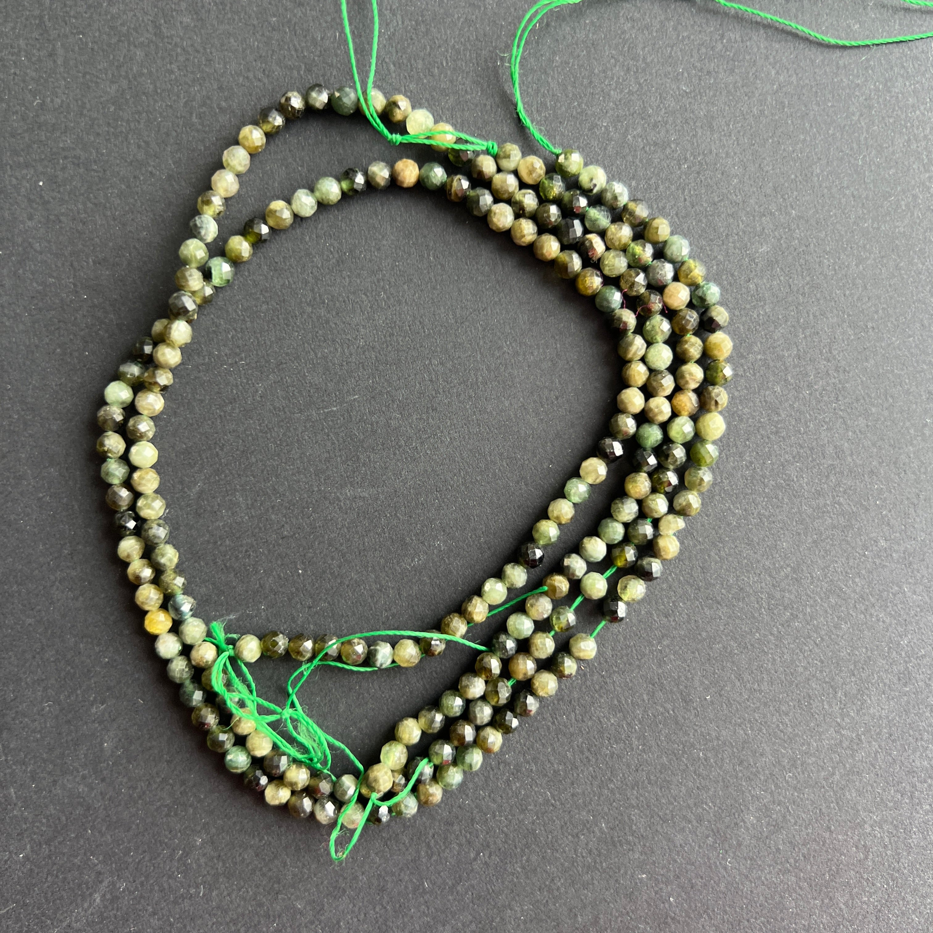 Sirag de turmalina verde, alcătuit din mărgele sferice FATETATE naturale, perfect pentru coliere, brățări sau alte bijuterii handmade.