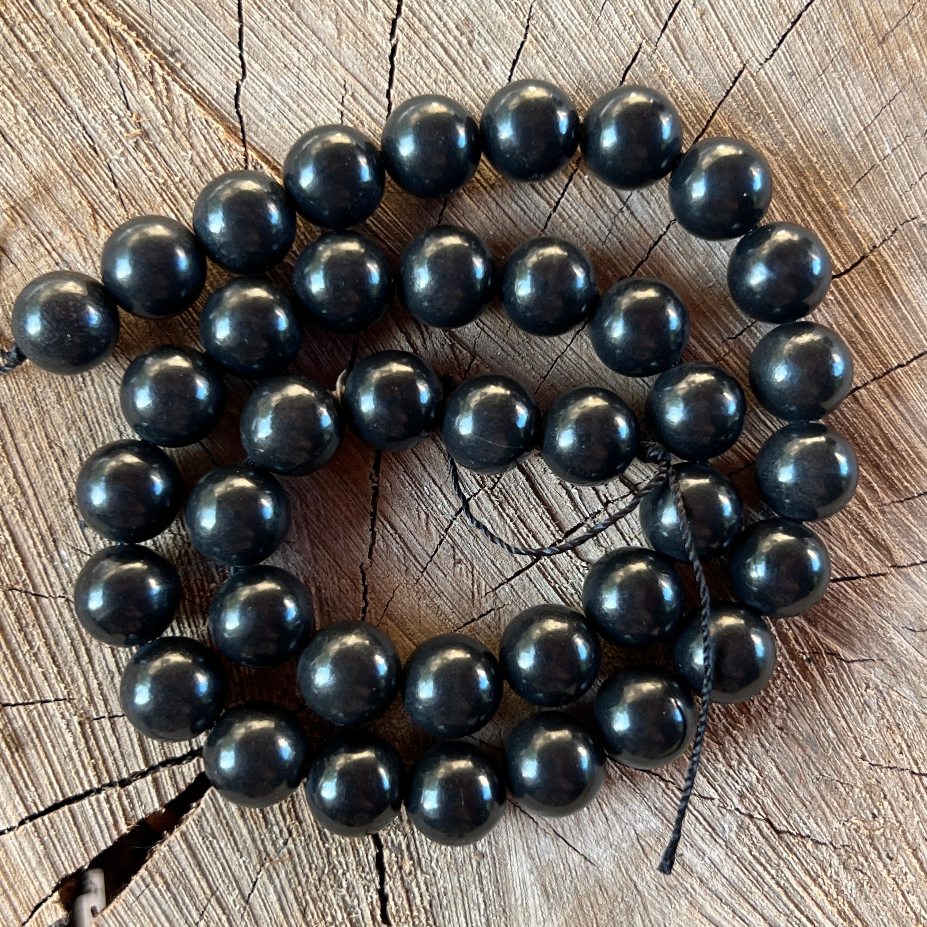 Sirag de SHUNGIT, alcătuit din mărgele sferice naturale, perfect pentru coliere, brățări sau alte bijuterii handmade.