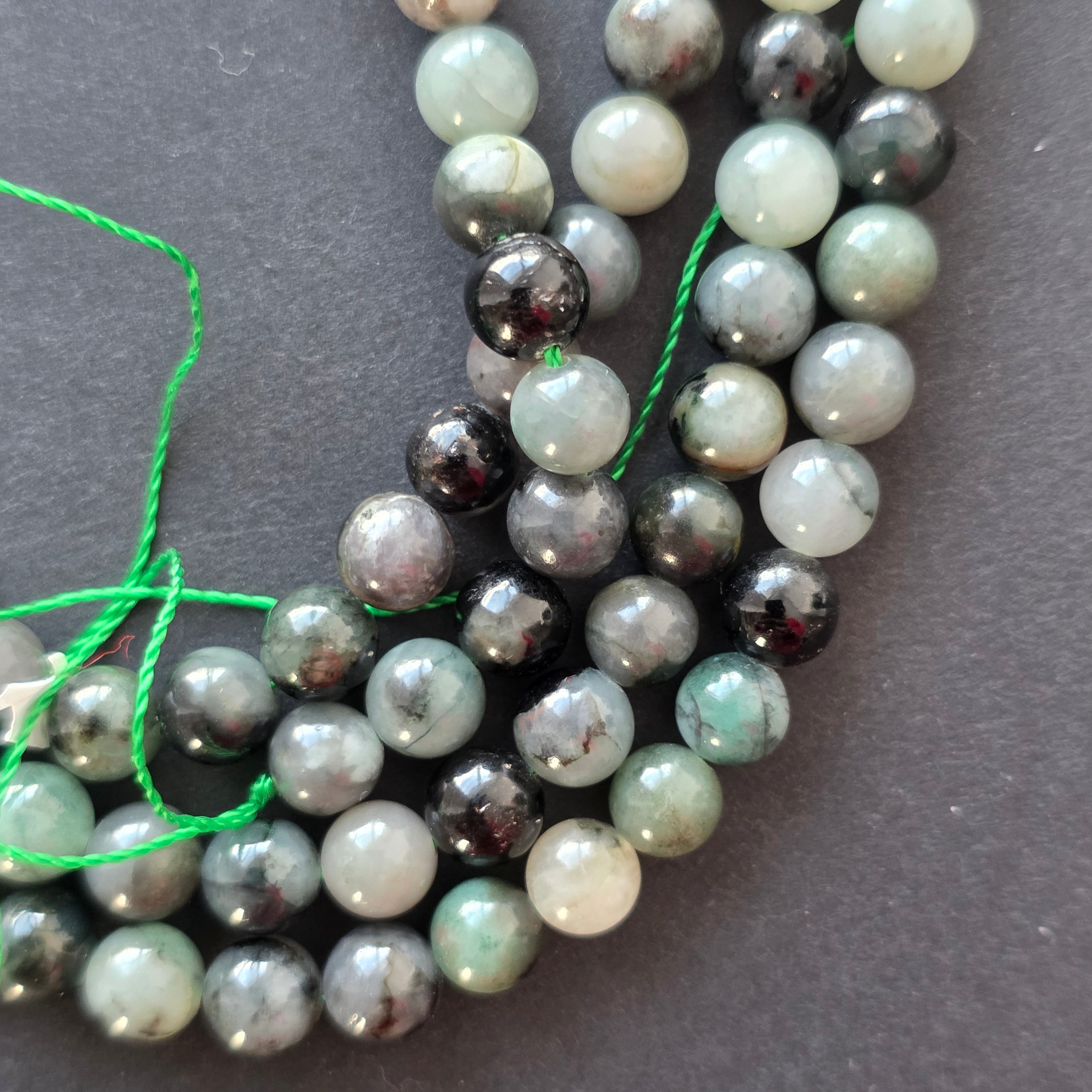 Sirag de smarald, alcătuit din mărgele sferice naturale, perfect pentru coliere, brățări sau alte bijuterii handmade.