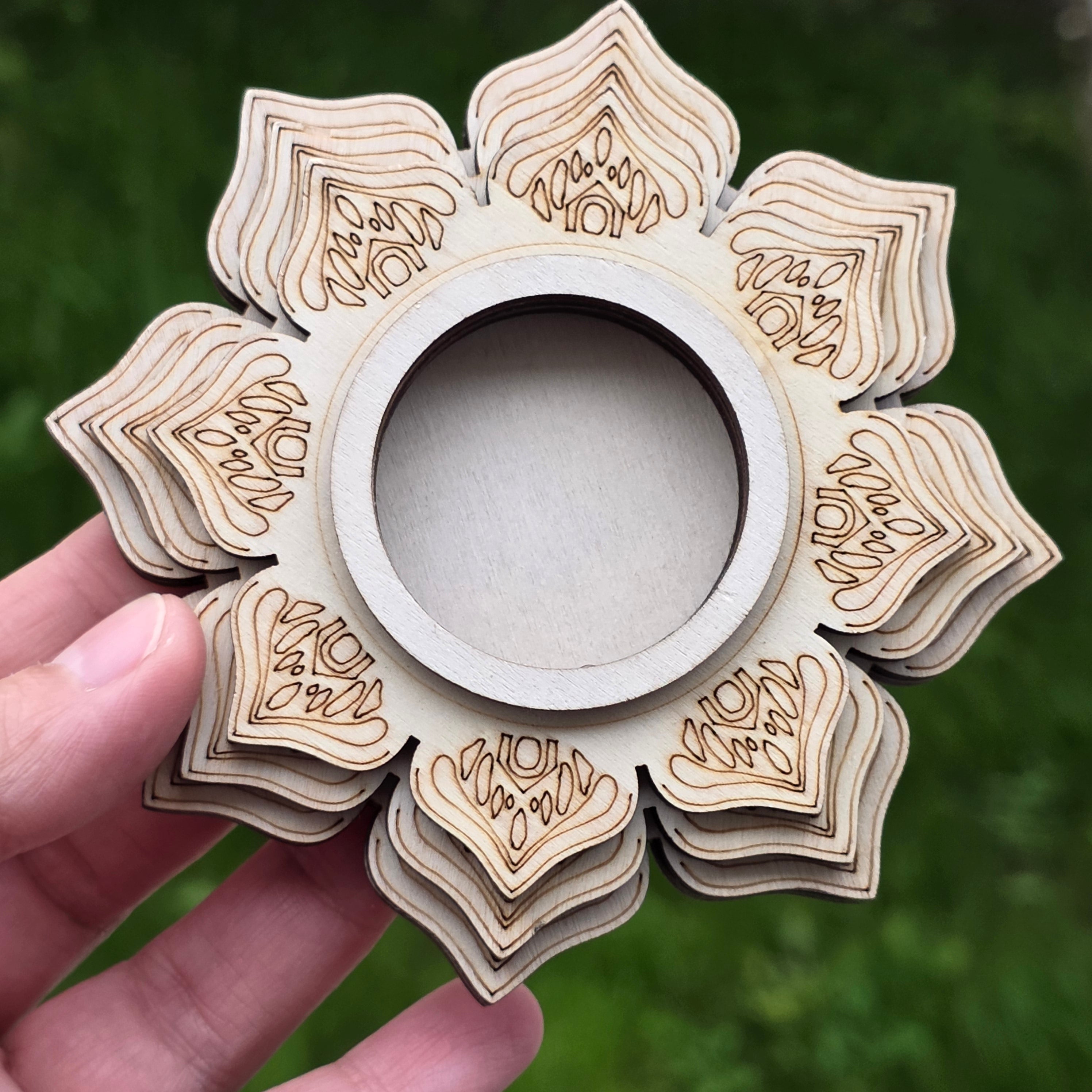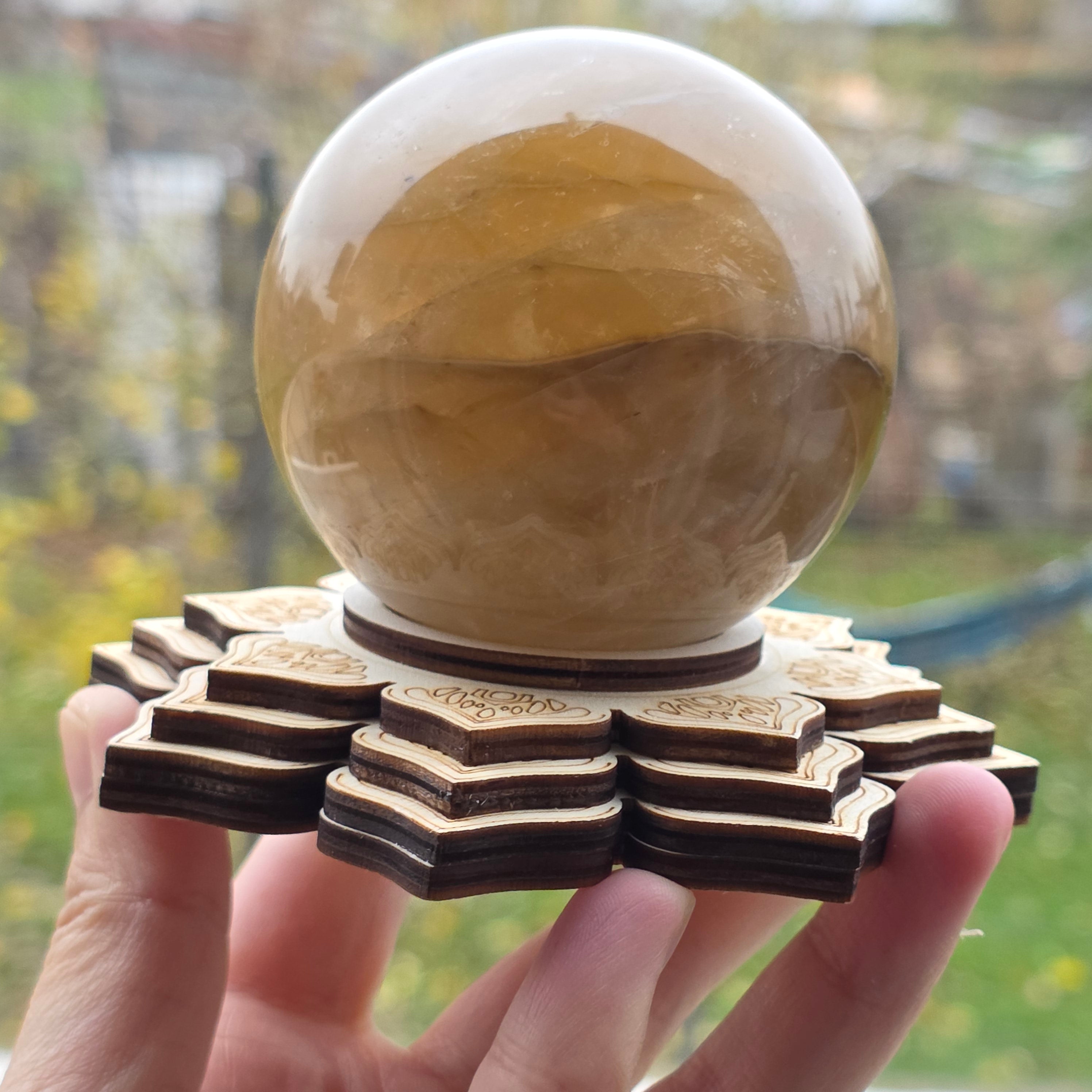 Descriere - Suport din lemn Mandala pentru cristale și sfere