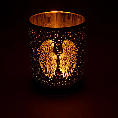 Aripile de înger simbolizează protecția divină, puritatea și încrederea în lumina interioară. Acest suport de lumânare din sticlă, decorat cu un model delicat și străluciri subtile, transformă flacăra unei lumânări într-un memento al prezenței îngerilor și al liniștii sufletului.