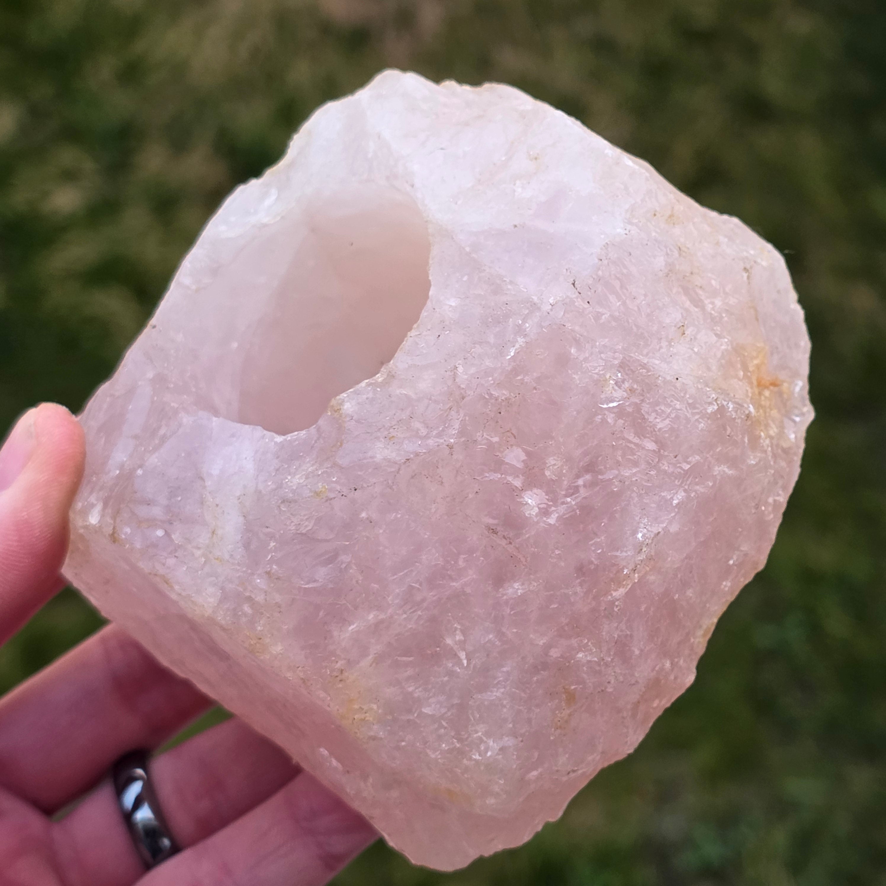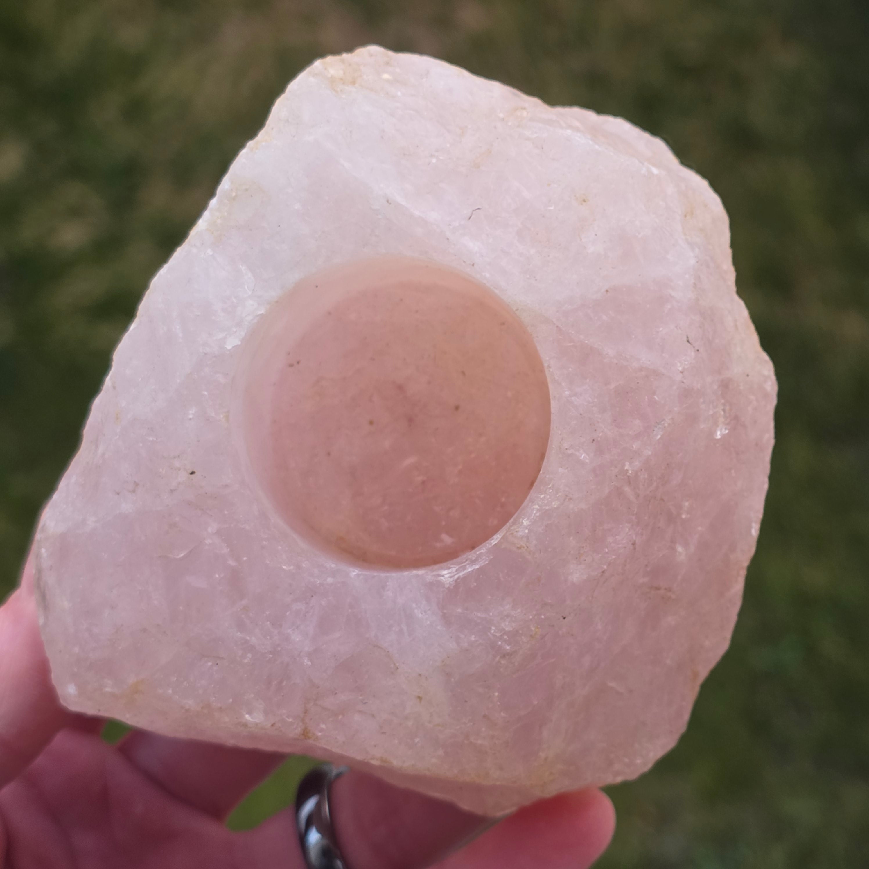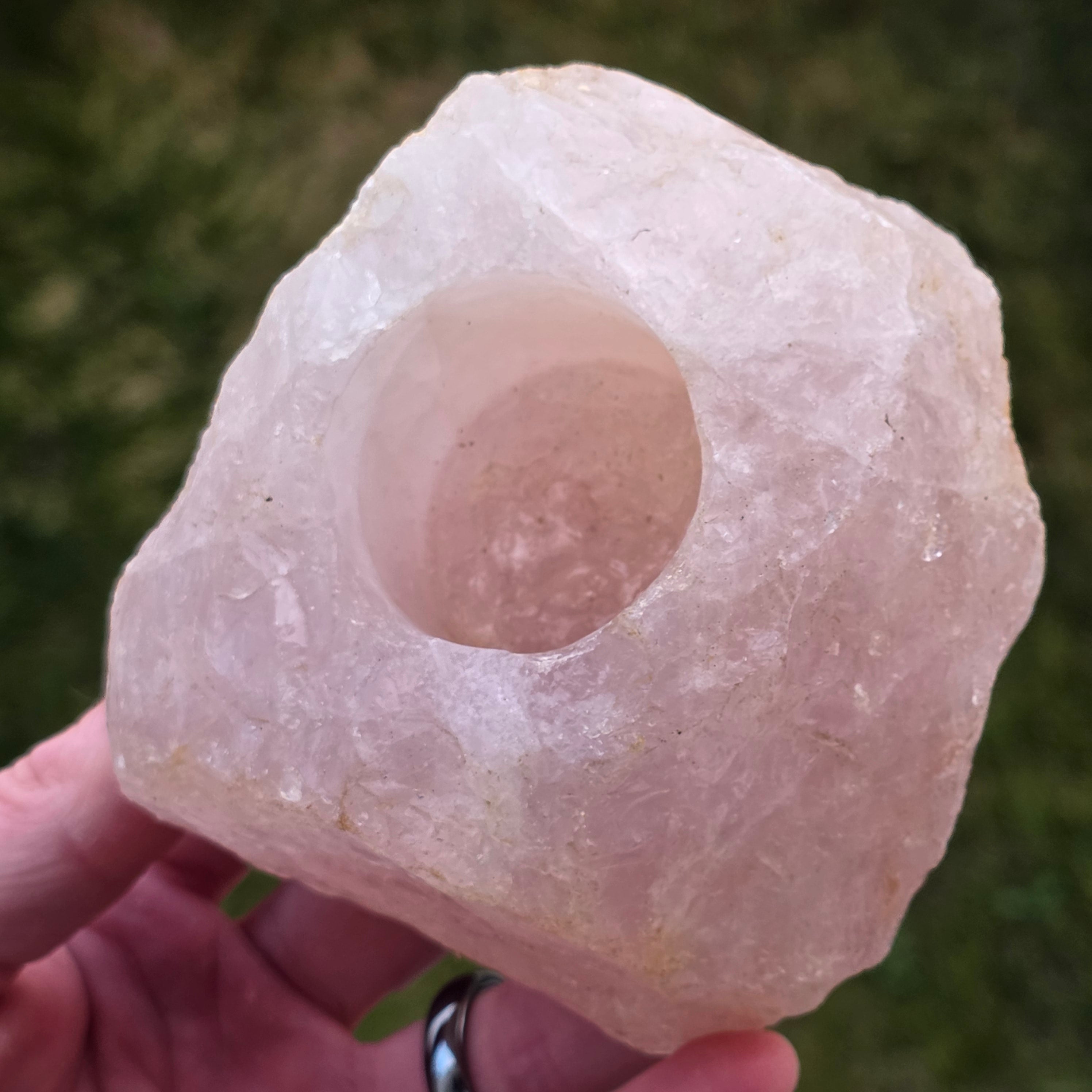 Suport lumanare din cuart roz | Model 2