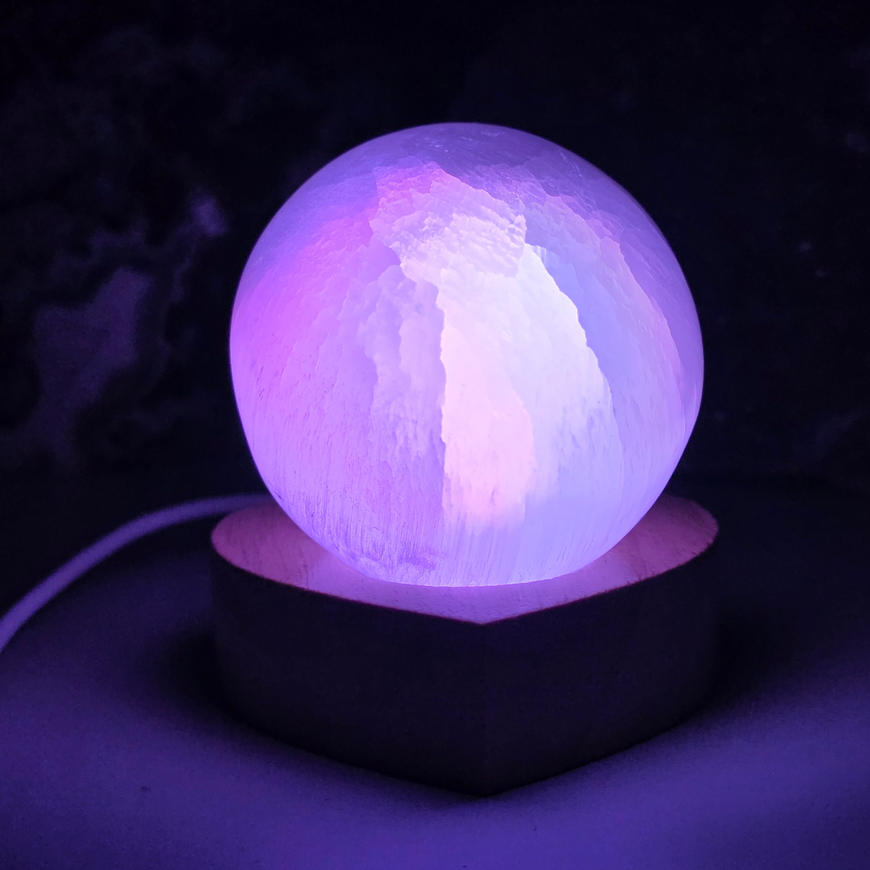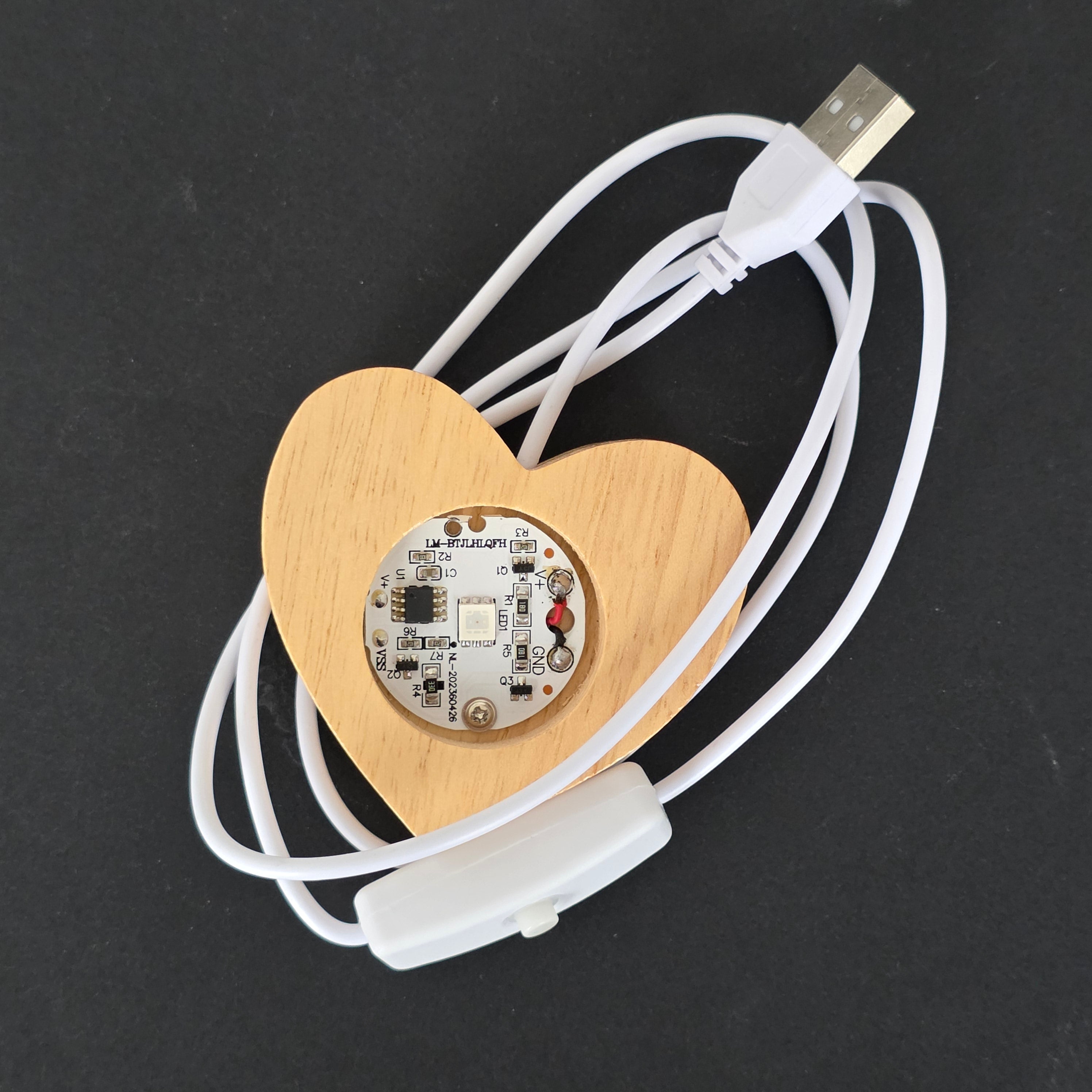 Descriere - Suport luminat LED din lemn pentru cristale | Heart