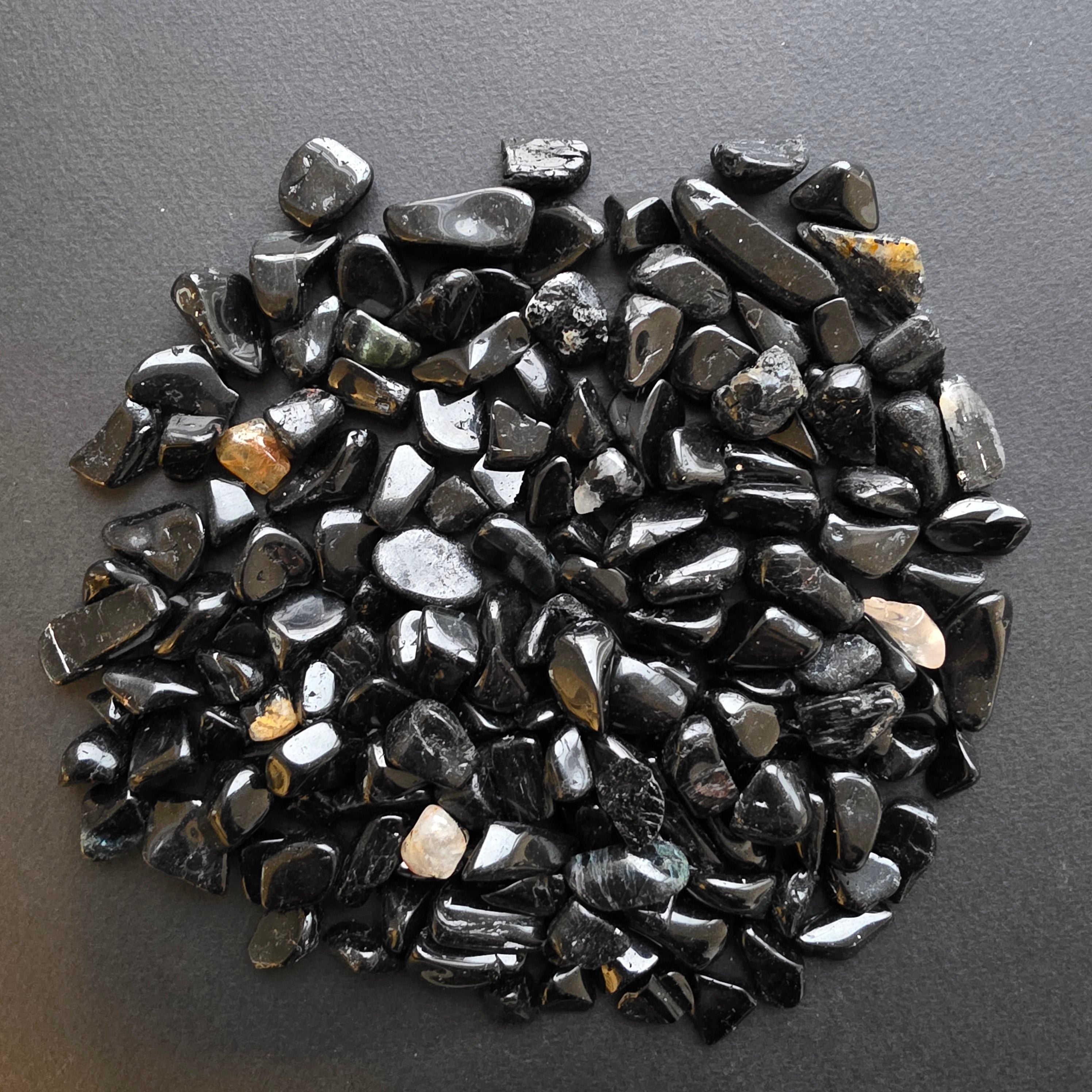 Tip: chipsuri turmalina neagra naturala (pietre mici șlefuite, neregulate)