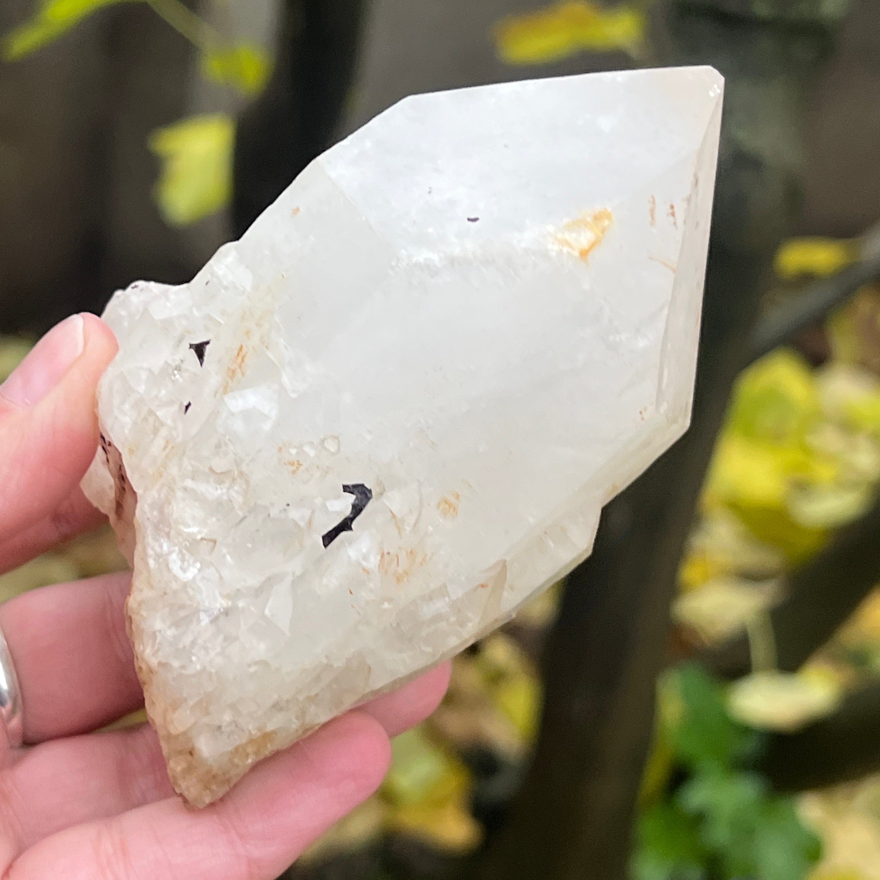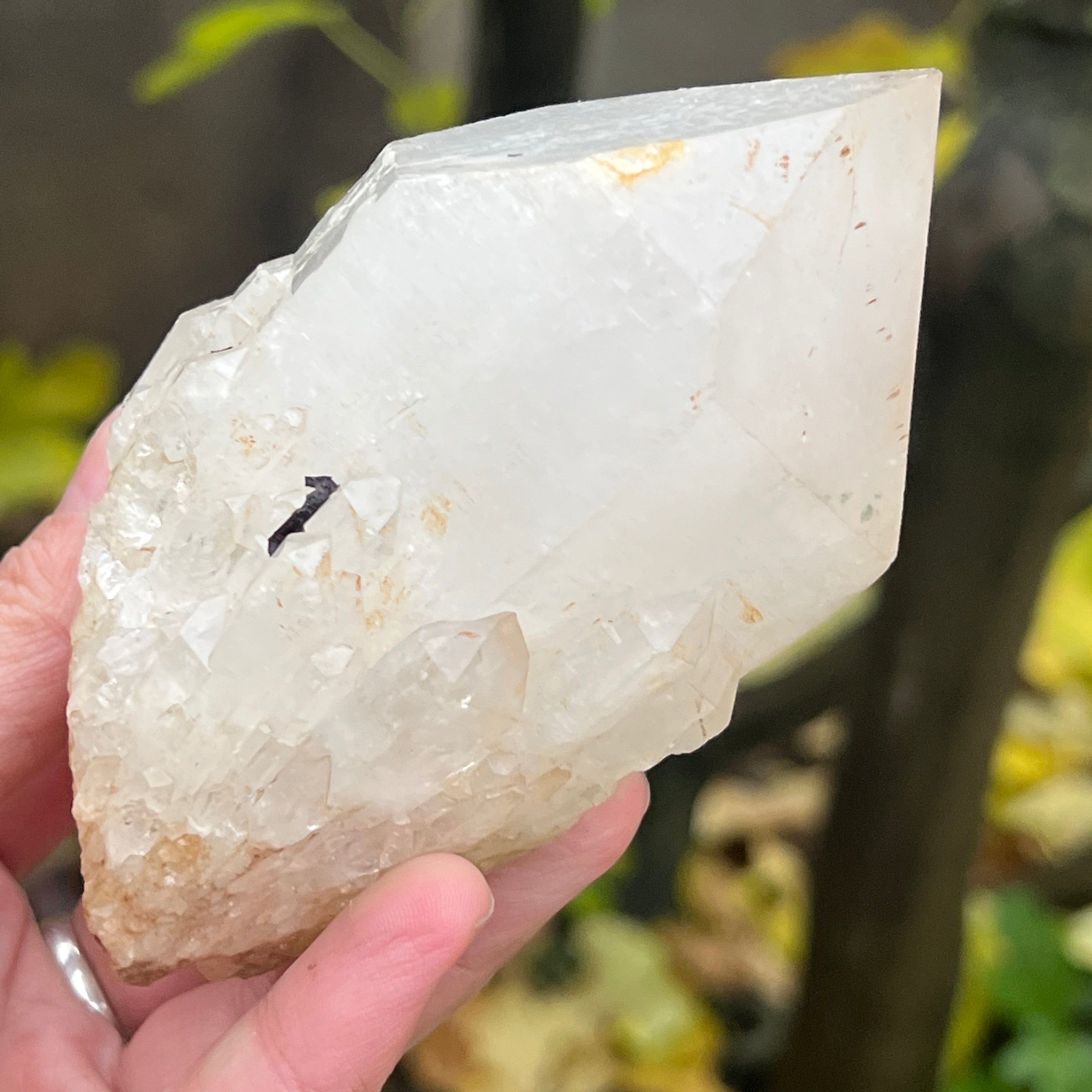 Un vârf care pare sculptat de lumină însăși. Cuartul celest, cunoscut și ca cuart lumânare, îmbină forța unui cristal de cuarț cu blândețea și strălucirea unei flăcări interioare. Forma sa unică, asemănătoare unui ananas cristalin, emană o energie de purificare profundă și de conectare cu planurile superioare ale conștiinței.