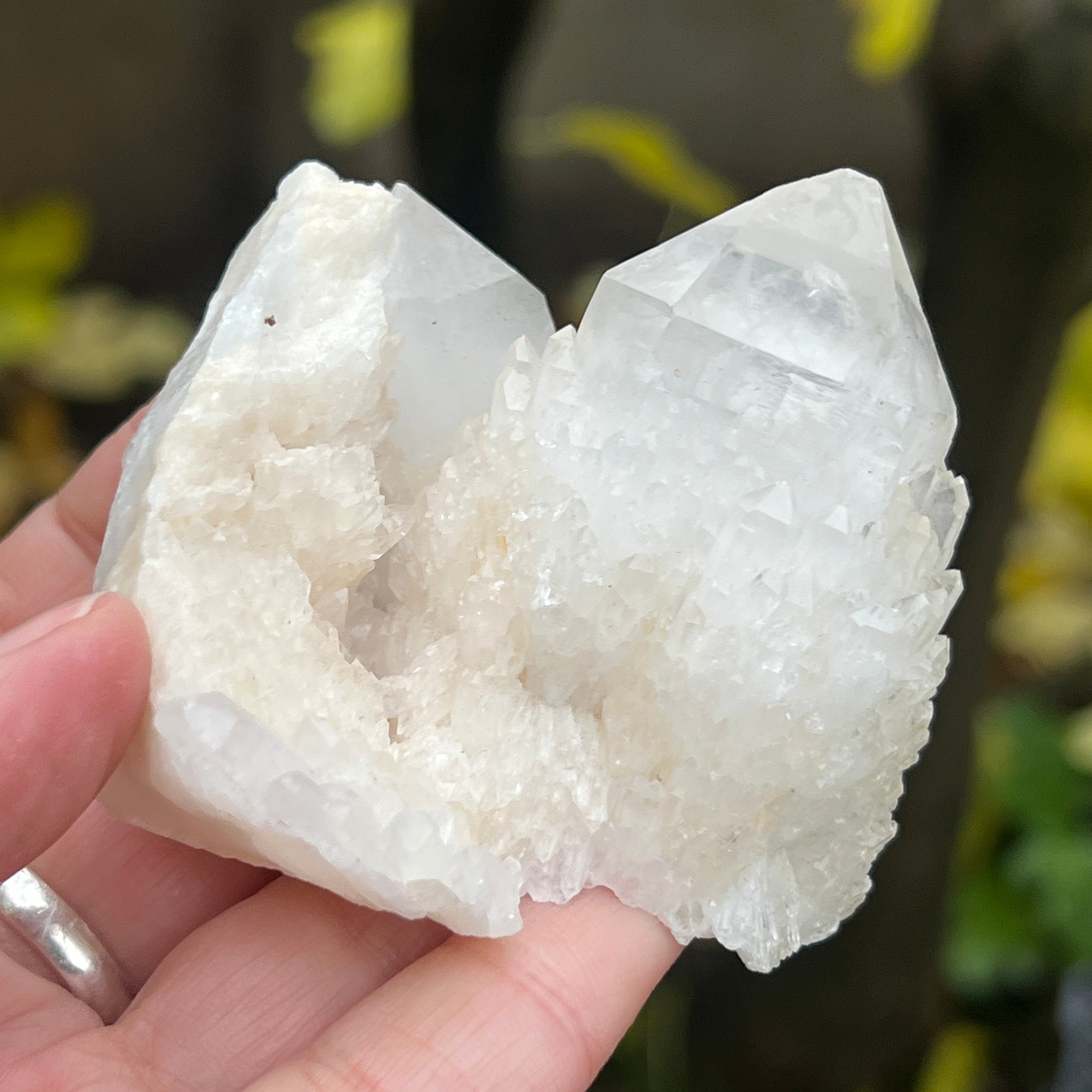 Un vârf care pare sculptat de lumină însăși. Cuartul celest, cunoscut și ca cuart lumânare, îmbină forța unui cristal de cuarț cu blândețea și strălucirea unei flăcări interioare. Forma sa unică, asemănătoare unui ananas cristalin, emană o energie de purificare profundă și de conectare cu planurile superioare ale conștiinței.