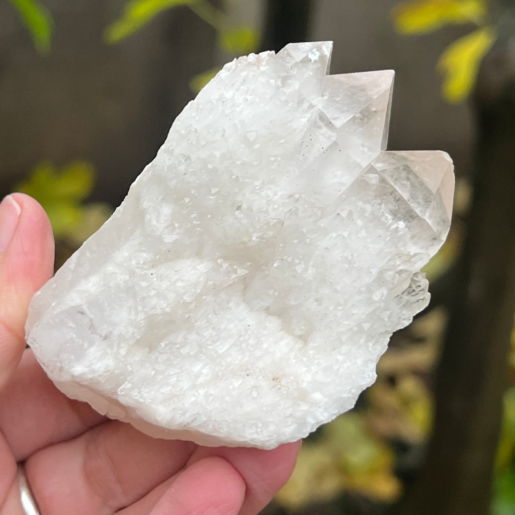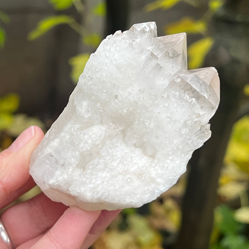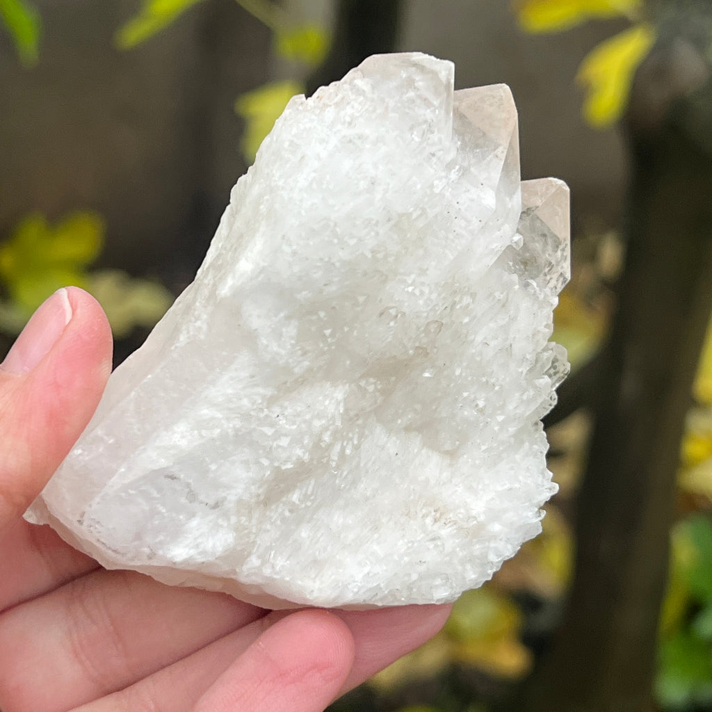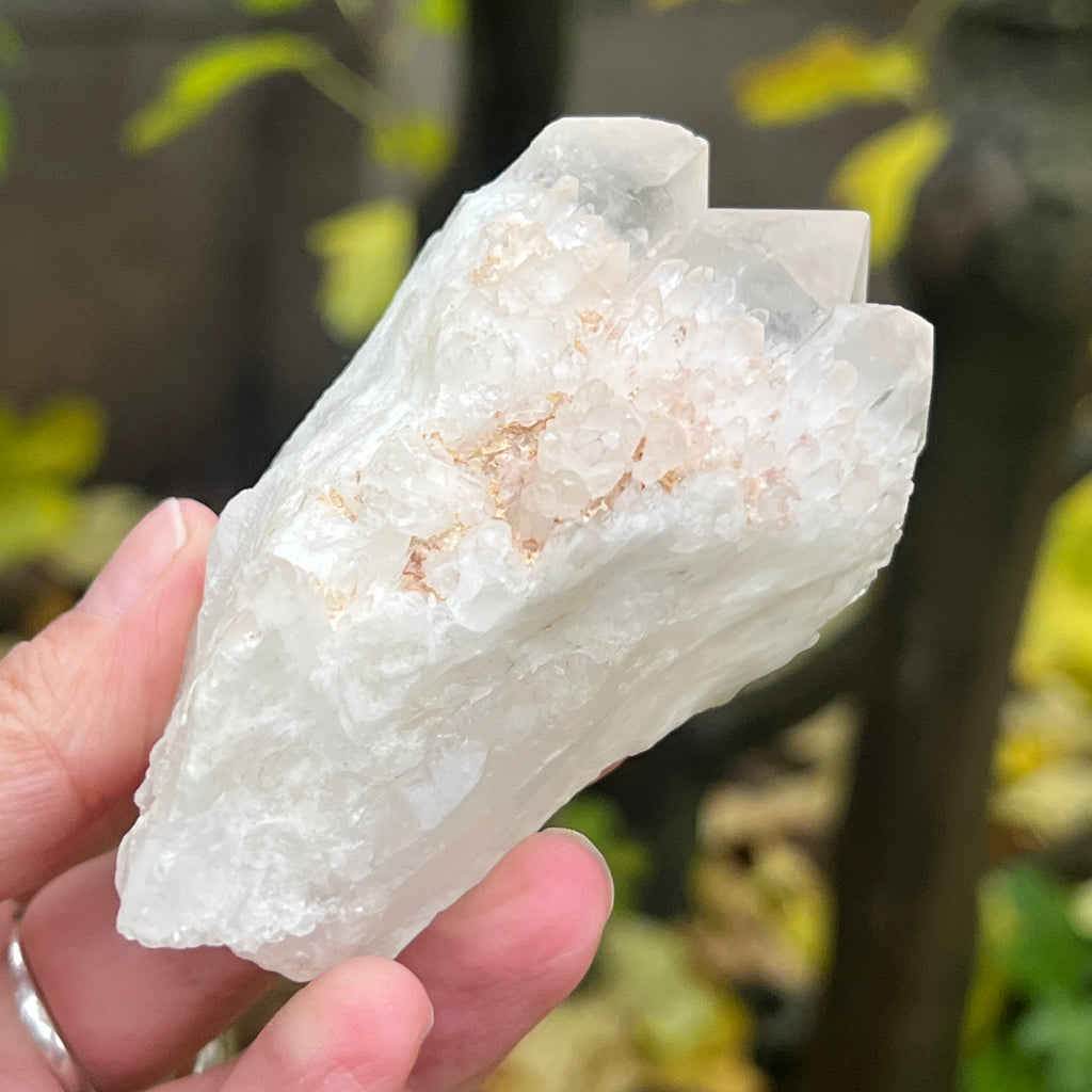 Un vârf care pare sculptat de lumină însăși. Cuartul celest, cunoscut și ca cuart lumânare, îmbină forța unui cristal de cuarț cu blândețea și strălucirea unei flăcări interioare. Forma sa unică, asemănătoare unui ananas cristalin, emană o energie de purificare profundă și de conectare cu planurile superioare ale conștiinței.