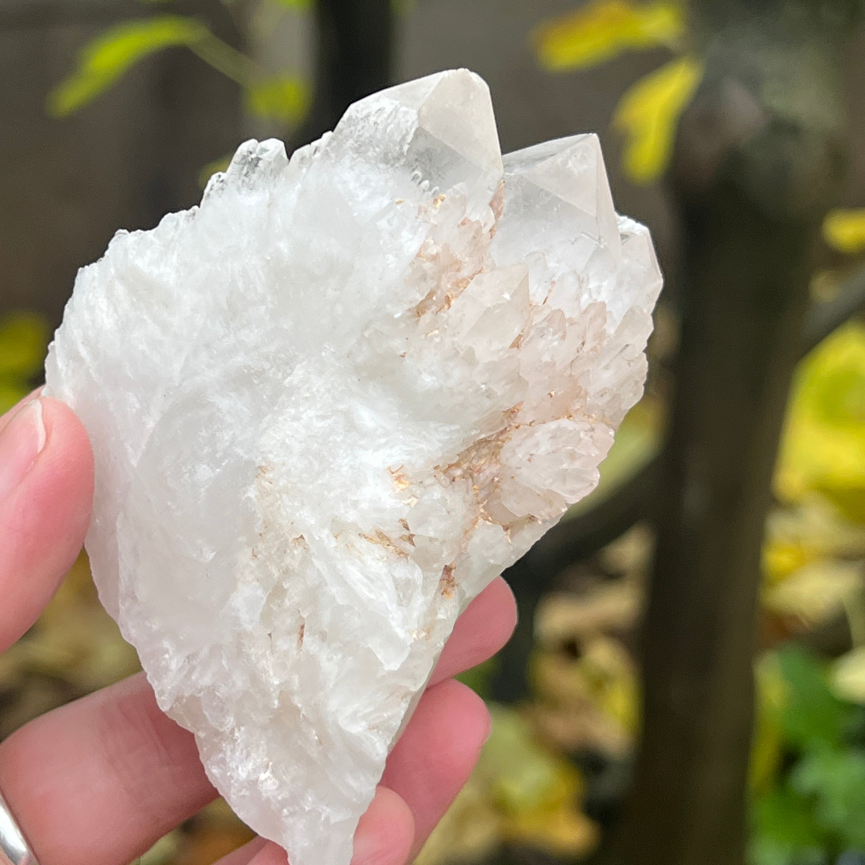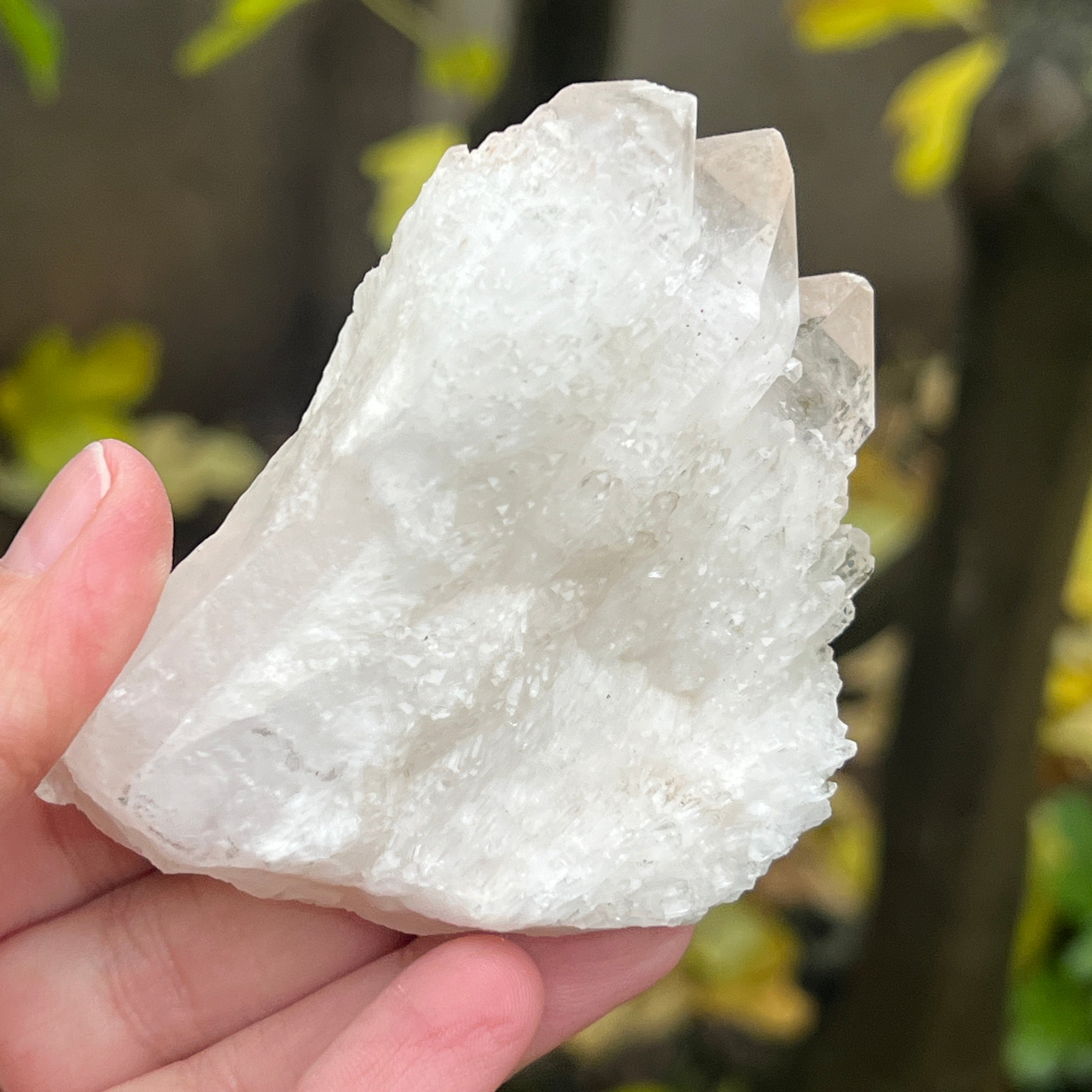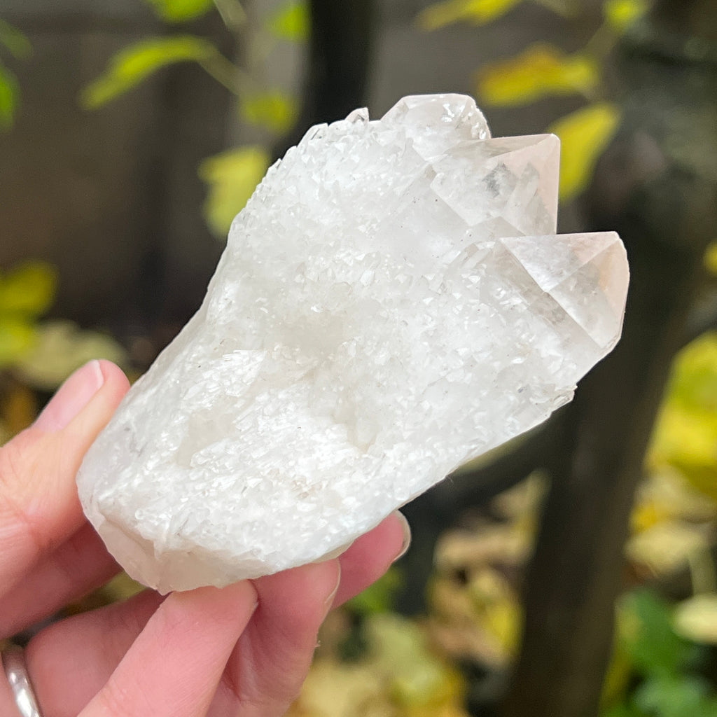 Un vârf care pare sculptat de lumină însăși. Cuartul celest, cunoscut și ca cuart lumânare, îmbină forța unui cristal de cuarț cu blândețea și strălucirea unei flăcări interioare. Forma sa unică, asemănătoare unui ananas cristalin, emană o energie de purificare profundă și de conectare cu planurile superioare ale conștiinței.